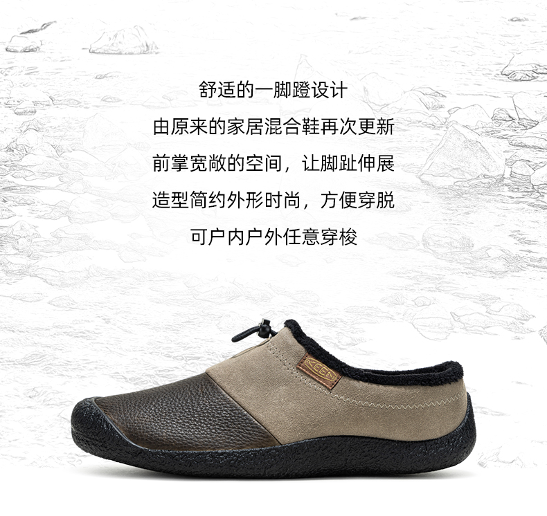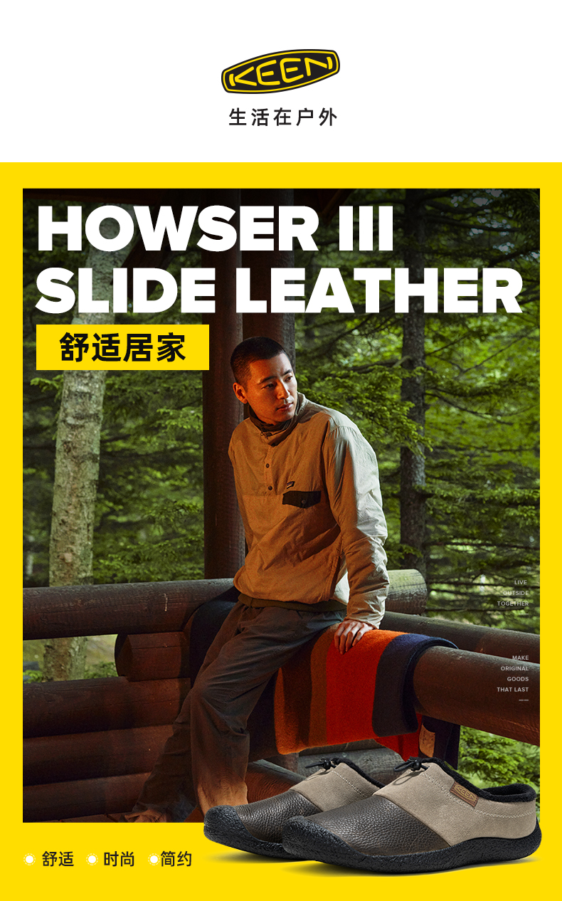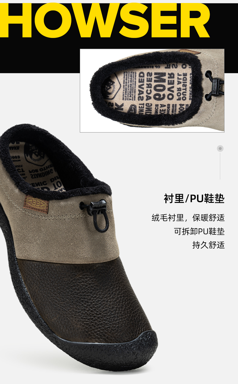 KEEN official HOWSER III SLIDE LEATHER men's outdoor Plaid slip-on casual shoes