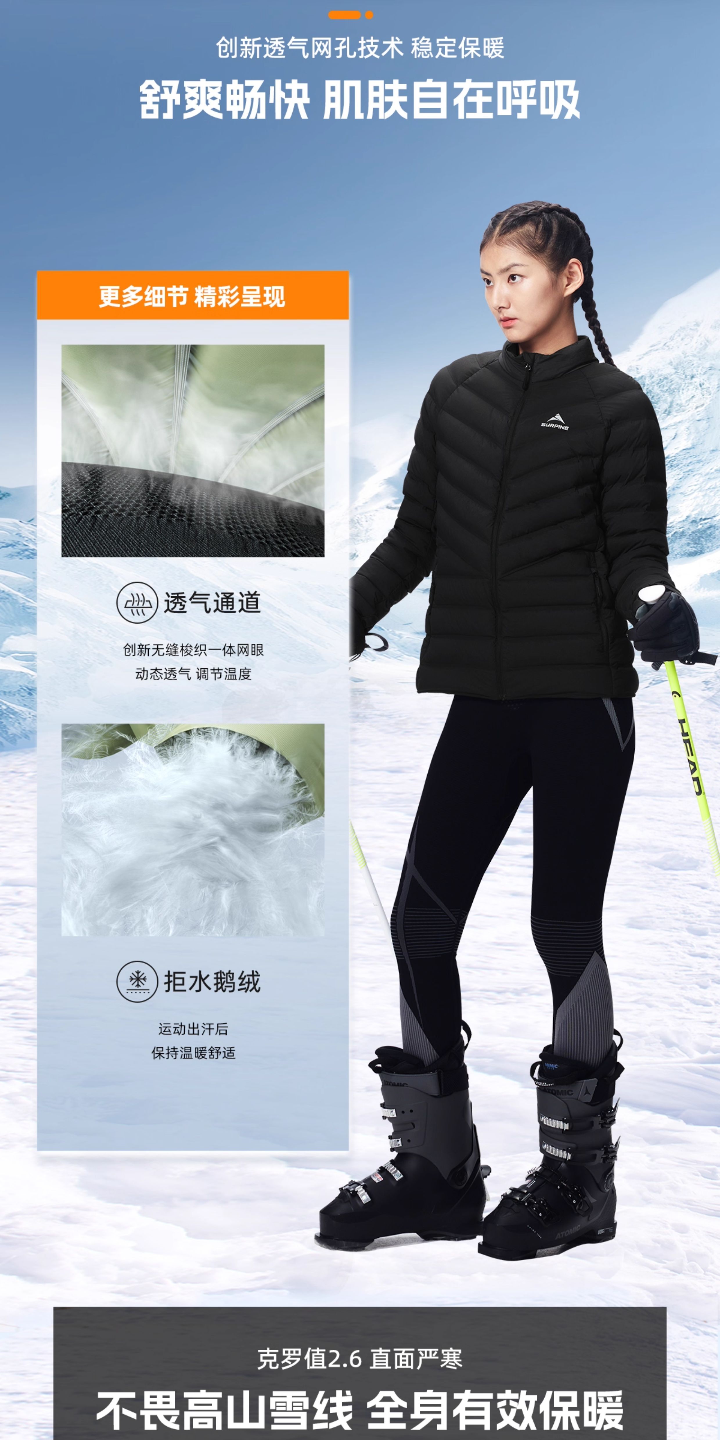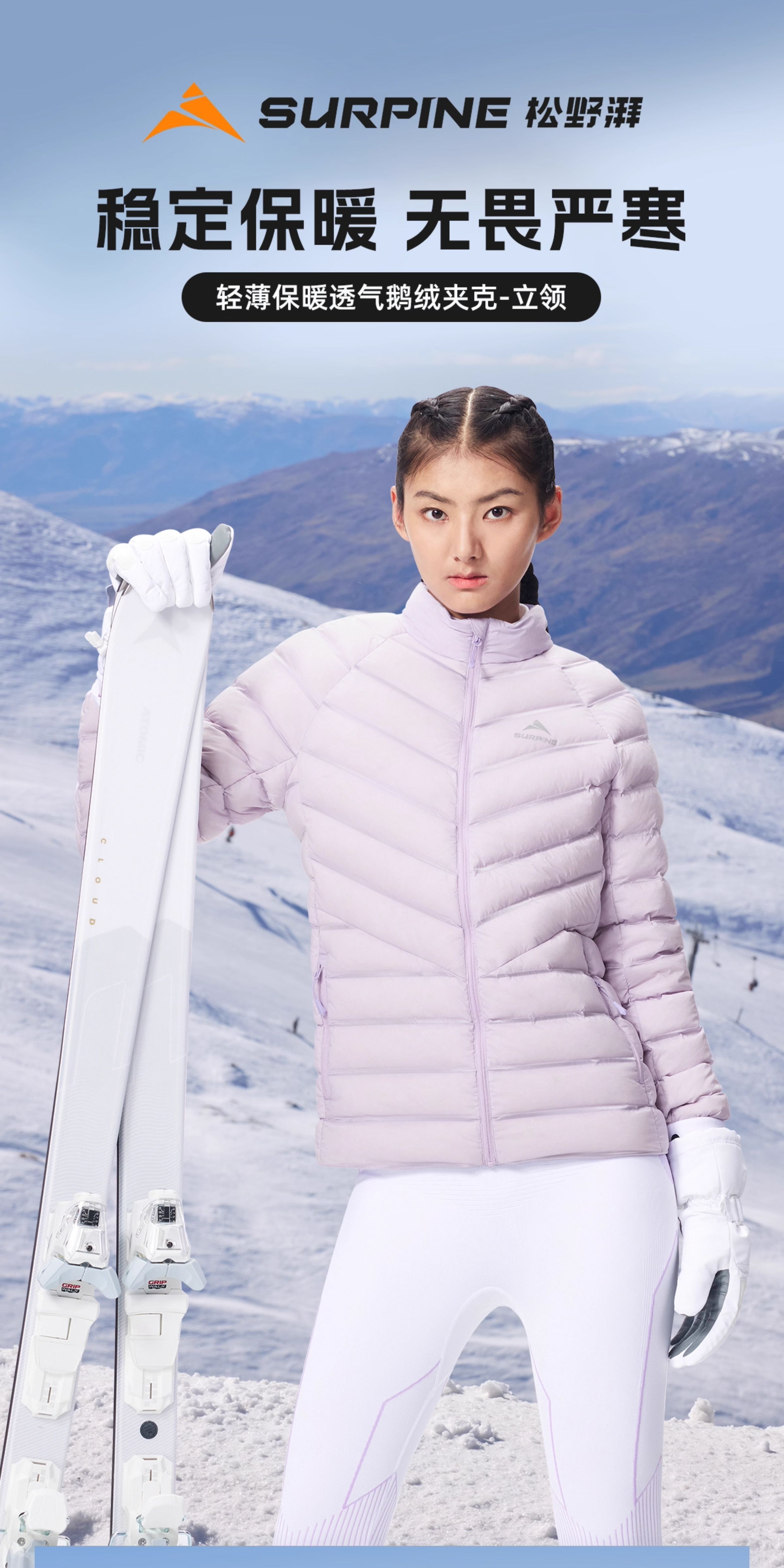 Surpine Matsuno Pai Lightweight, Warm, Breathable Goose down Jacket with Stand Collar for Skiing and Outdoor Sports