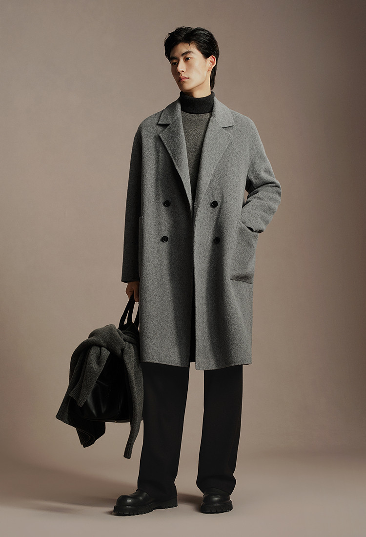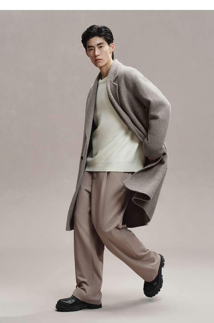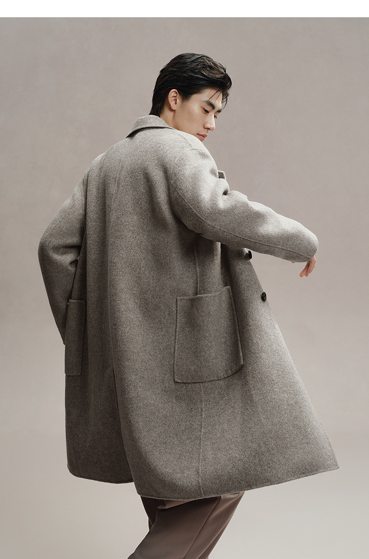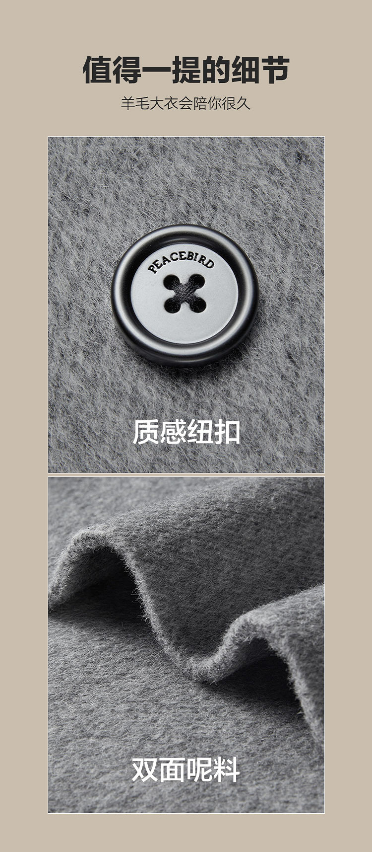 Peacebird Men's Casual Coat Loose Fashion Classic Selected Wool Blend Coat for Men