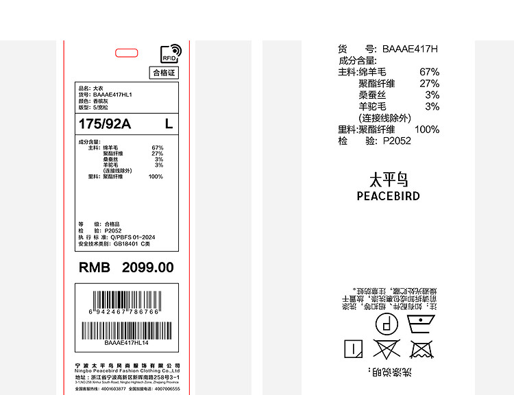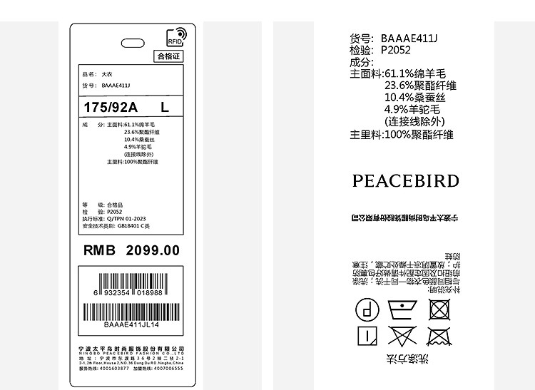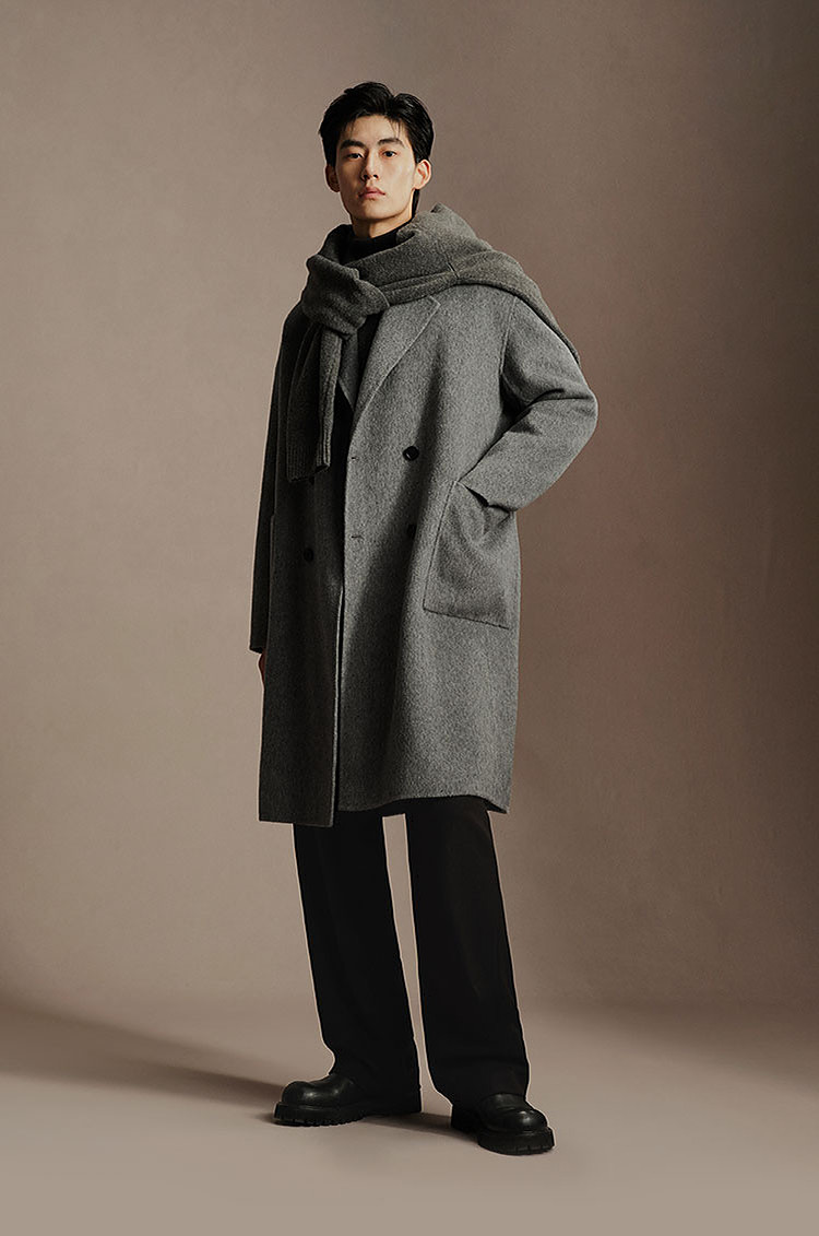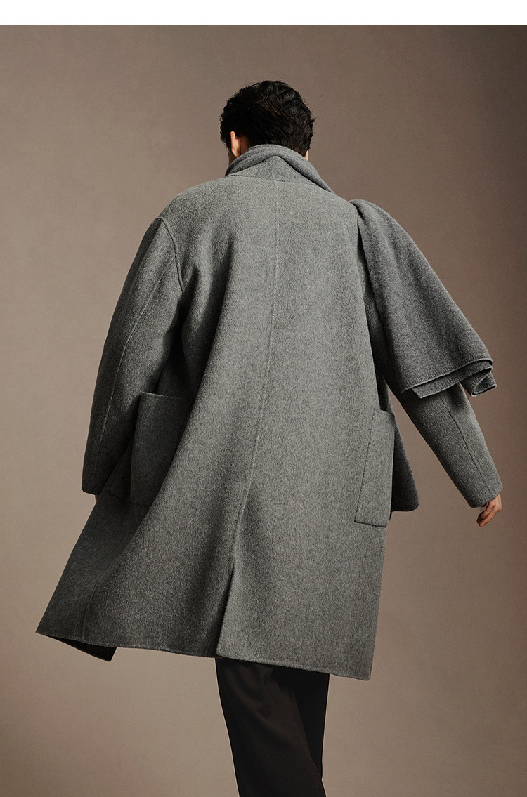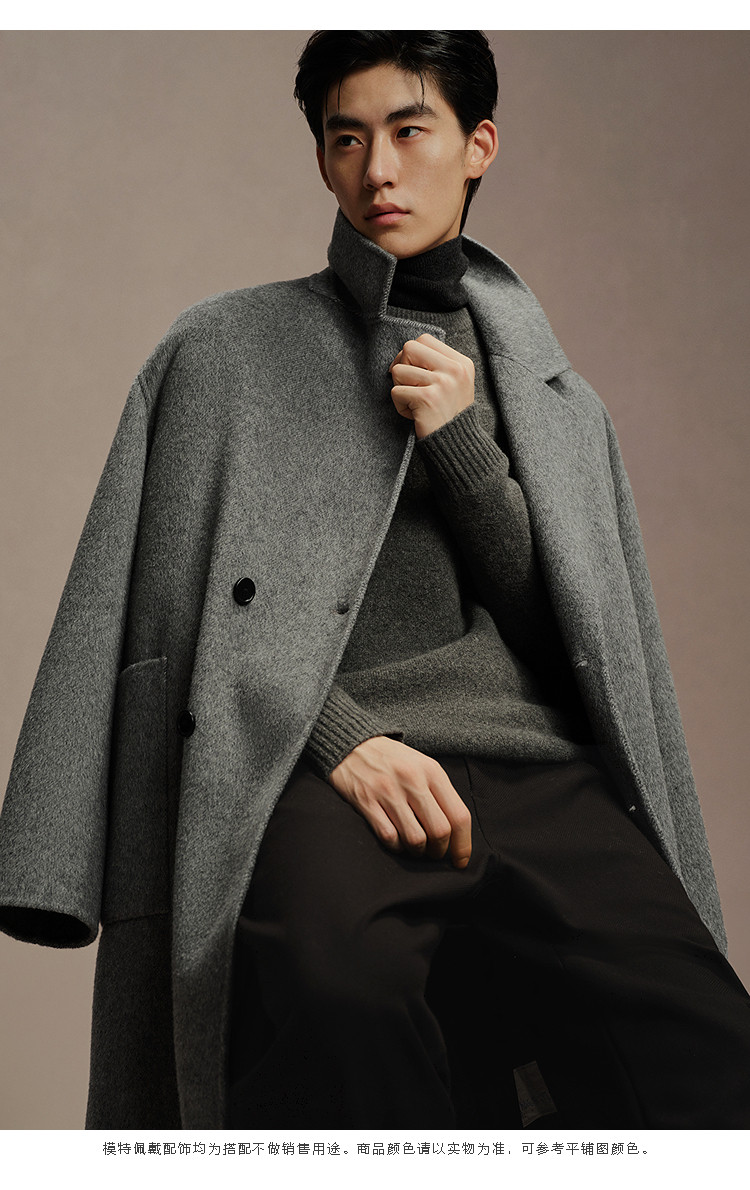 Peacebird Men's Casual Coat Loose Fashion Classic Selected Wool Blend Coat for Men
