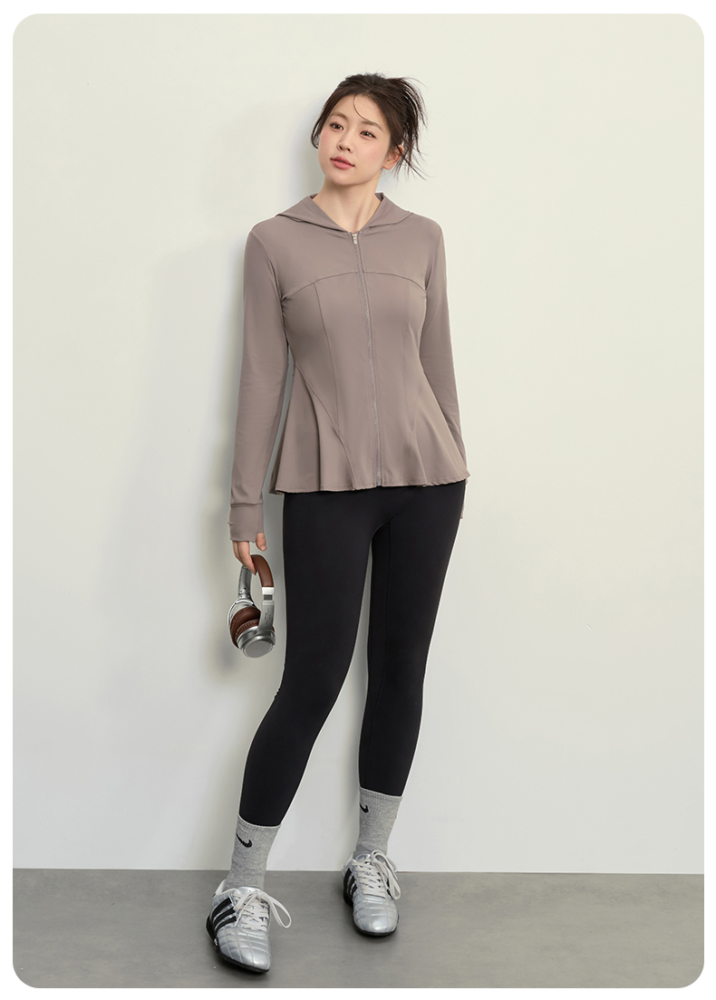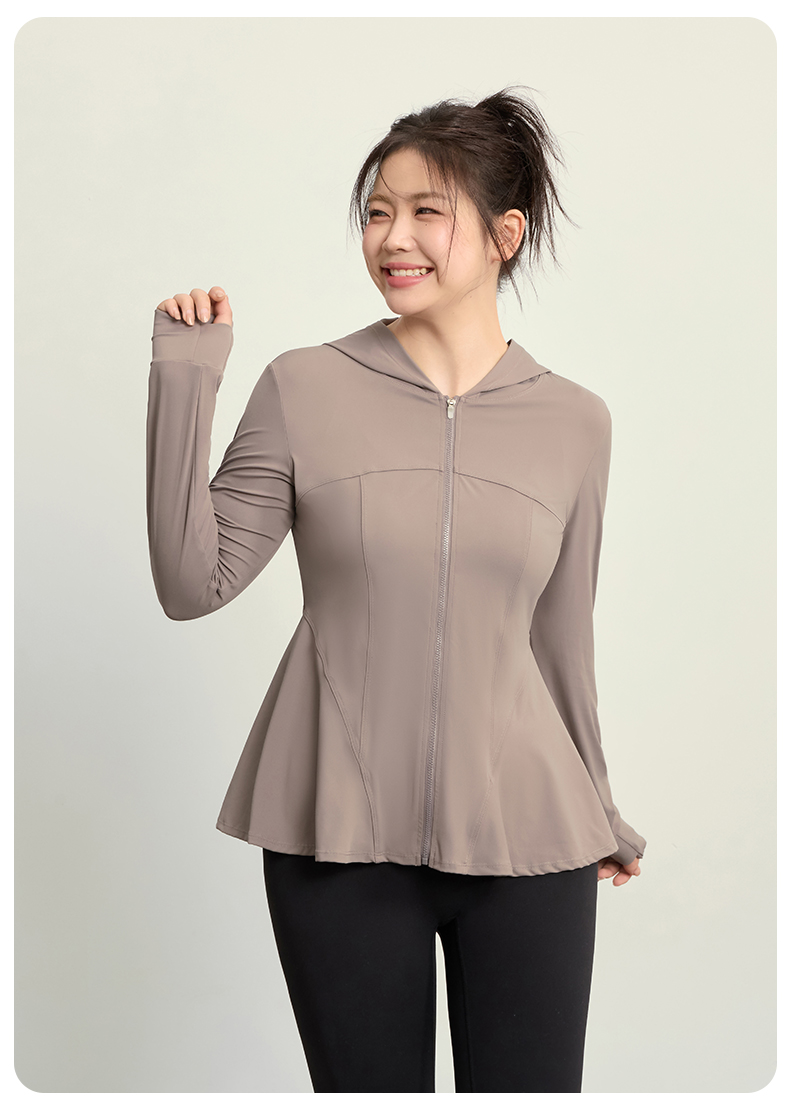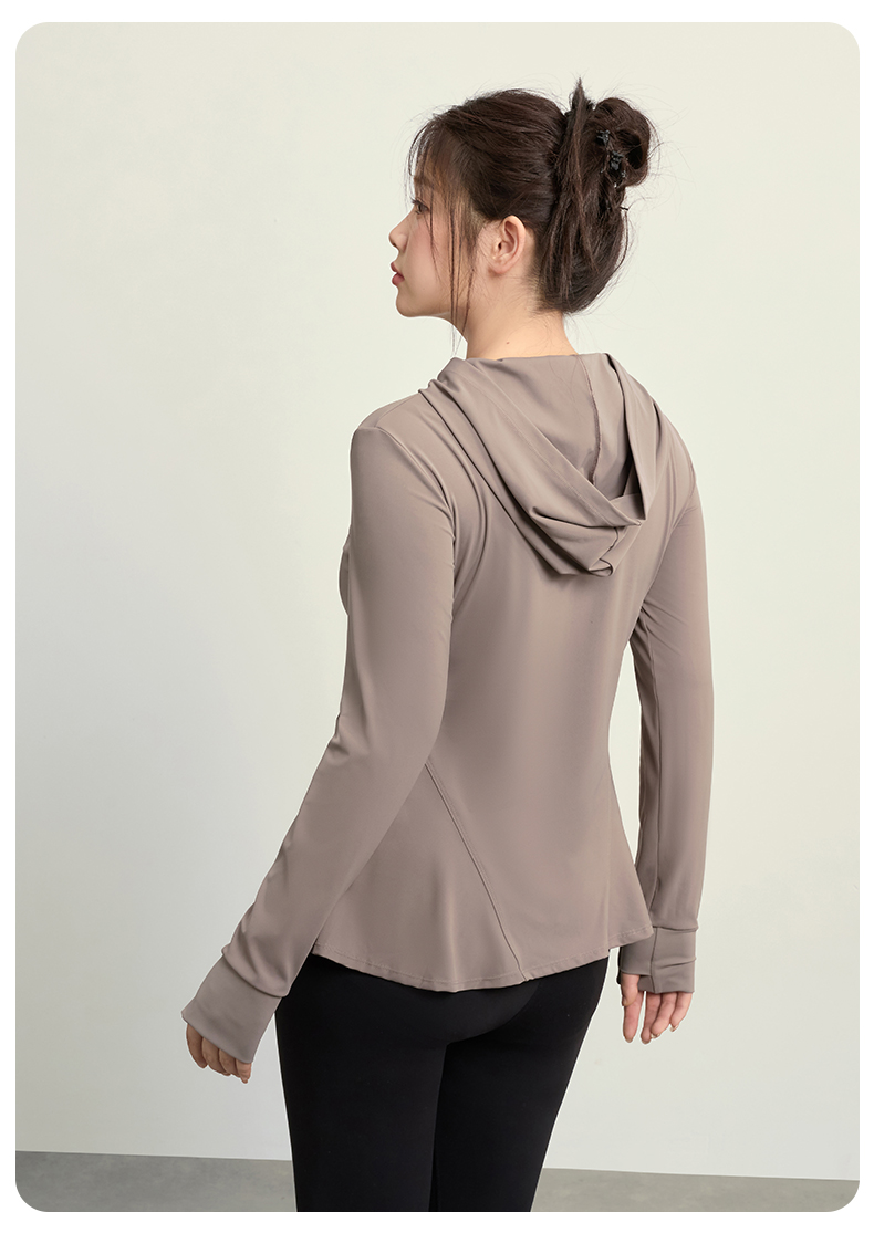 Yoga Clothing for Women, Plus Size Sports Jacket, New Autumn Hooded Slim-Fit Top, Mid-Length, Long-Sleeved Fitness Wear for Plus-Size Women