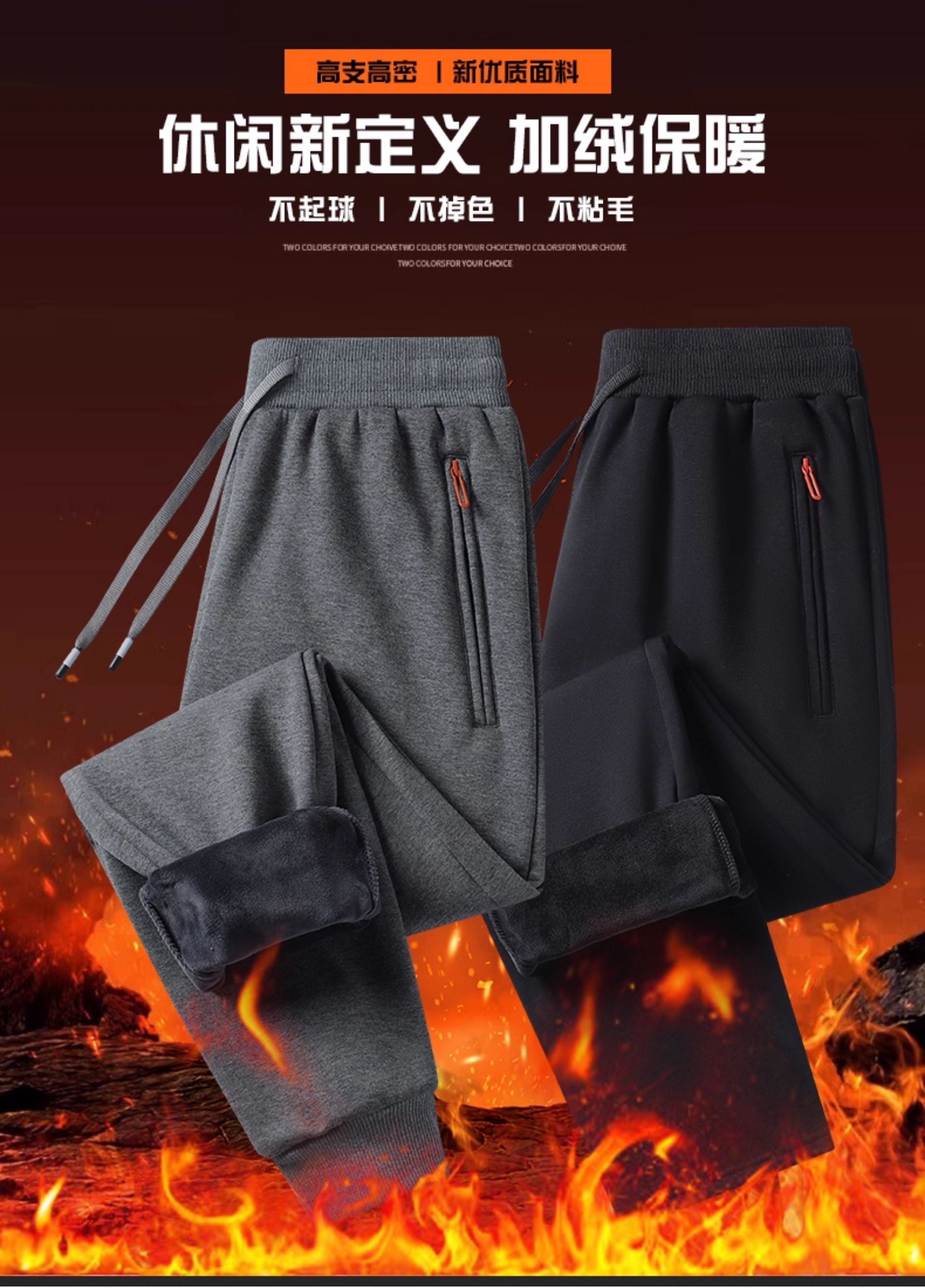 Men's Casual Pants for Autumn and Winter, Thickened, Warm, Fleece-Lined, Loose Fit, Plus Size, Extra Large, Cotton Sweatpants for Big and Tall Men