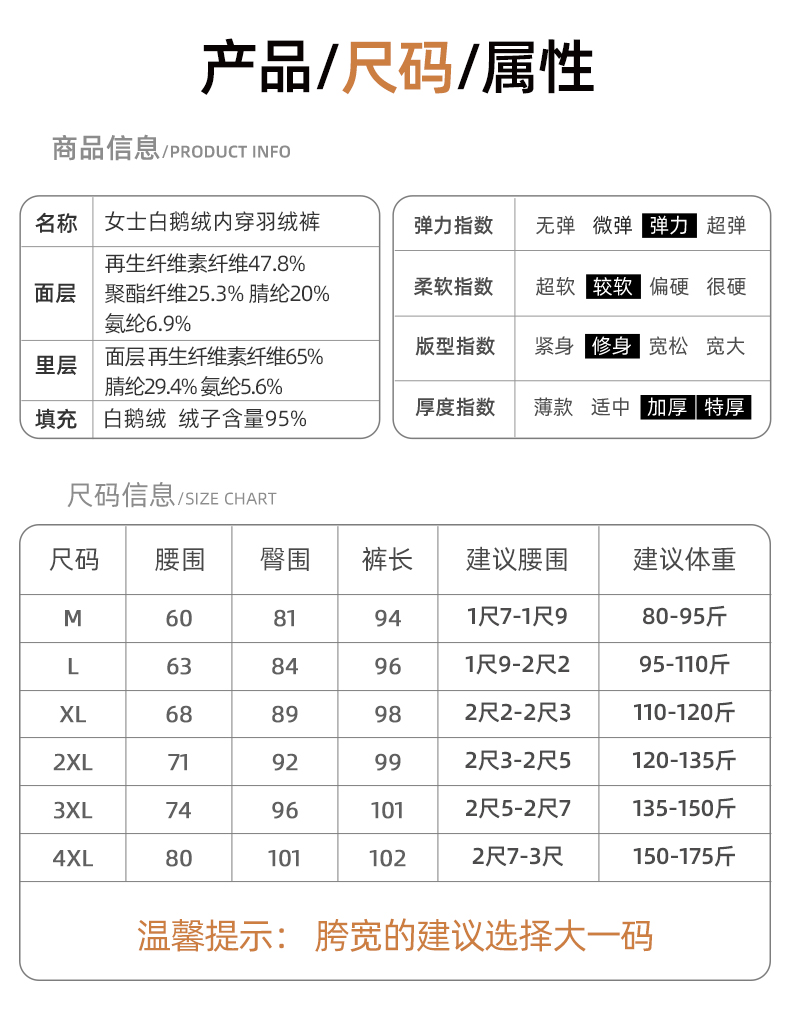 Flying in the Snow Goose down Pants Women's Underwear Winter Extra Thick down Liner Minus 40 Degrees Extremely Cold Cotton Pants Northeast Coldproof Pants