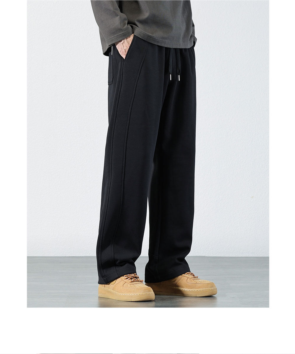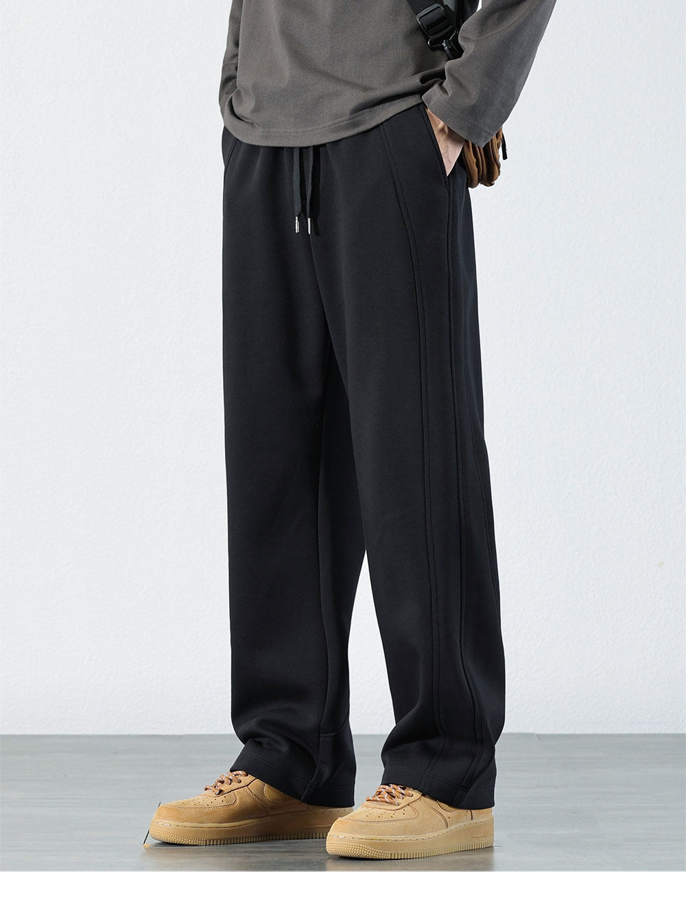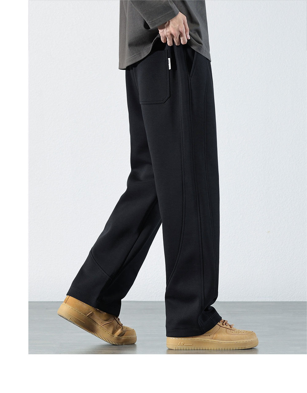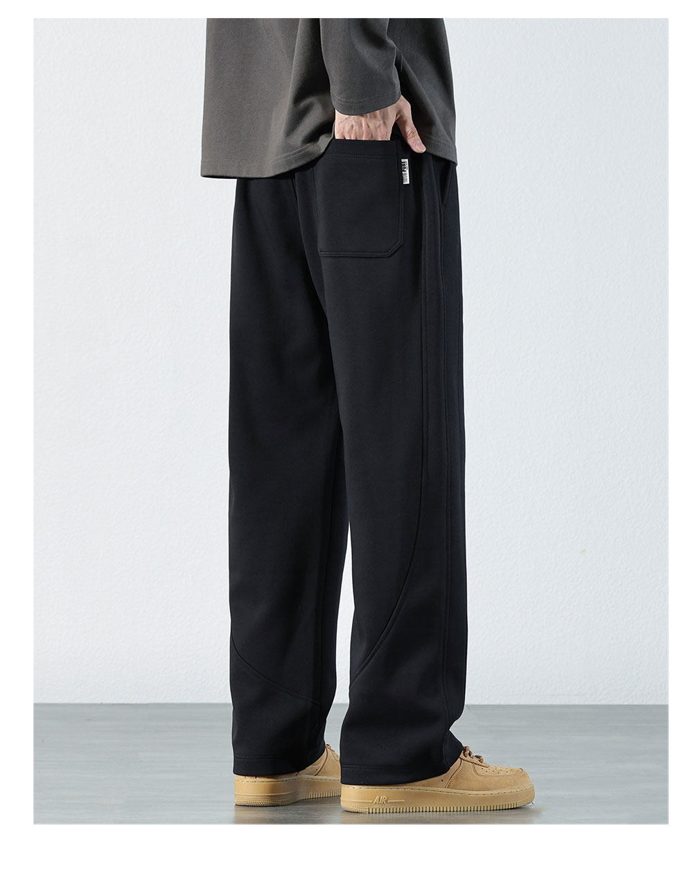 Haozhi Straight-Leg Casual Pants for Men, Winter Fleece-Lined, Loose Fit, Plus Size Long Pants, American Style Trendy Wide-Leg Sweatpants