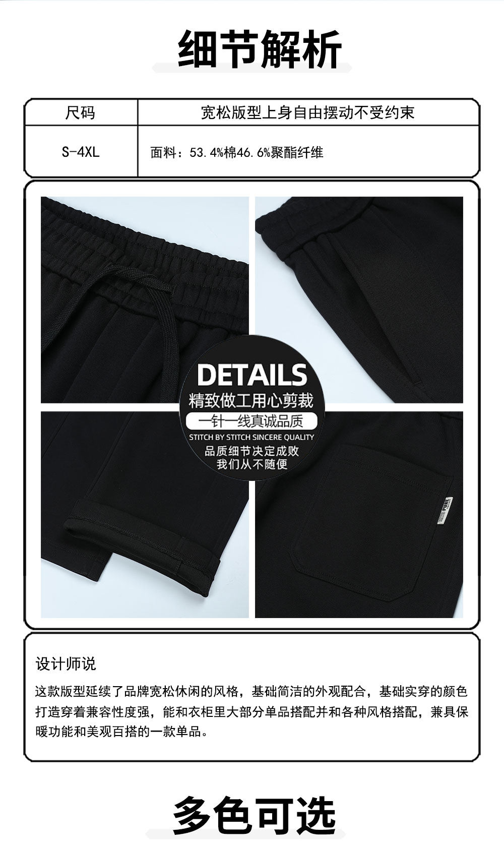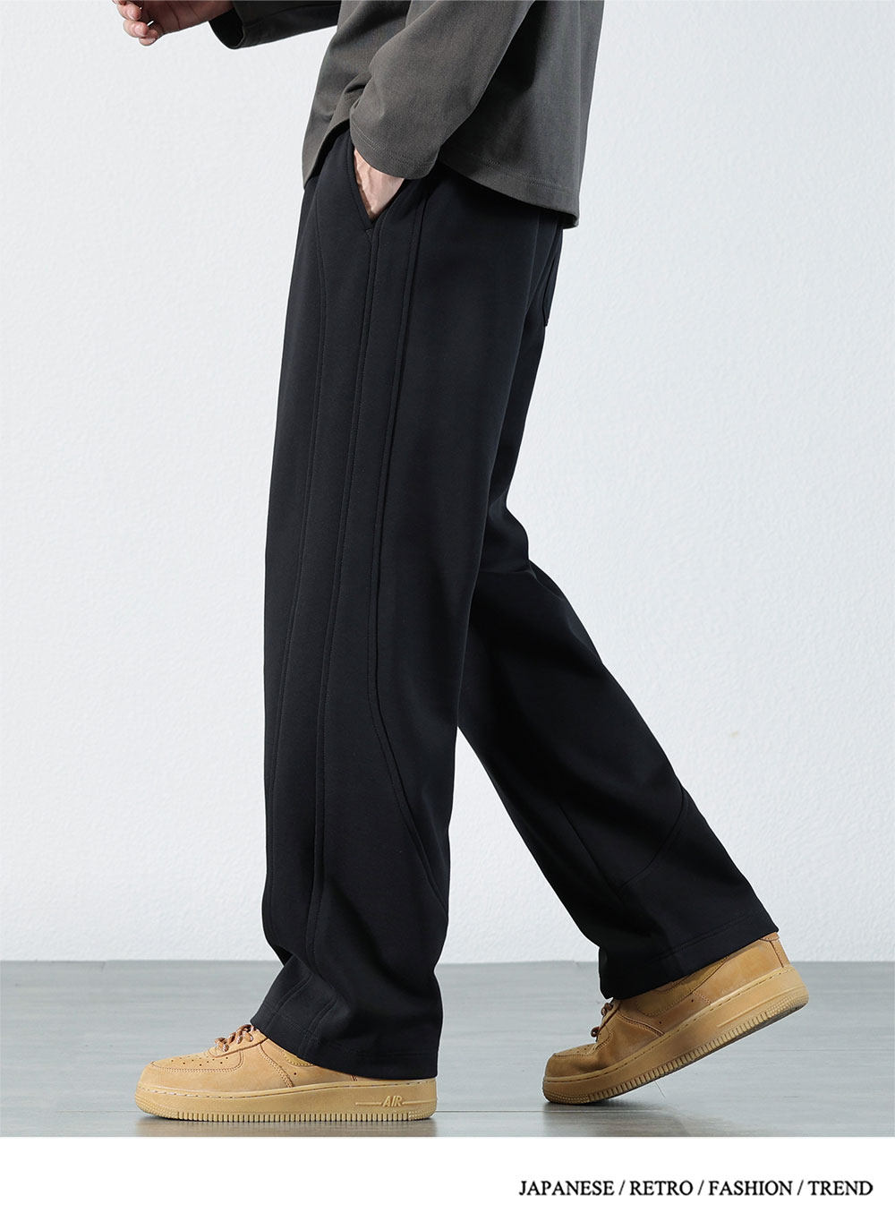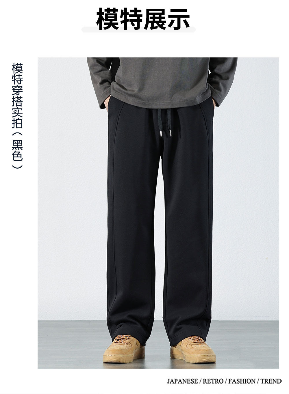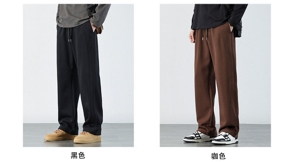 Haozhi Straight-Leg Casual Pants for Men, Winter Fleece-Lined, Loose Fit, Plus Size Long Pants, American Style Trendy Wide-Leg Sweatpants