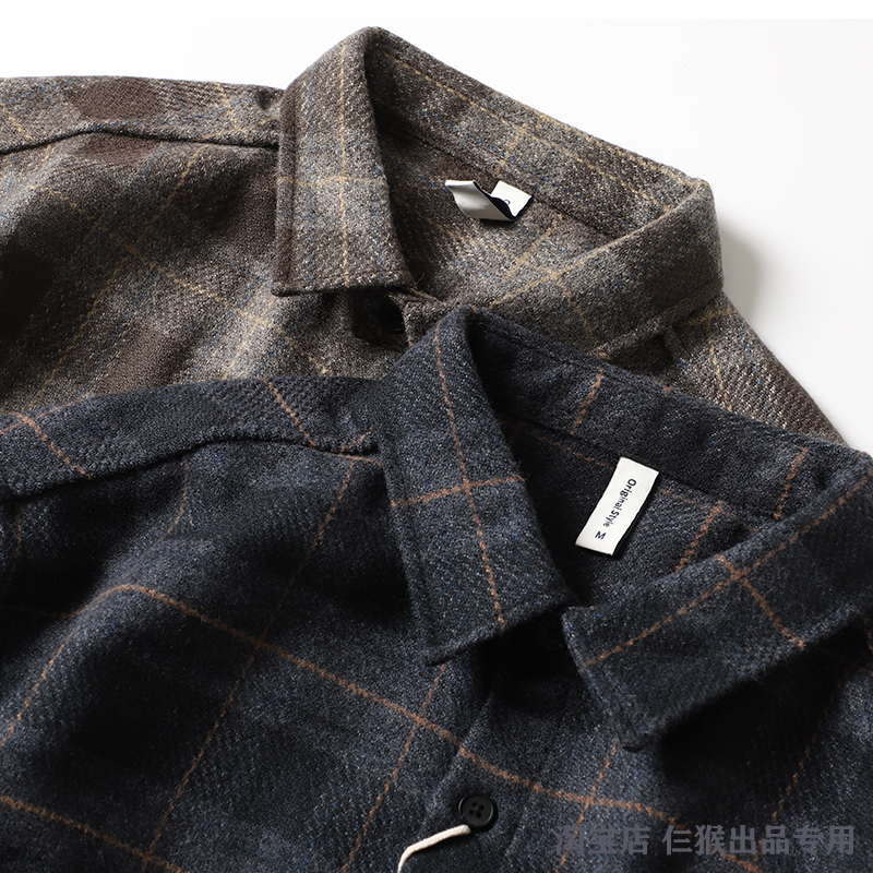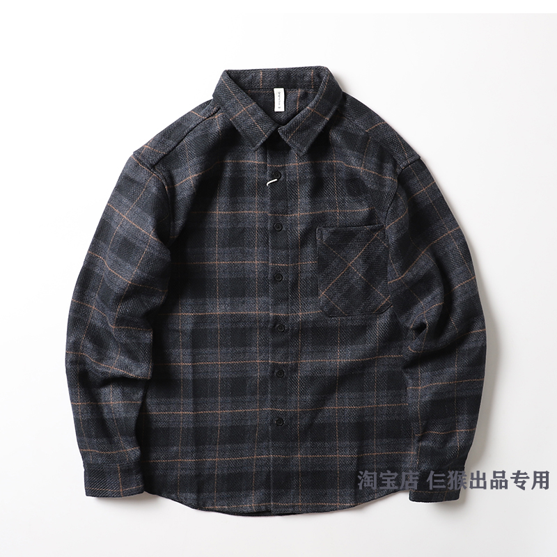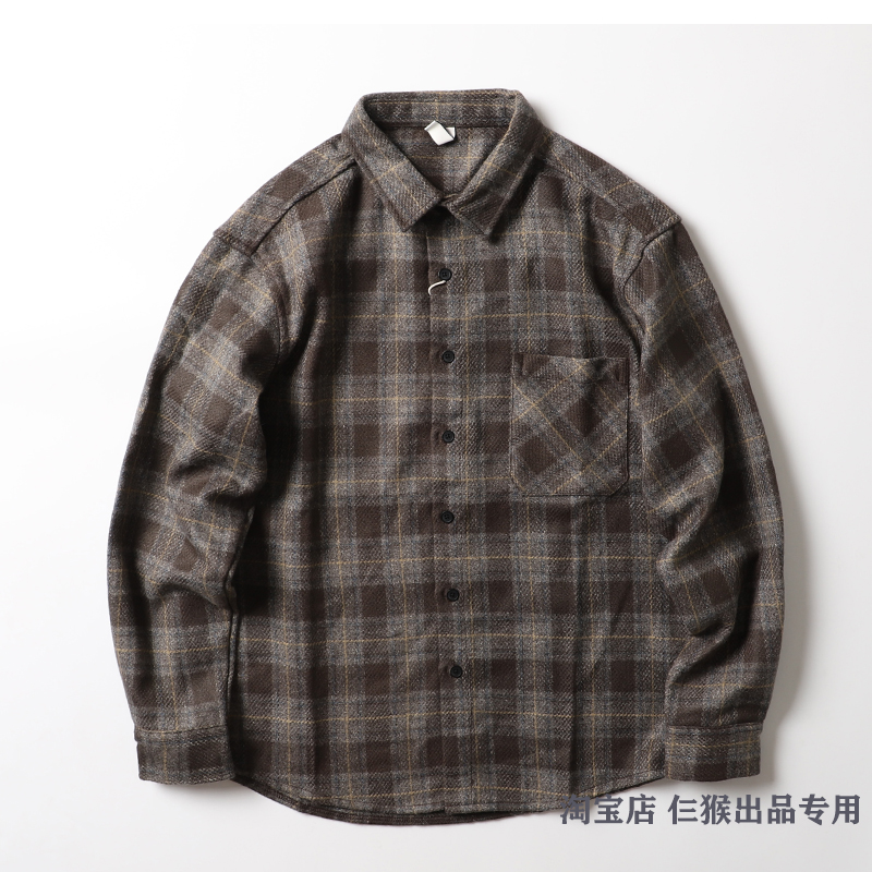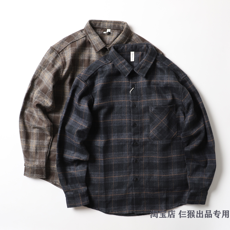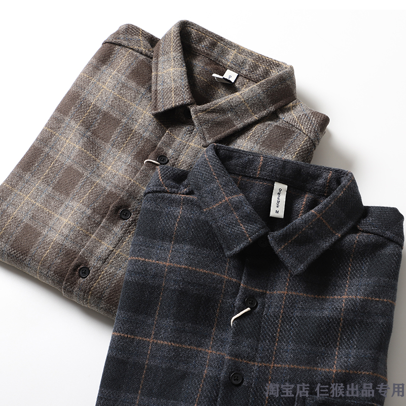 High-Quality Japanese Casual Plaid Long-Sleeve Shirt for Men, Thick Woolen Brushed Fabric, Autumn Casual Jacket Shirt, Trendy