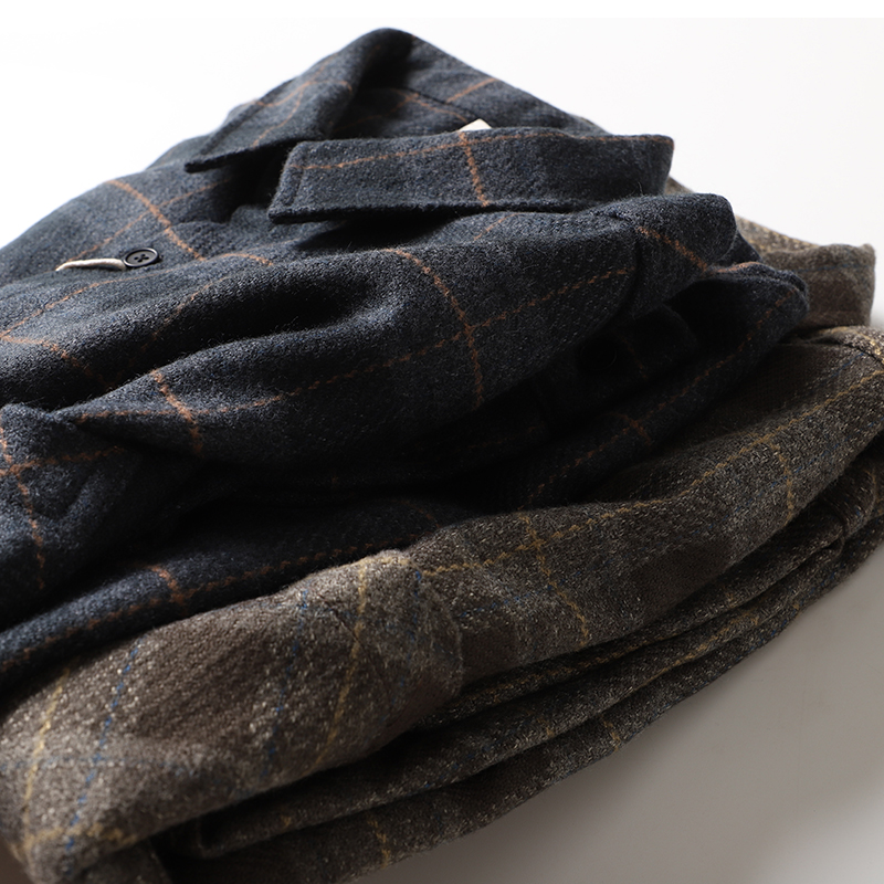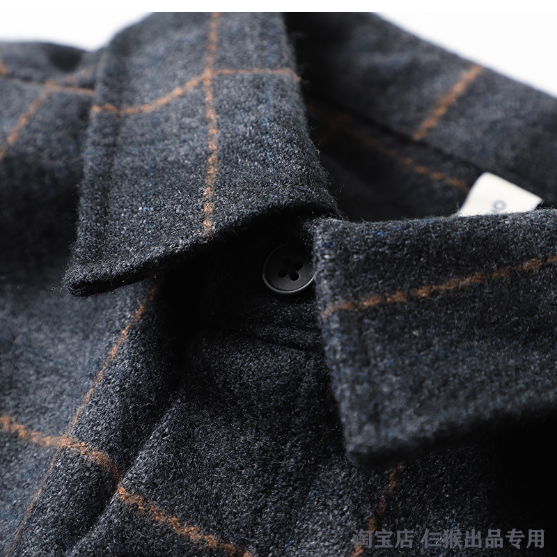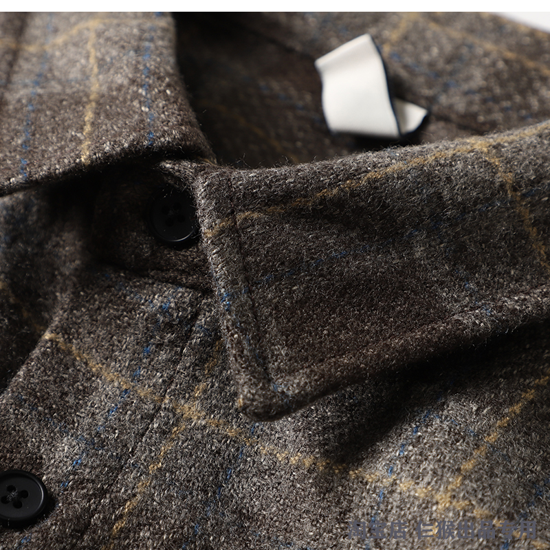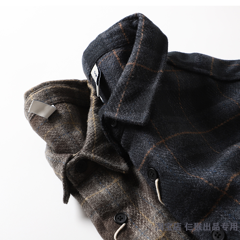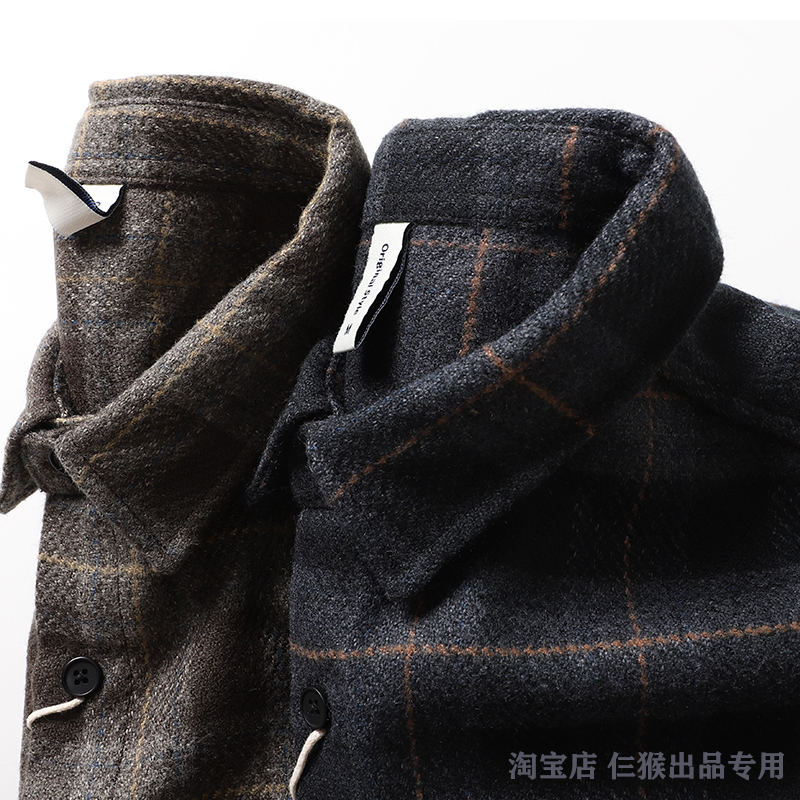 High-Quality Japanese Casual Plaid Long-Sleeve Shirt for Men, Thick Woolen Brushed Fabric, Autumn Casual Jacket Shirt, Trendy