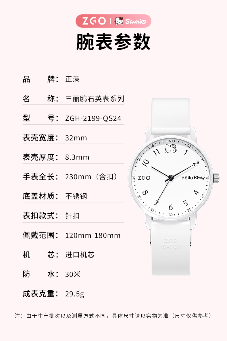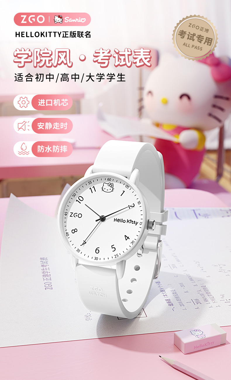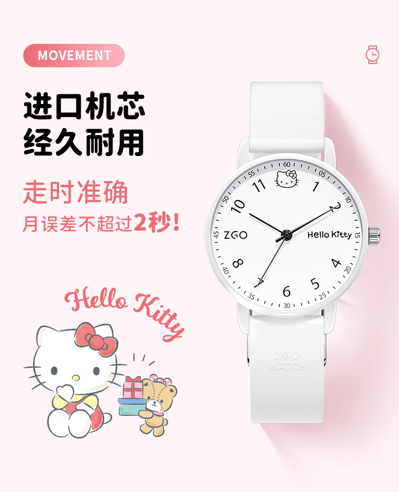 Zhenggang Zgox Sanrio Hello Kitty Children's Watch for Girls, Elementary School Students Only, Time-Only Display, Suitable for Middle and High School Students