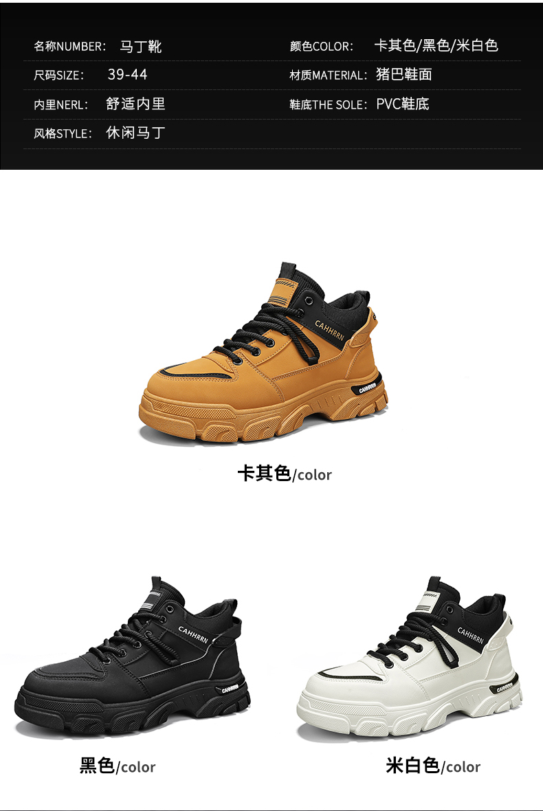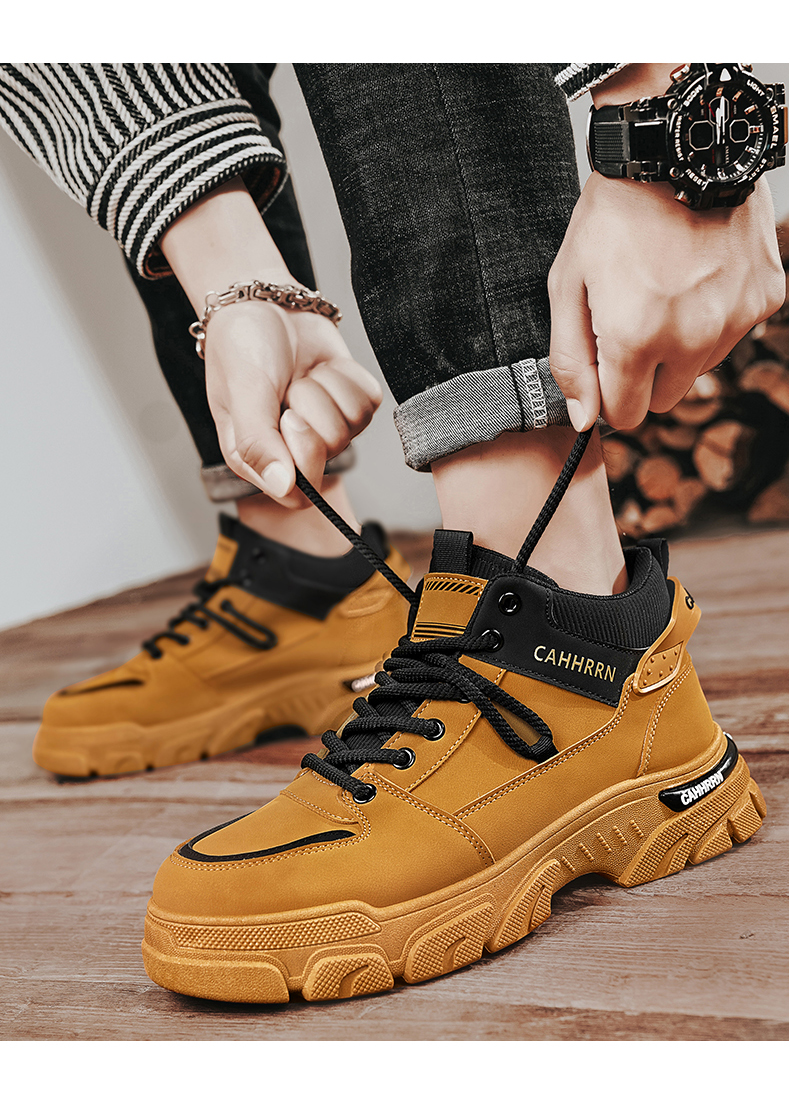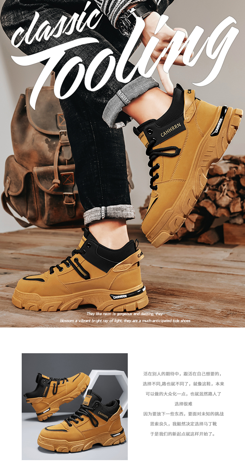 High-Top Men's Shoes 2025 New Autumn British Style Workwear Martin Boots Sports Casual Trendy Shoes Winter Fleece-Lined Cotton Shoes