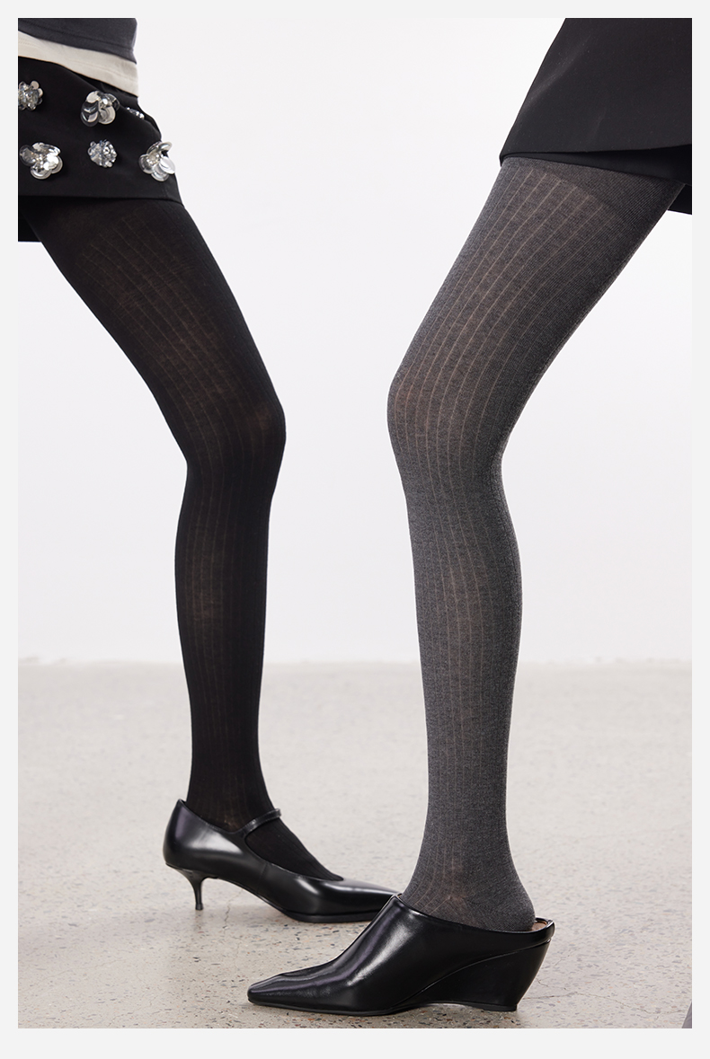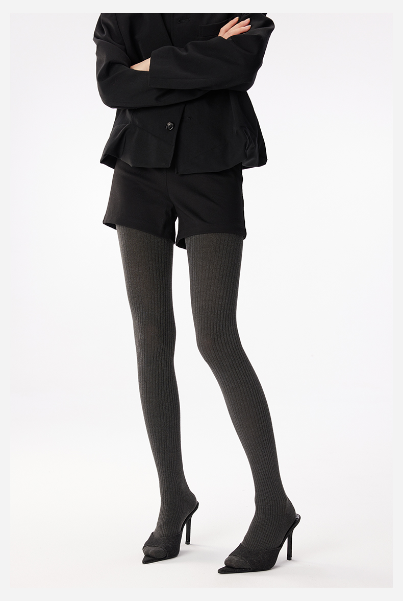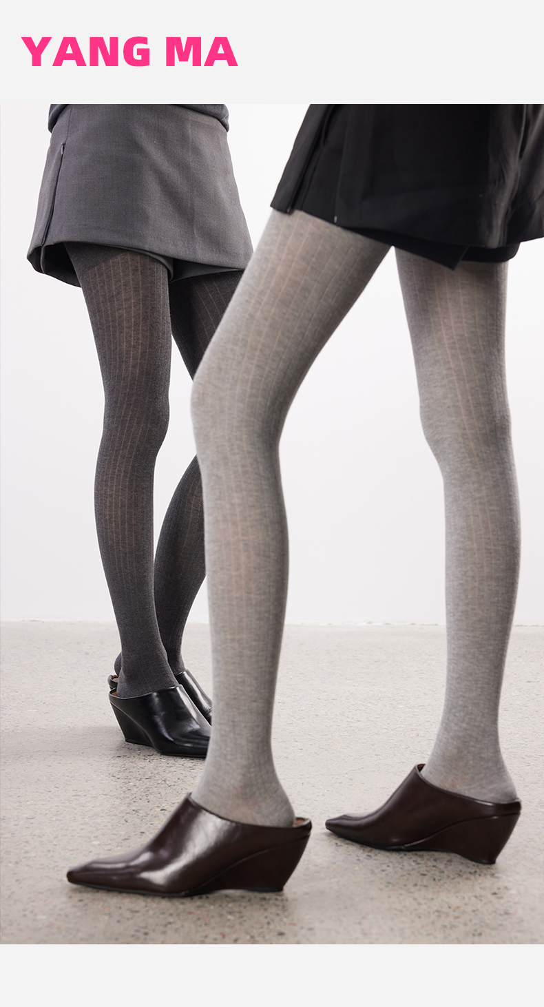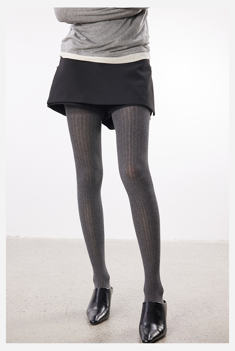 Yangma Autumn and Winter Knitted Tights for Women, Vertical Striped Leggings, Gray Miu Socks, Winter Leggings
