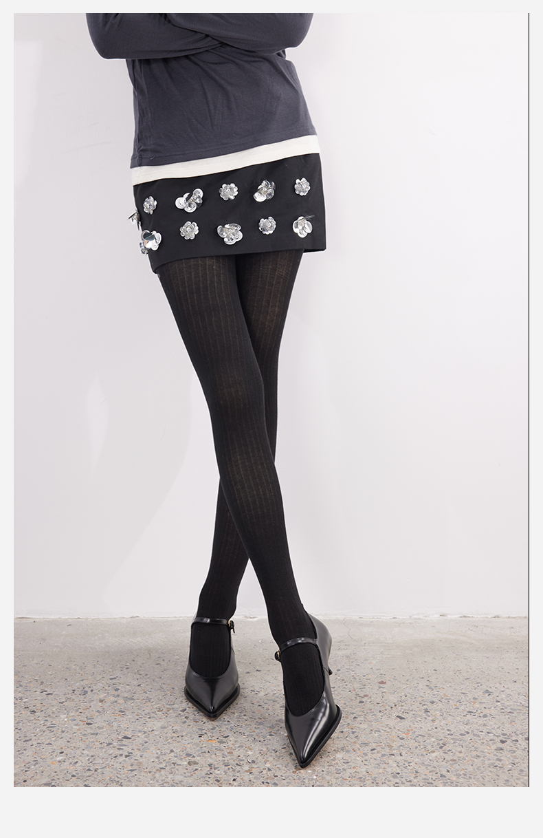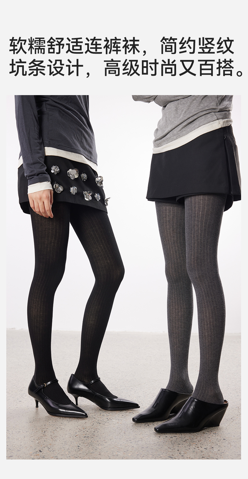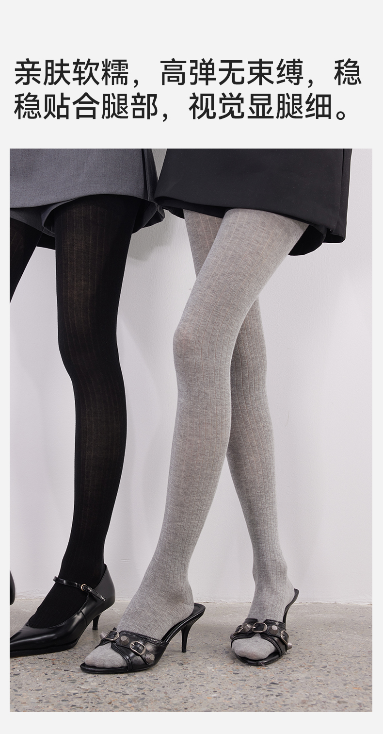 Yangma Autumn and Winter Knitted Tights for Women, Vertical Striped Leggings, Gray Miu Socks, Winter Leggings