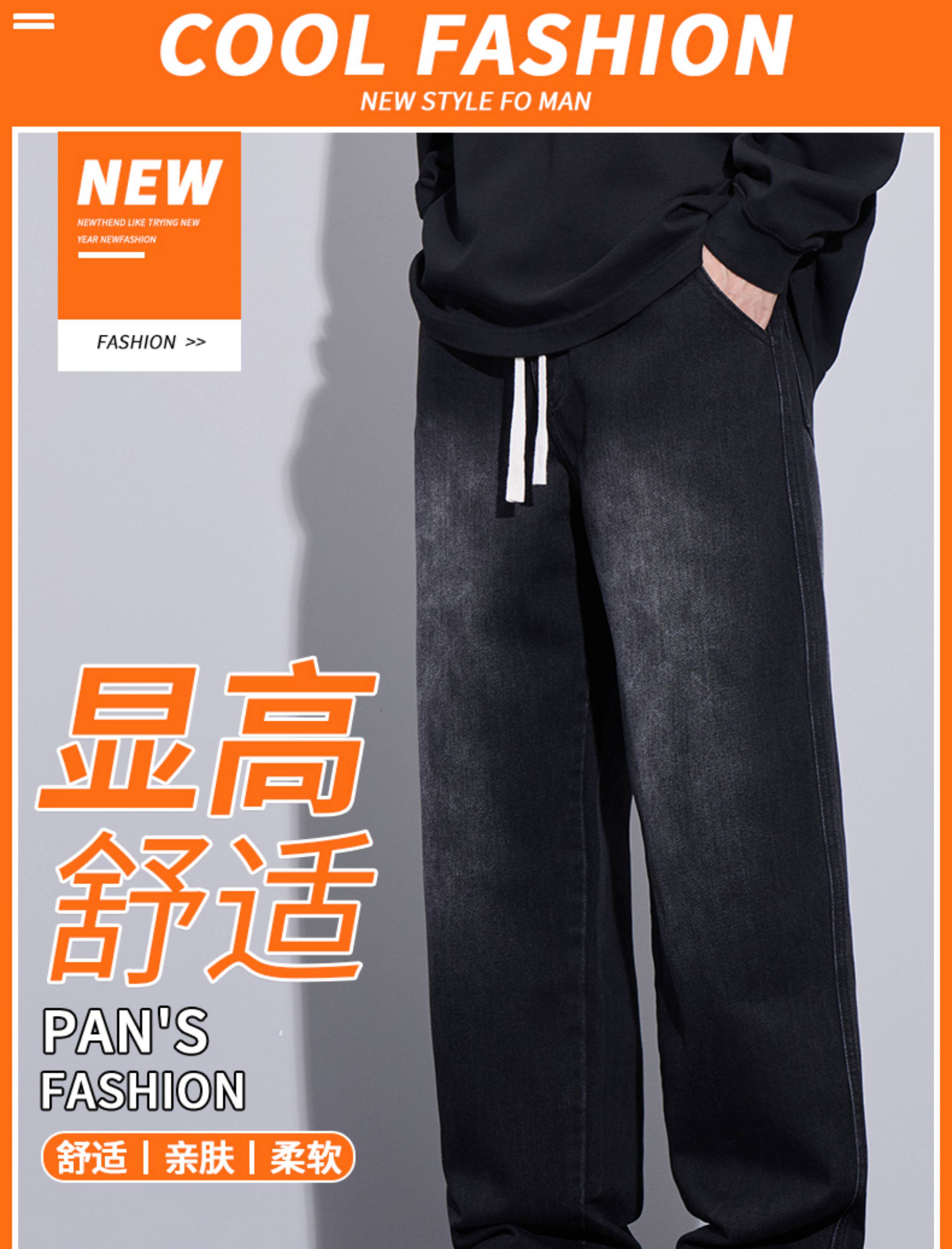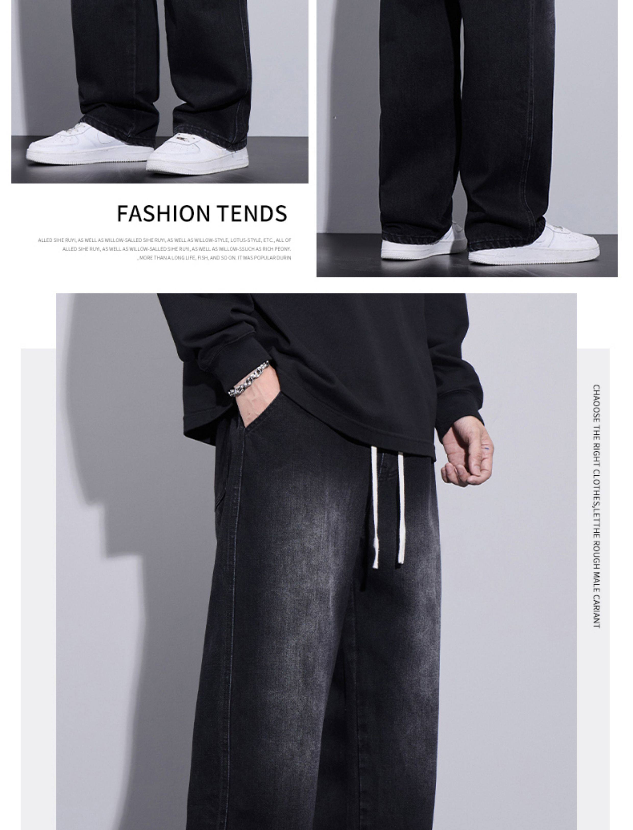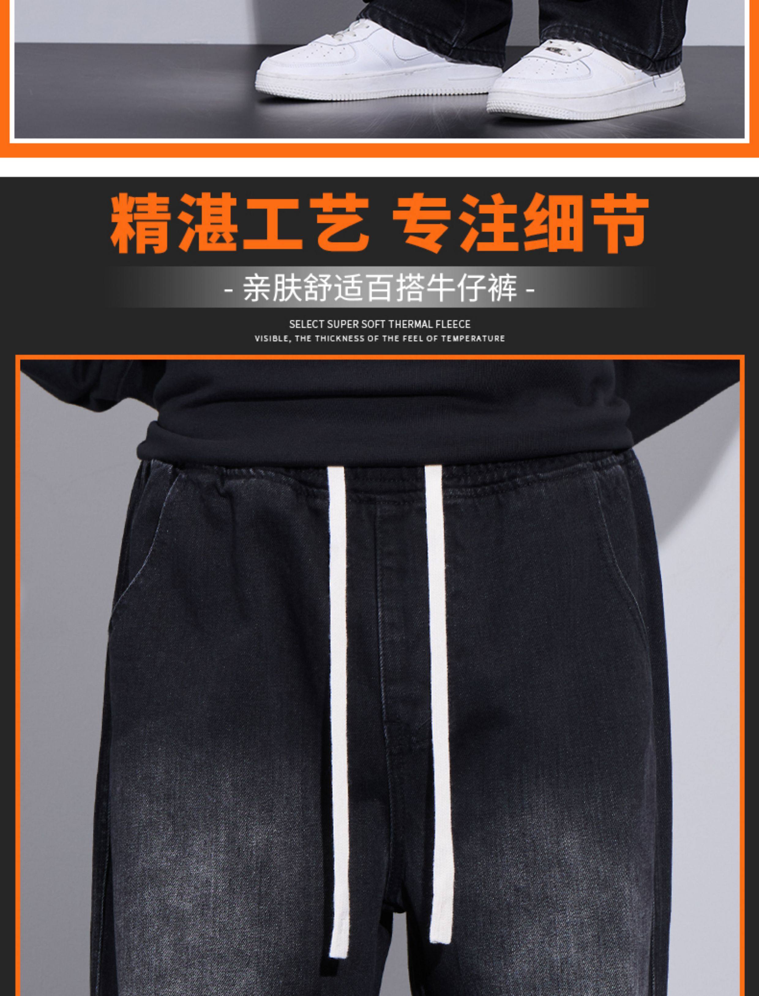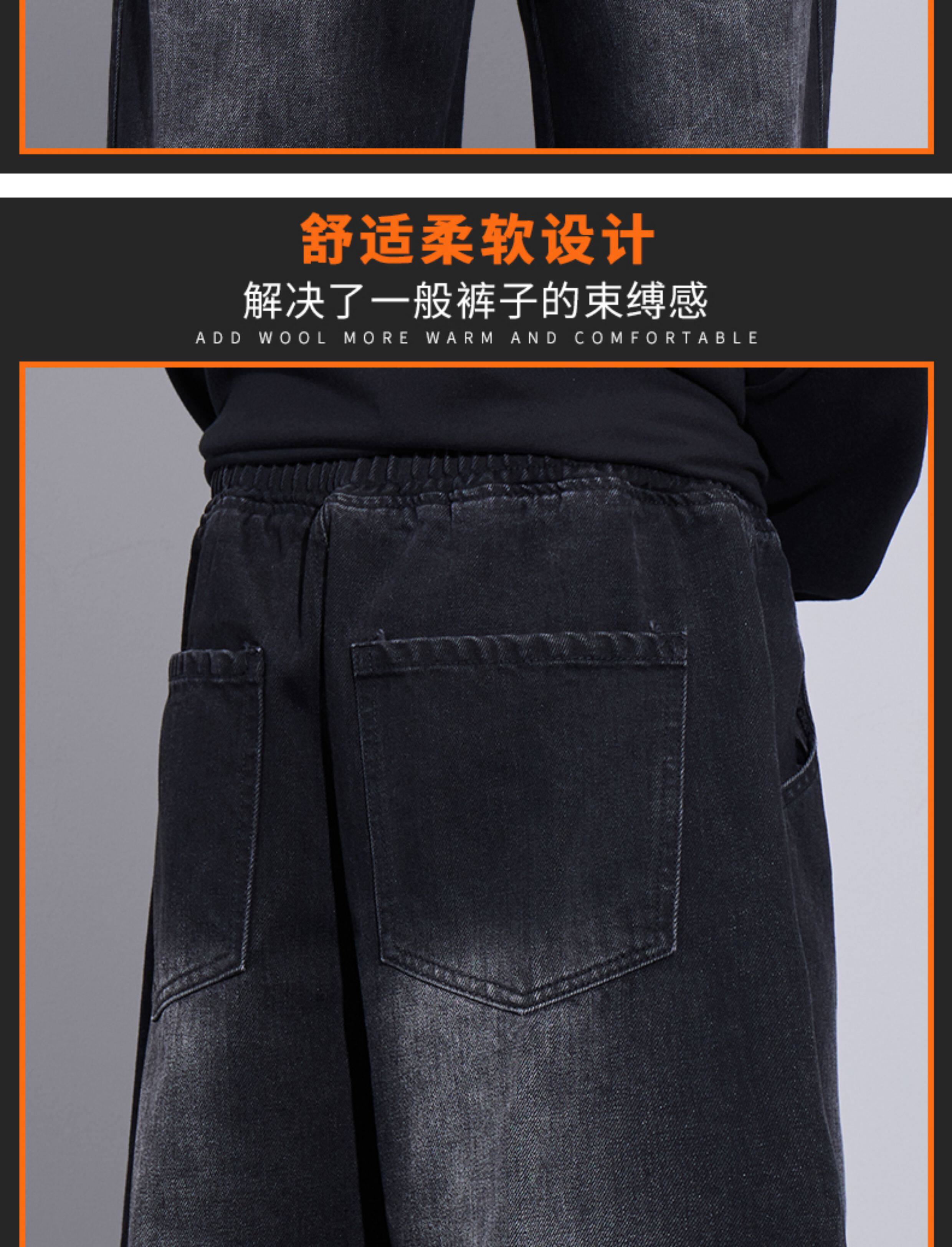 Jeans for Men, Autumn and Winter New Style, Black, Fleece-Lined, Thickened Pants, Casual Men's Pants, Winter Straight-Leg Long Pants