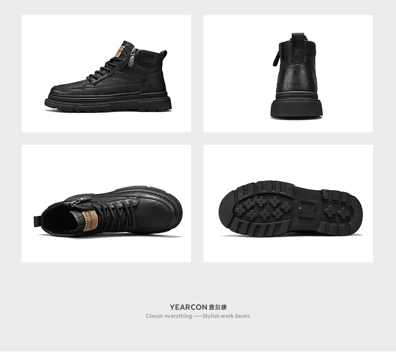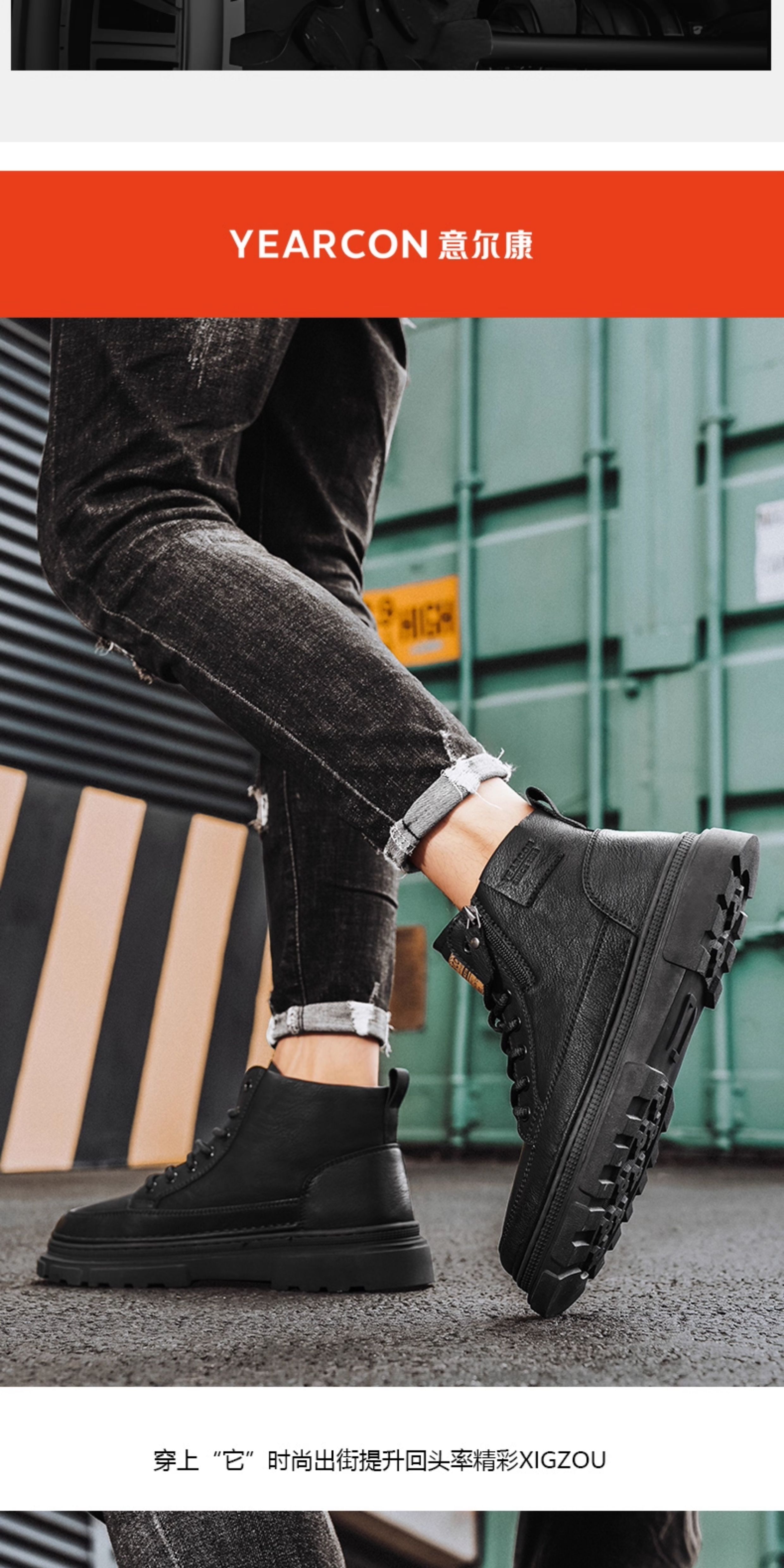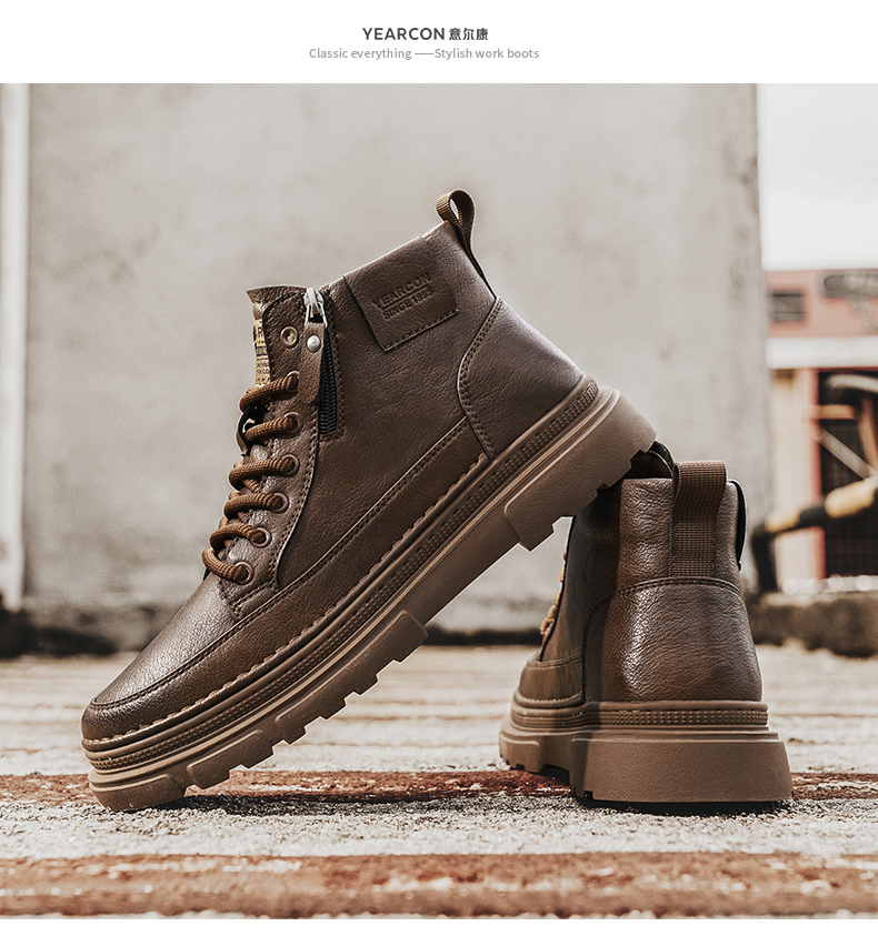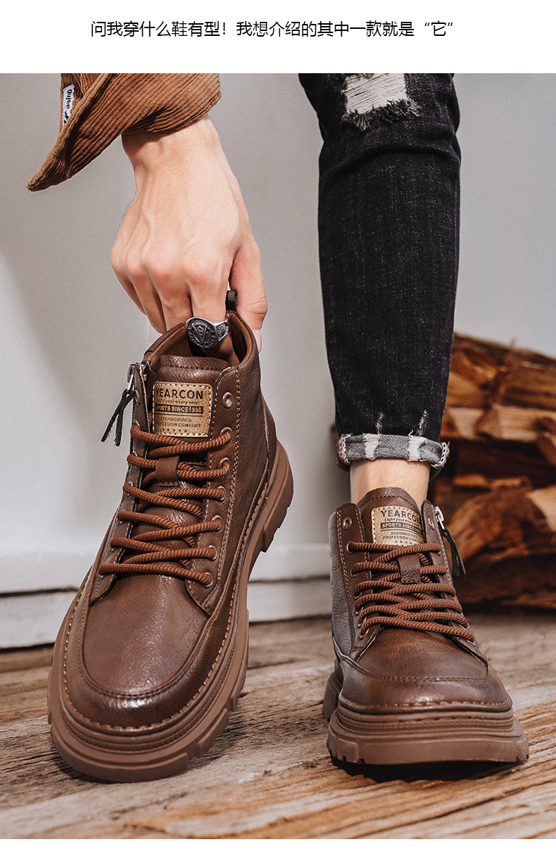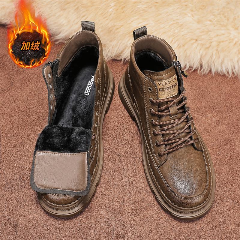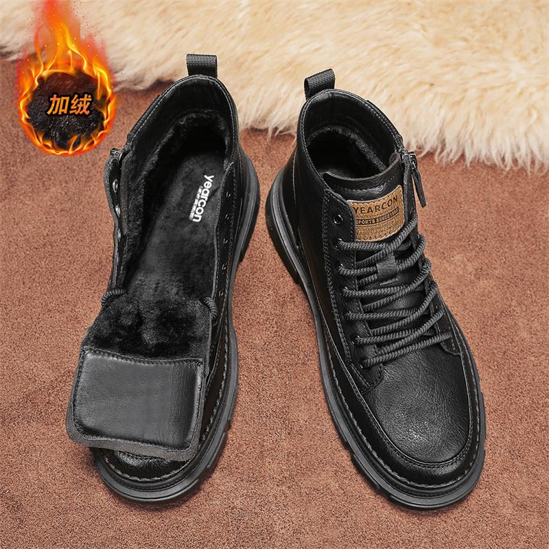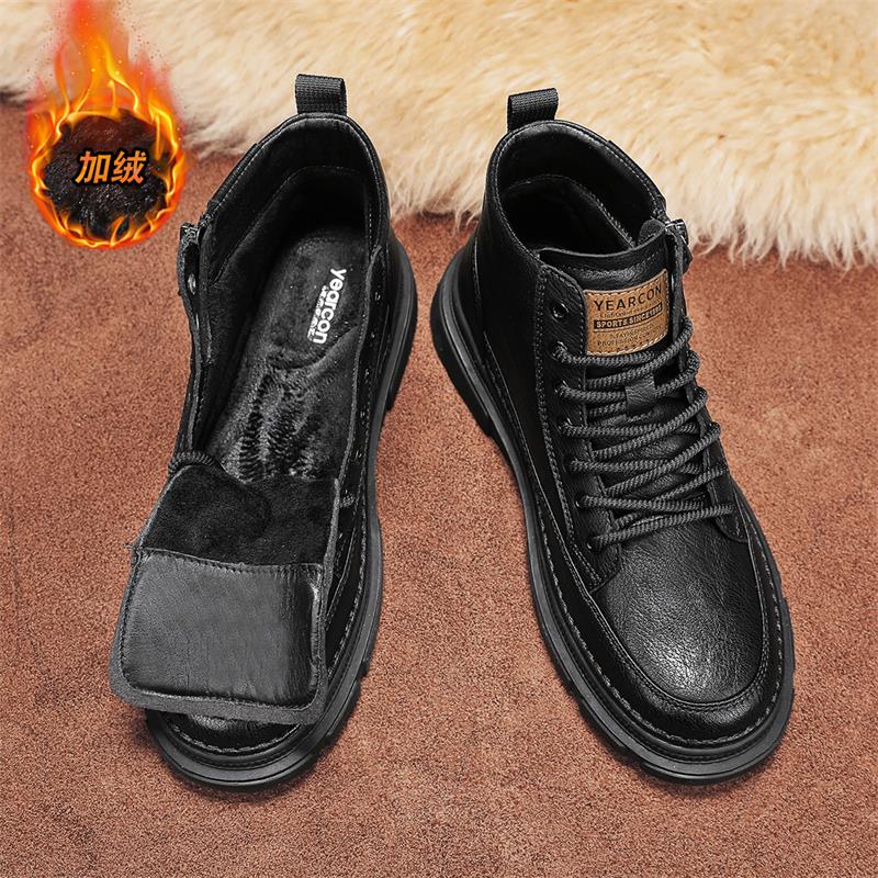 Yierkan Martin Boots Men's Shoes 2025 New Autumn and Winter Fleece-Lined Cotton Shoes High-Top British Style Men's Chelsea Boots