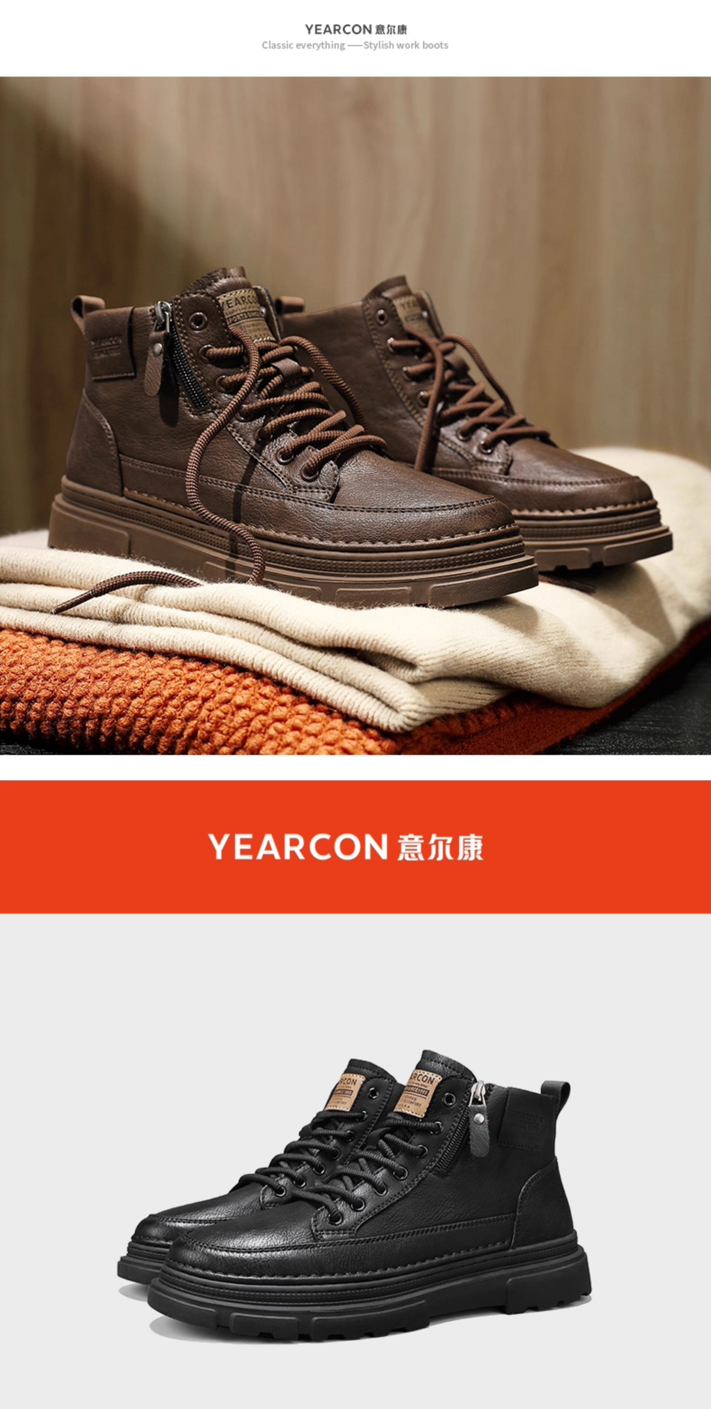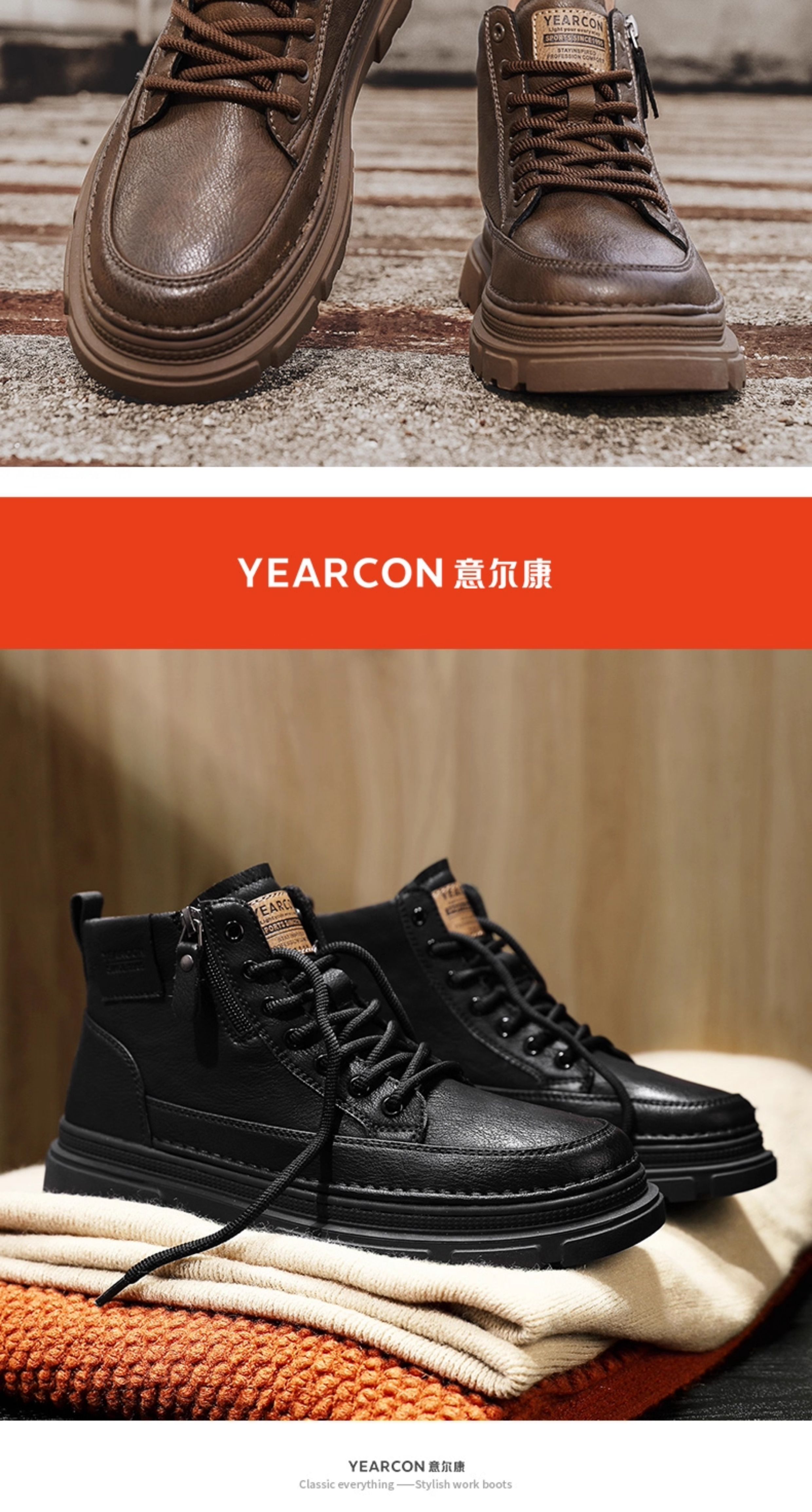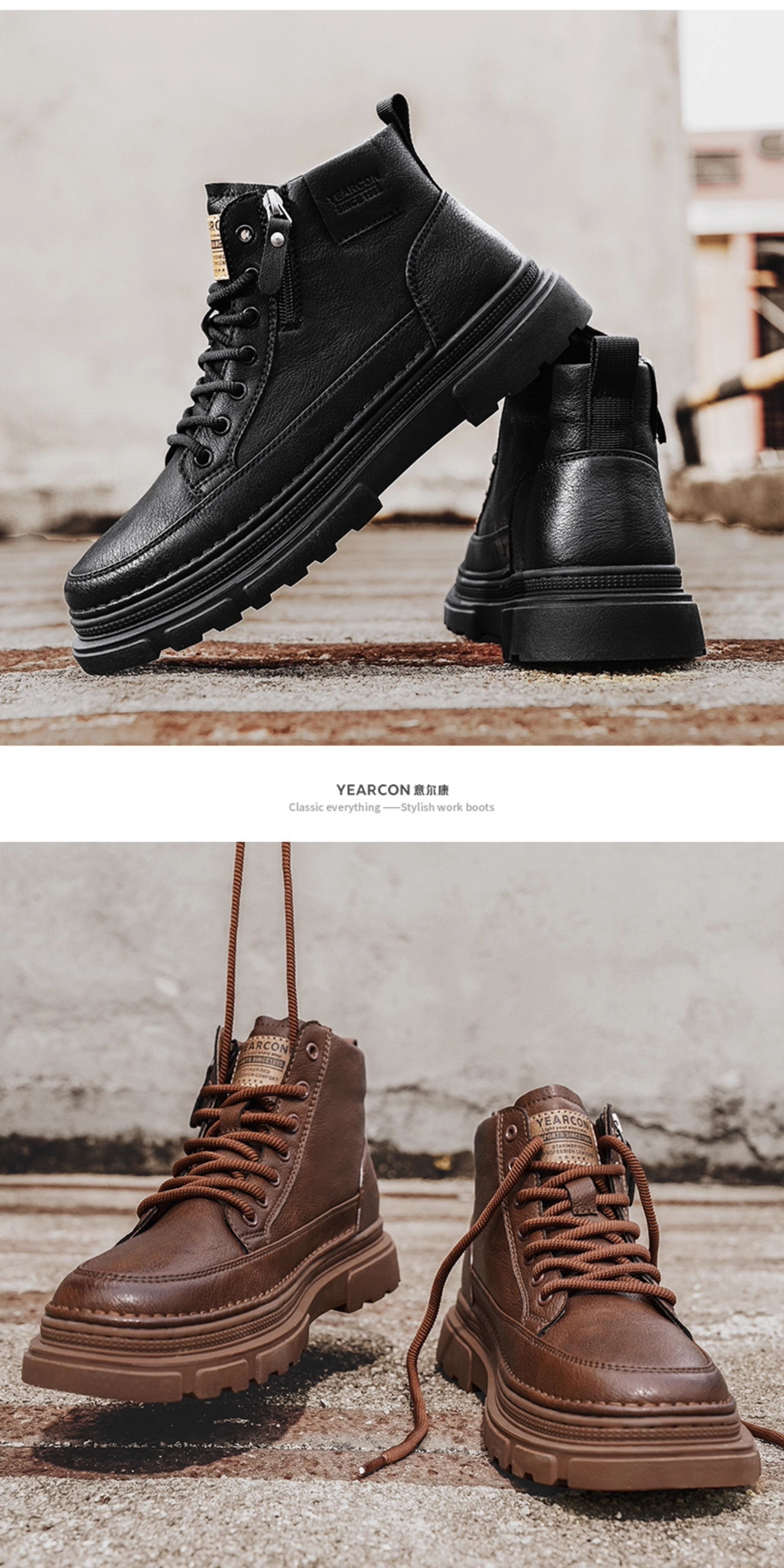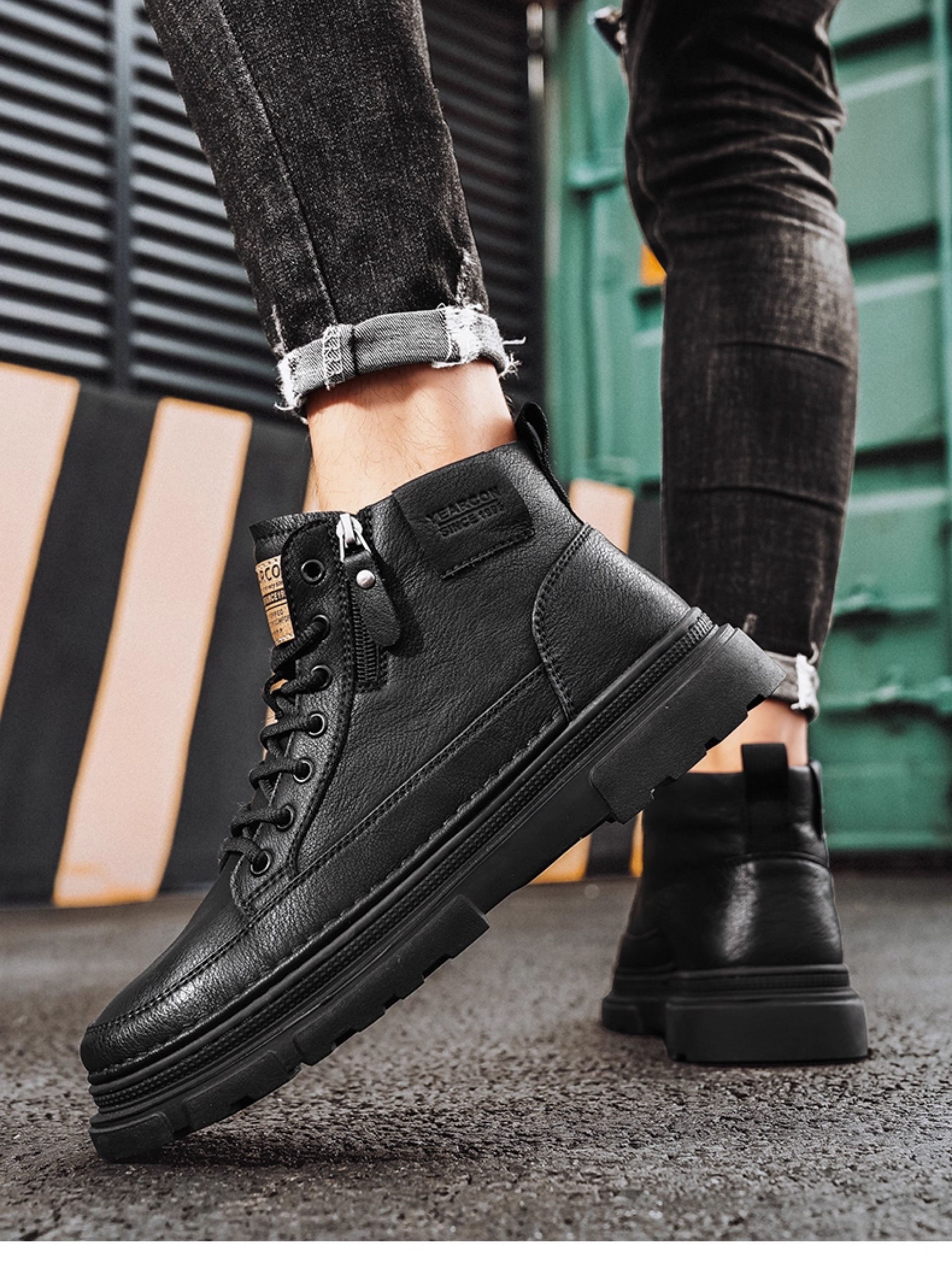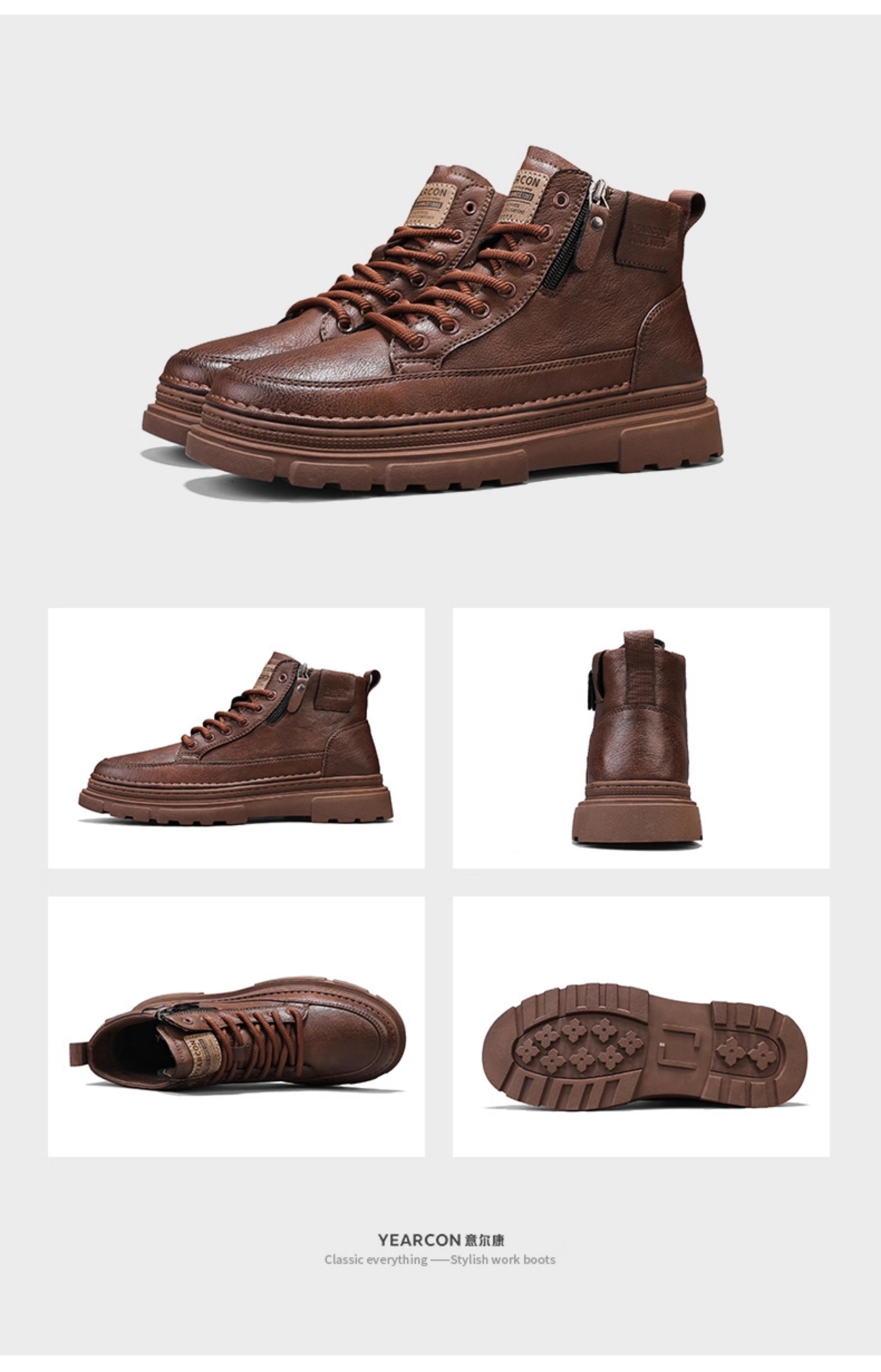 Yierkan Martin Boots Men's Shoes 2025 New Autumn and Winter Fleece-Lined Cotton Shoes High-Top British Style Men's Chelsea Boots