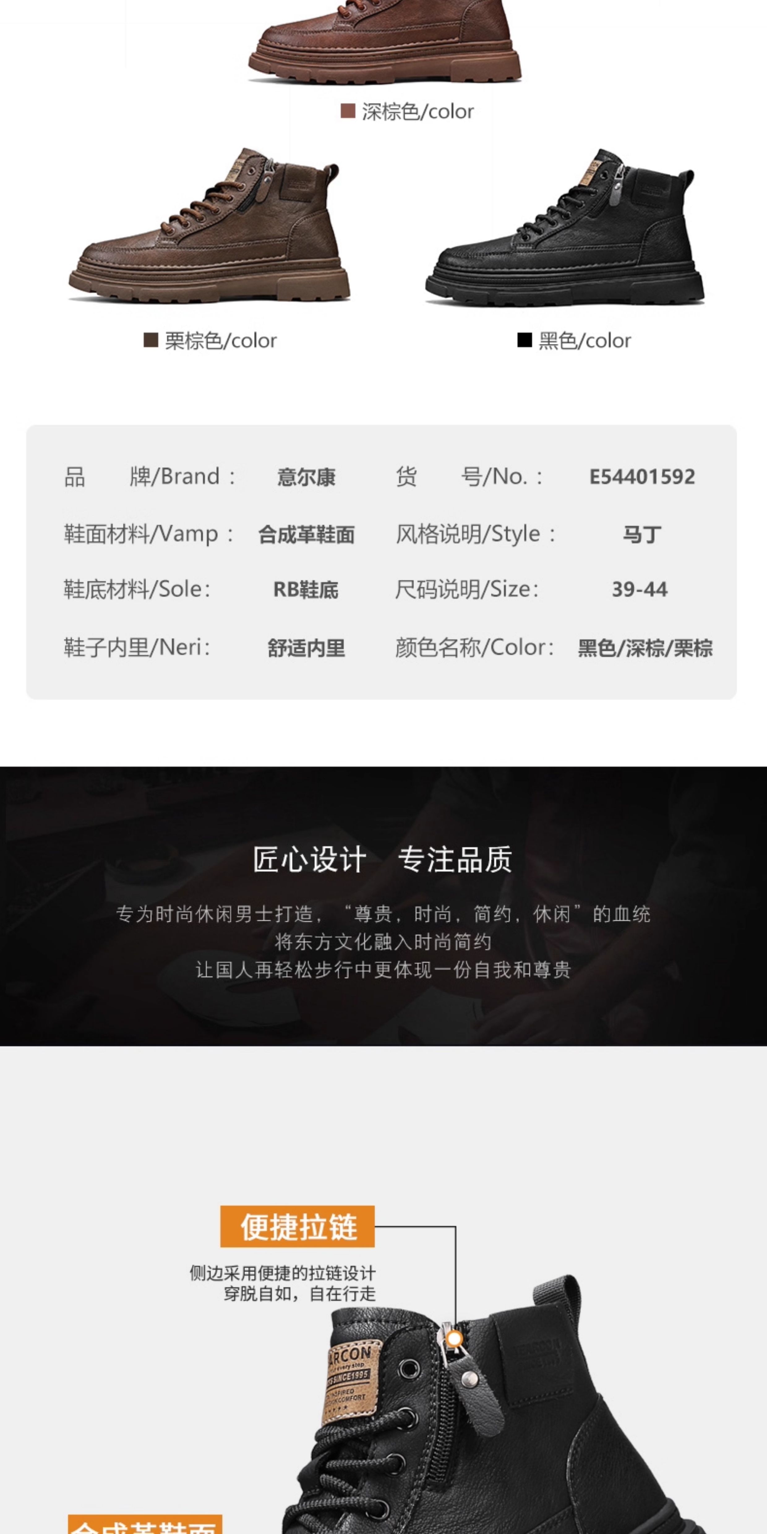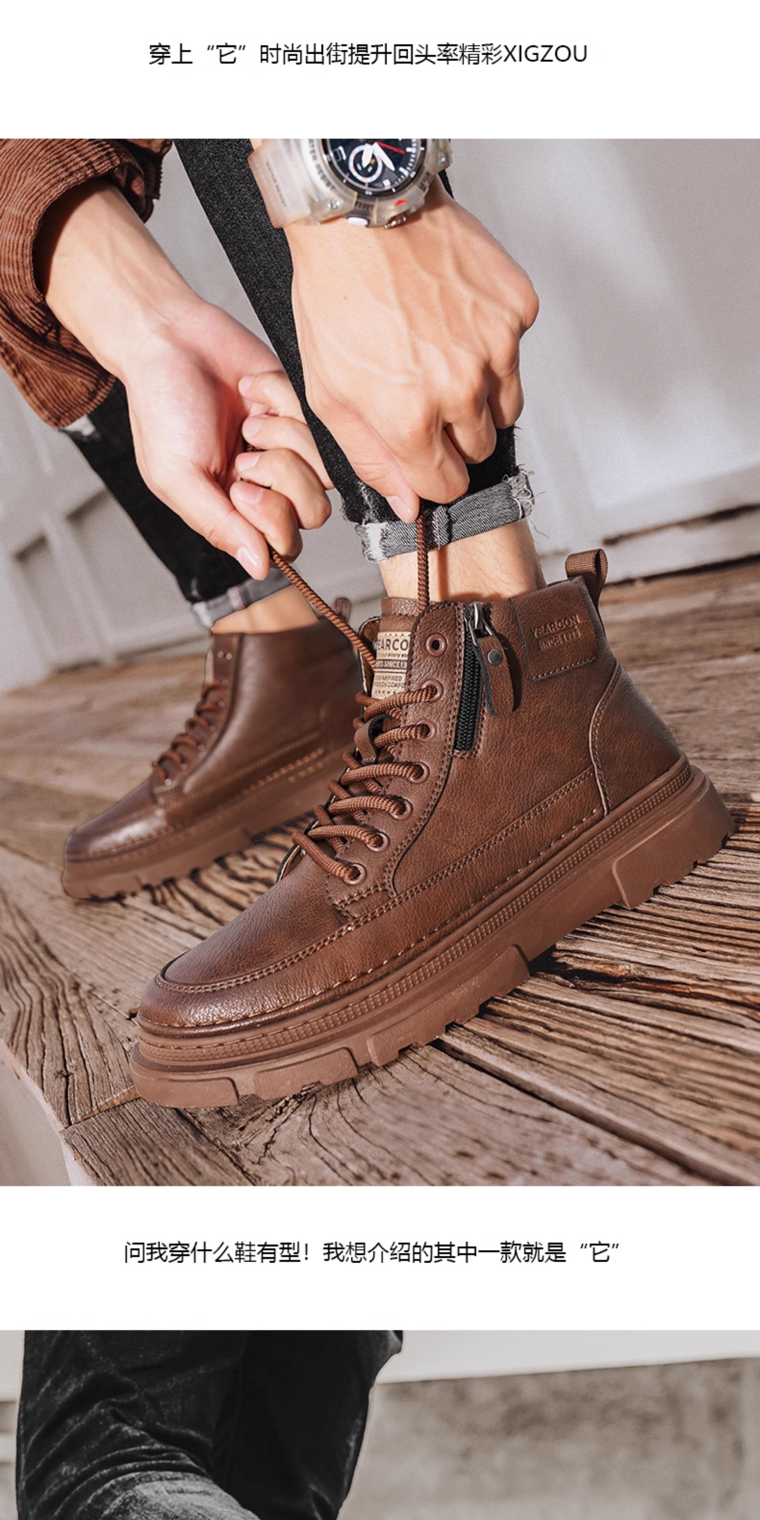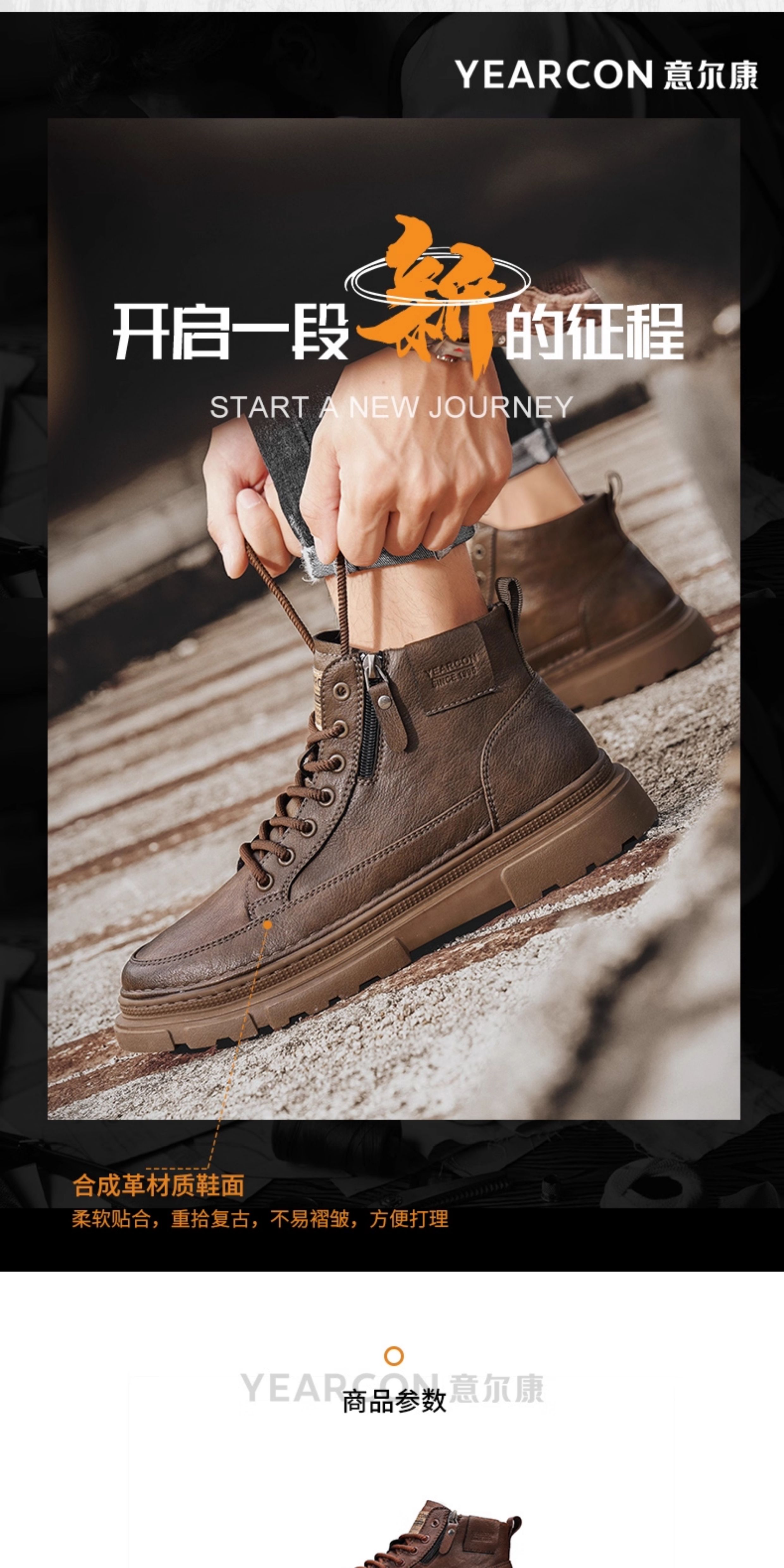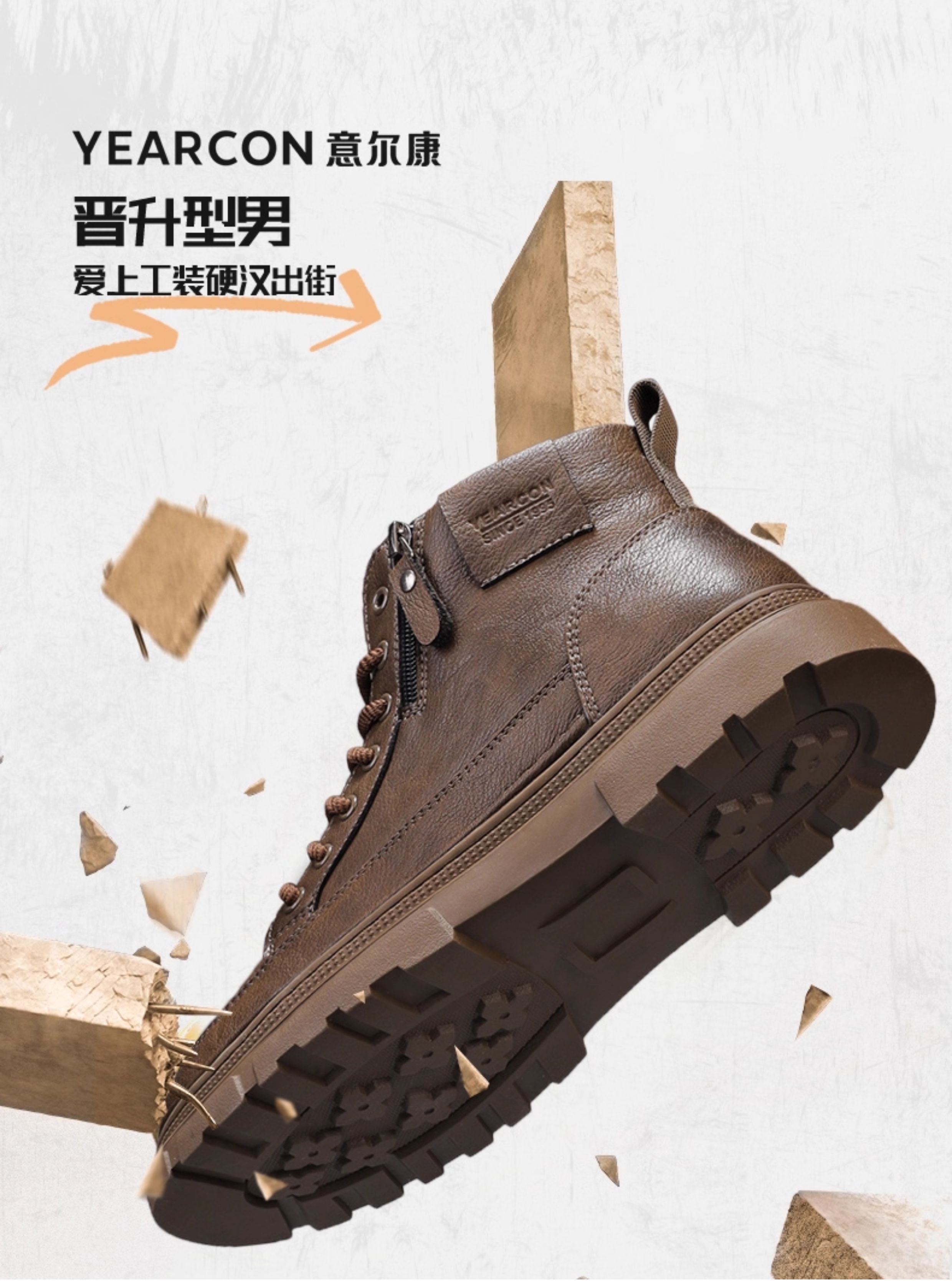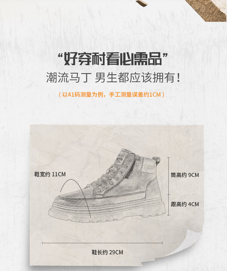 Yierkan Martin Boots Men's Shoes 2025 New Autumn and Winter Fleece-Lined Cotton Shoes High-Top British Style Men's Chelsea Boots