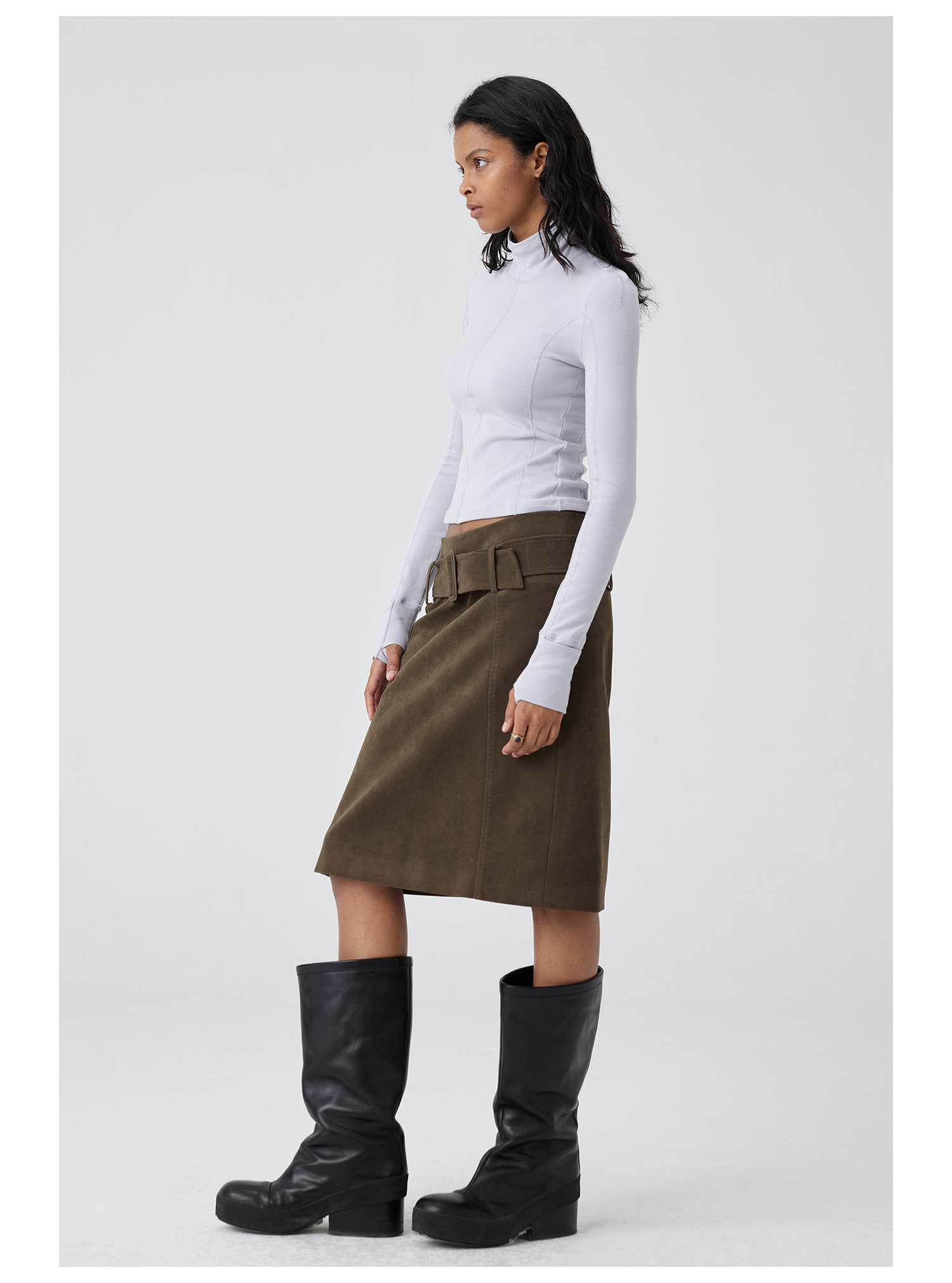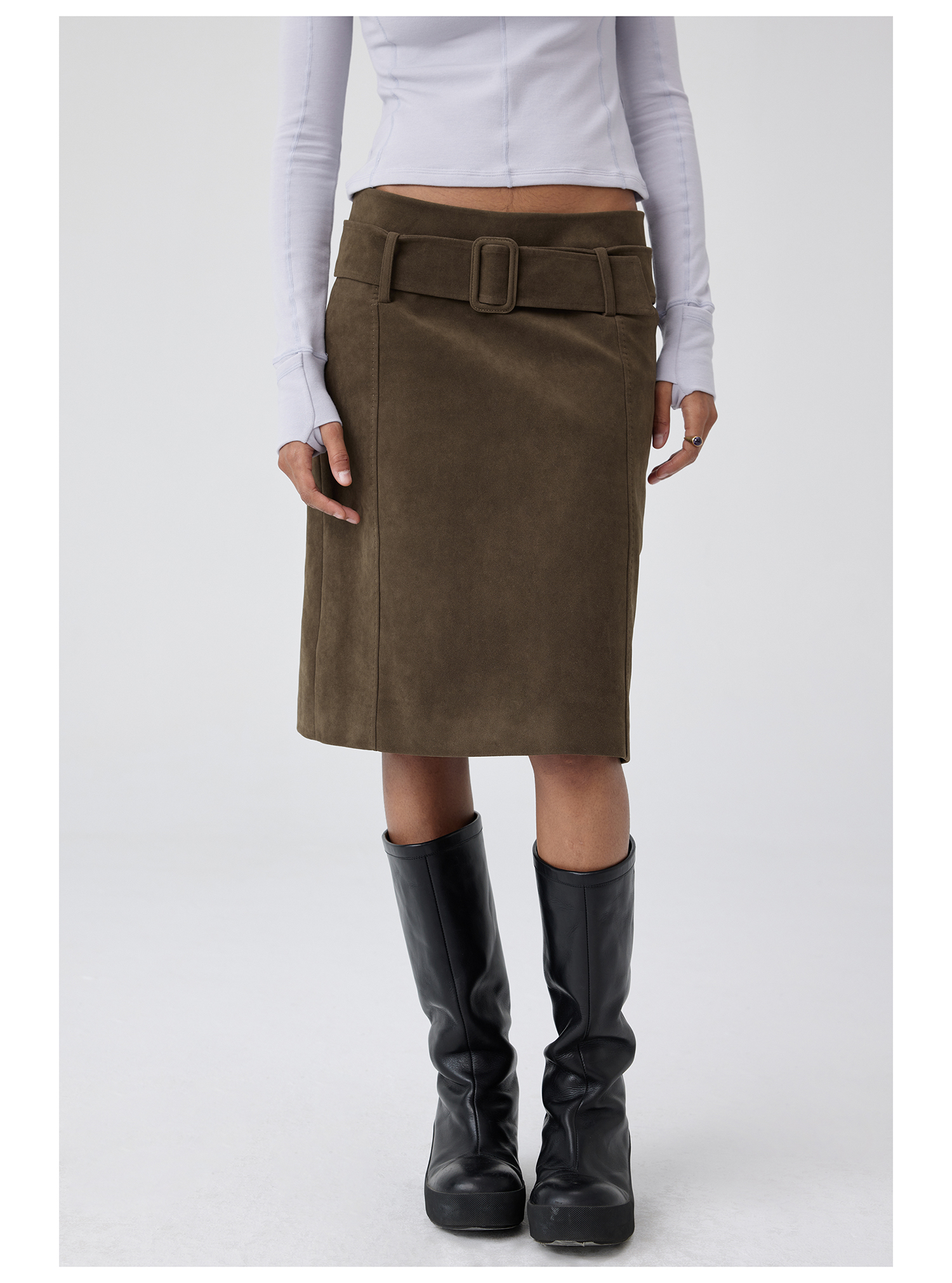 Simple Project*Suedette Skirt Suede Belt Skirt