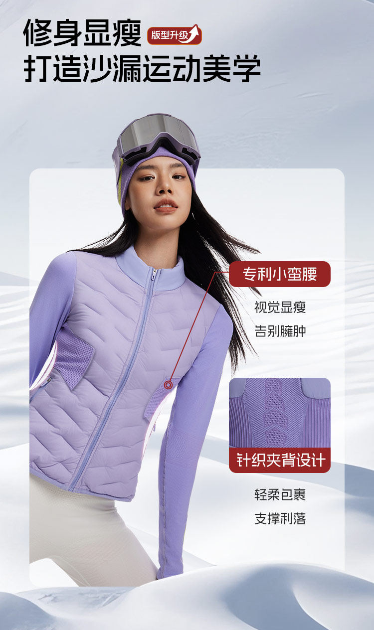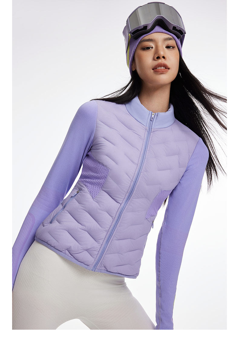 Playtop Goose down Warm Skiing and Golf Inner Layer Women's Slim Fit Hiking Lightweight Ribbed down Jacket Midlayer
