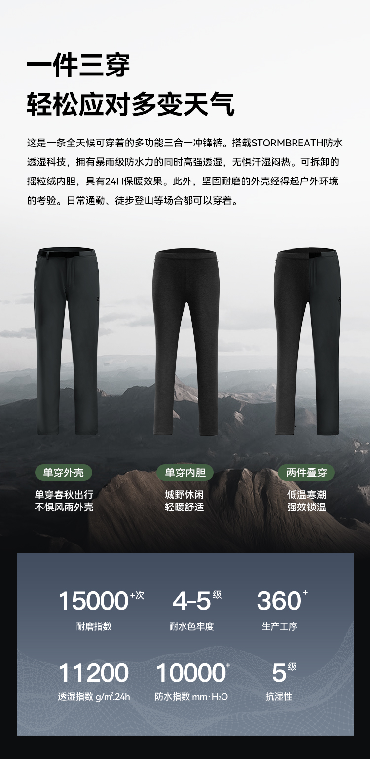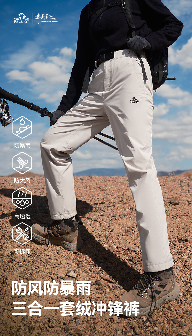 [Classic 2.0] Pelliot Outdoor Hiking Pants for Women 25 New Model Fleece-Lined 3-in-1 Rainproof Snow Mountain Pants for Men
