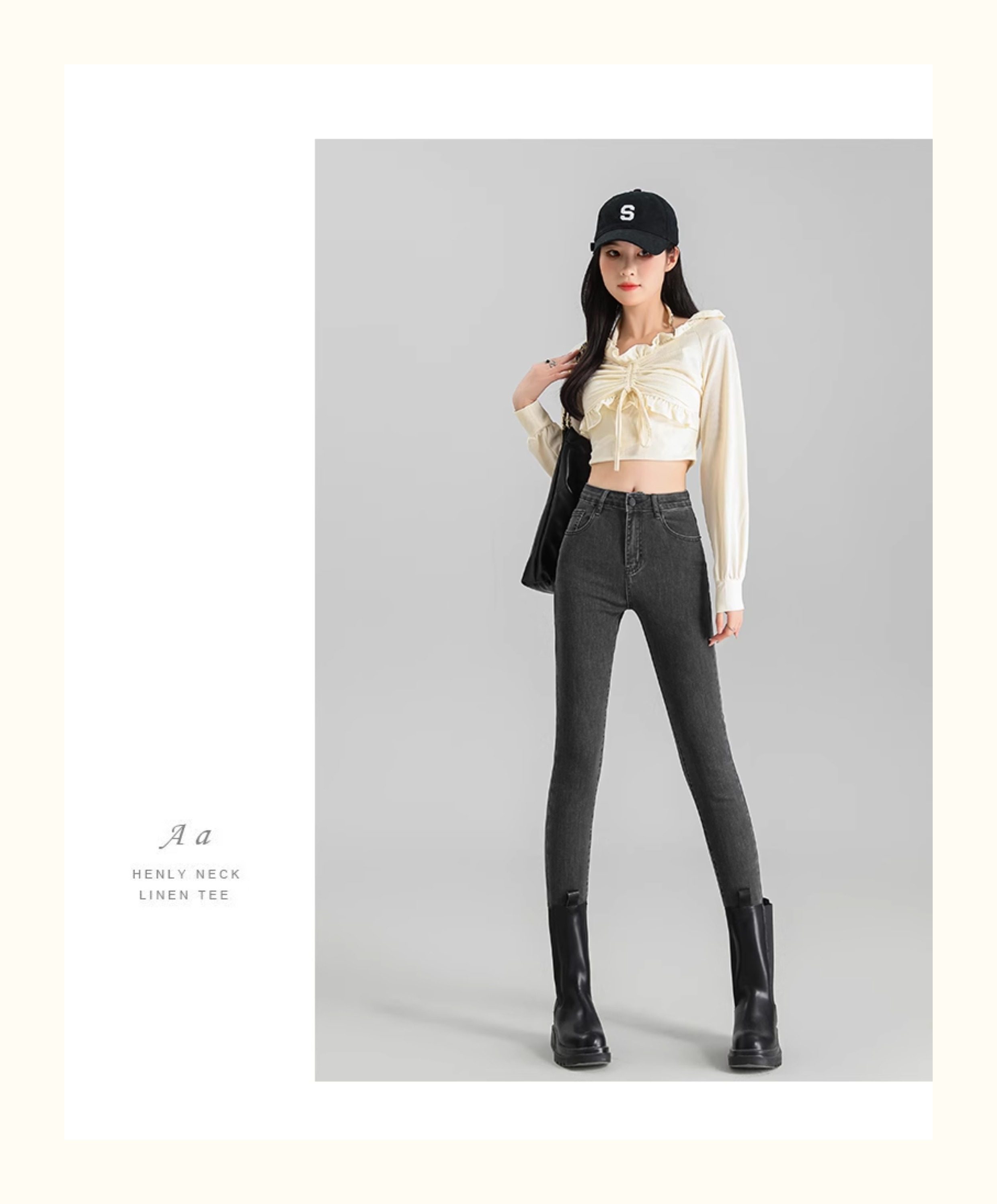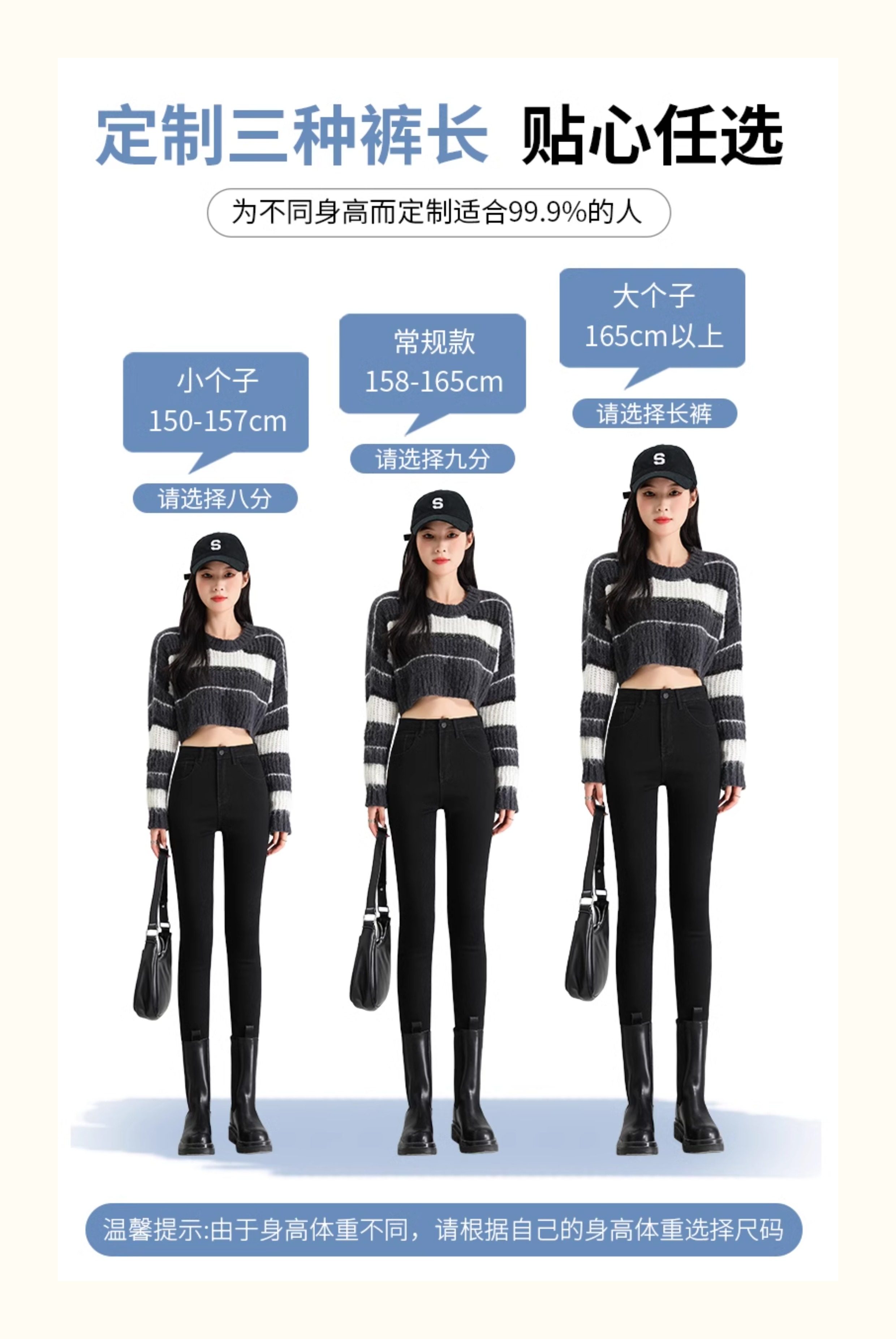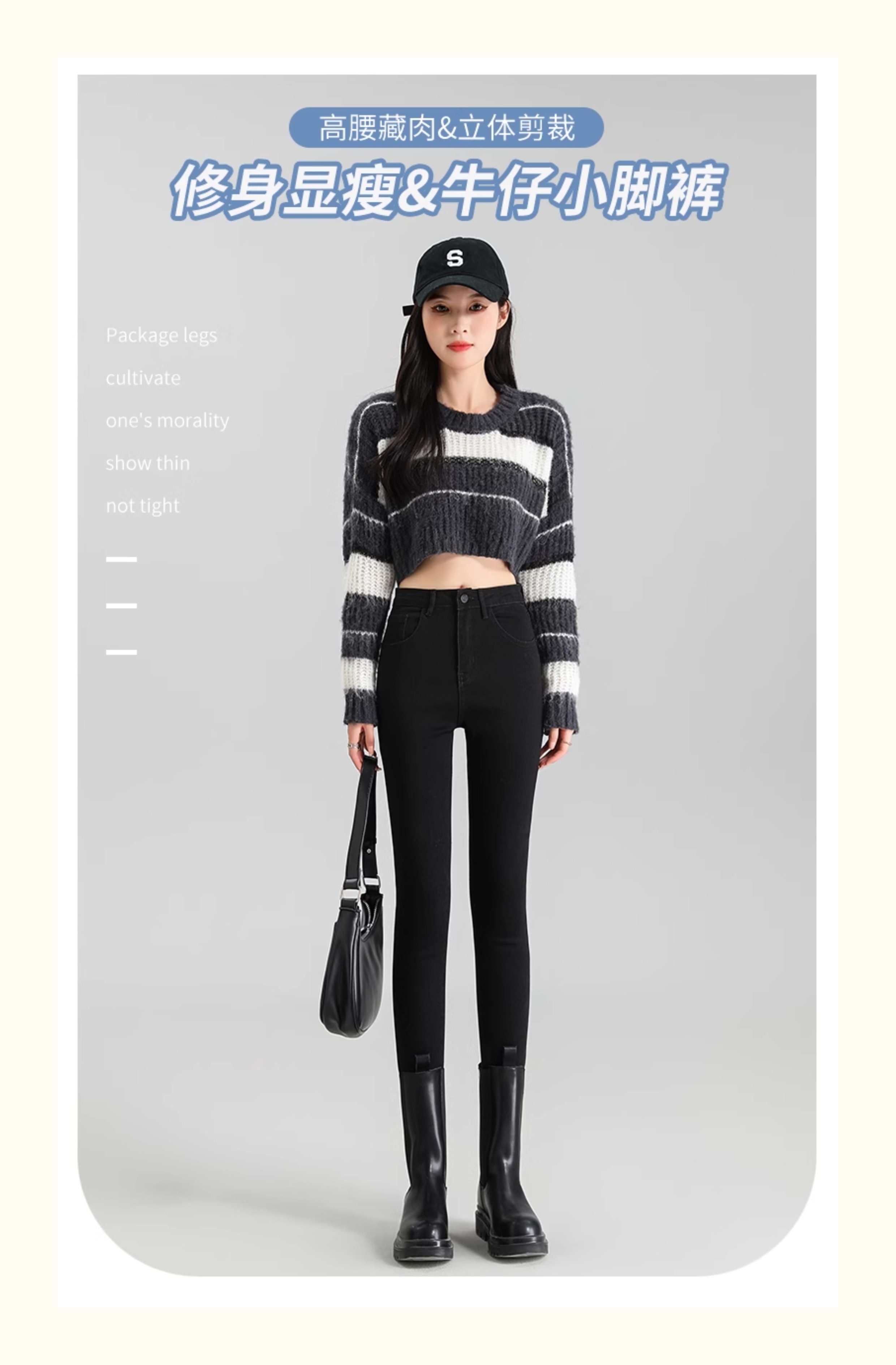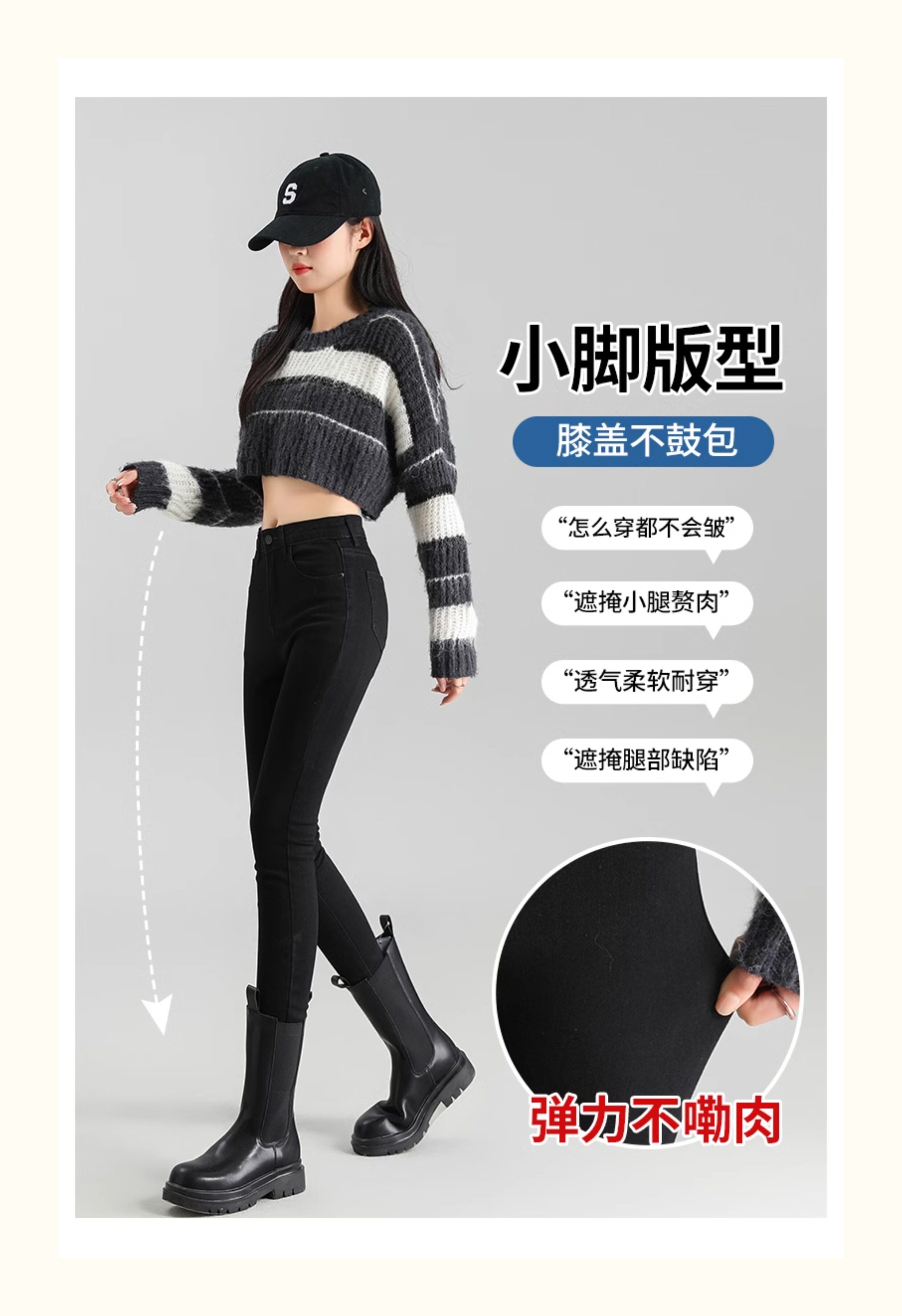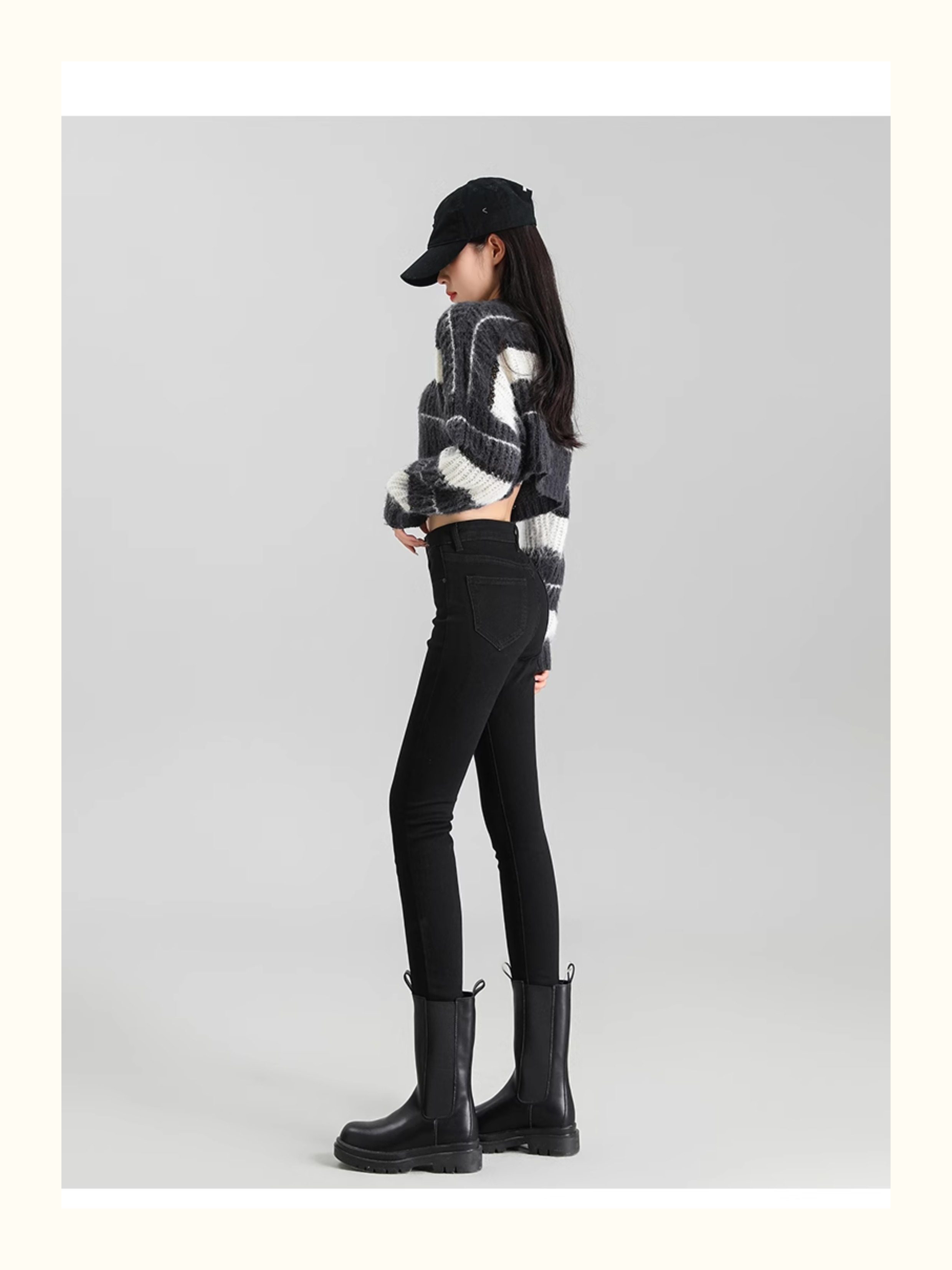 La Chapelle Black Skinny Jeans for Women, Autumn and Winter 2025 New High-Waisted Slim Fit Fleece-Lined Pencil Pants