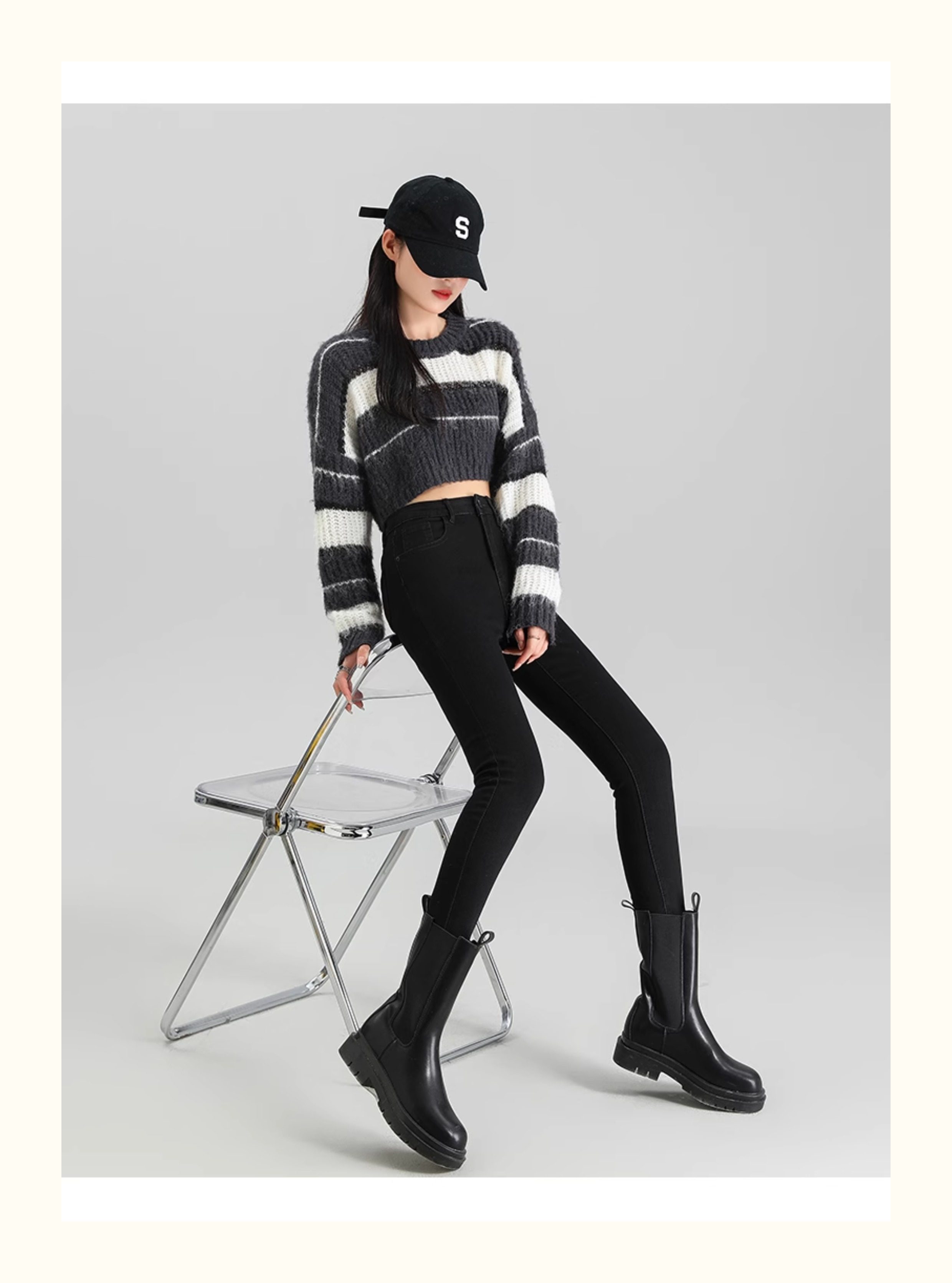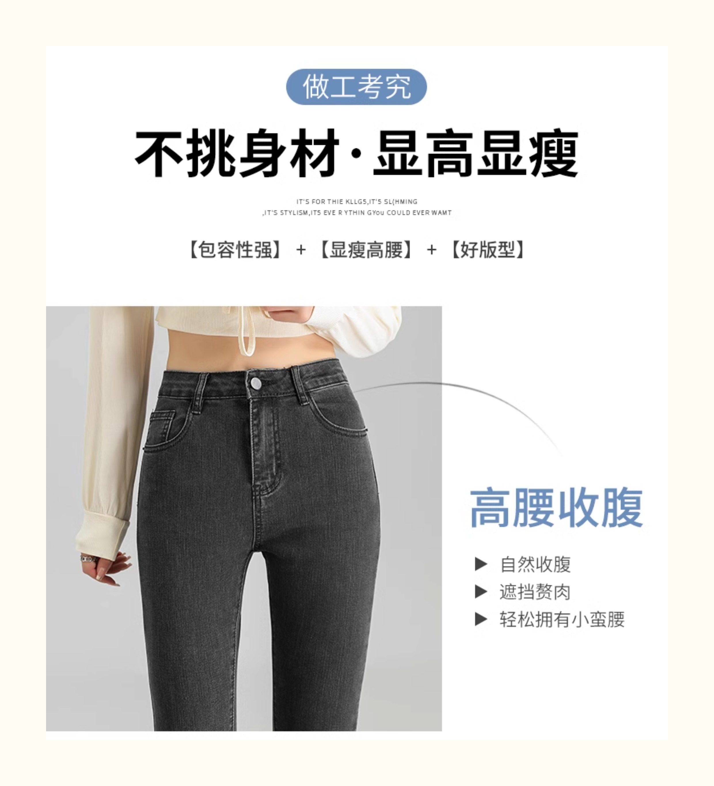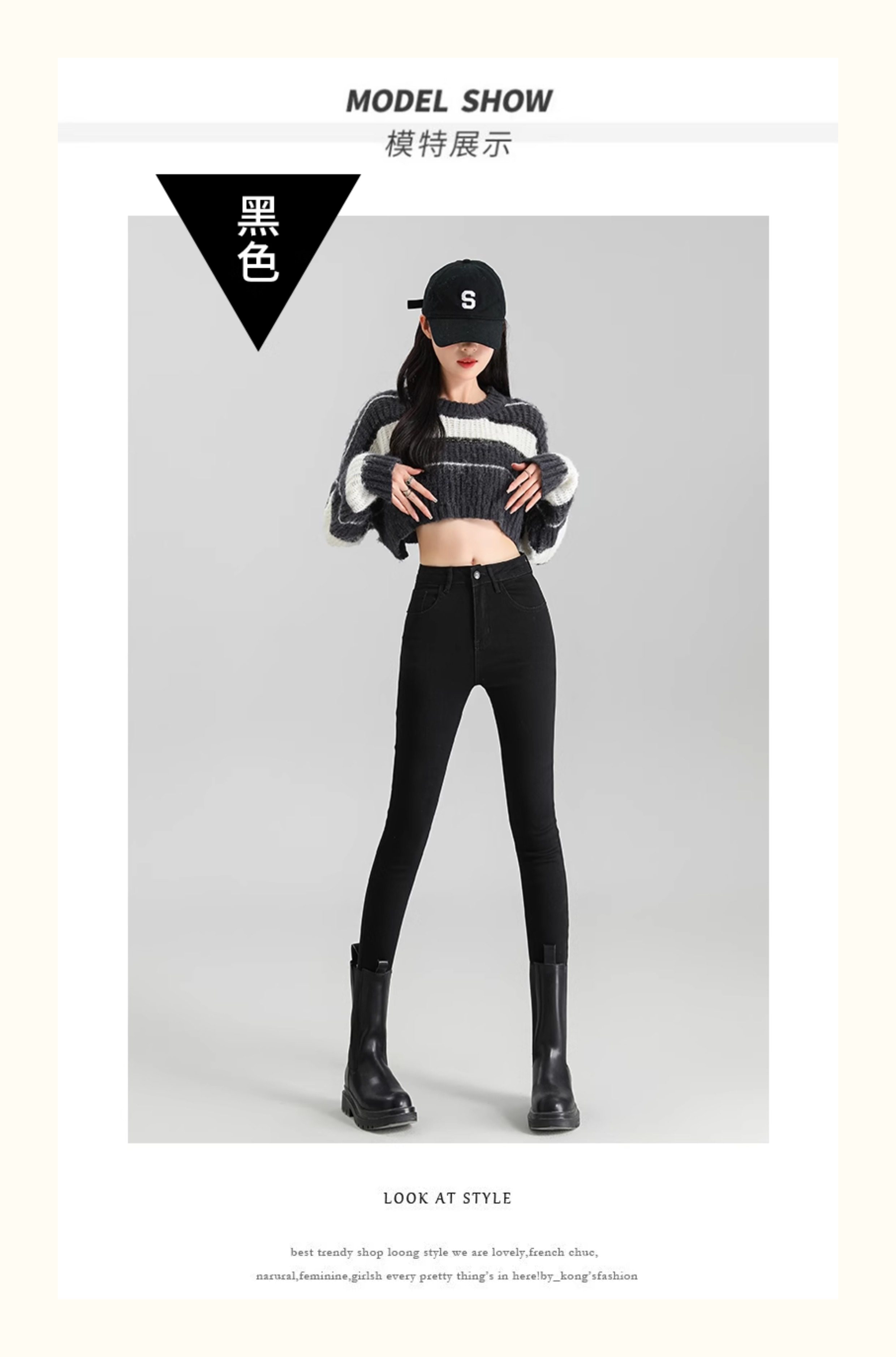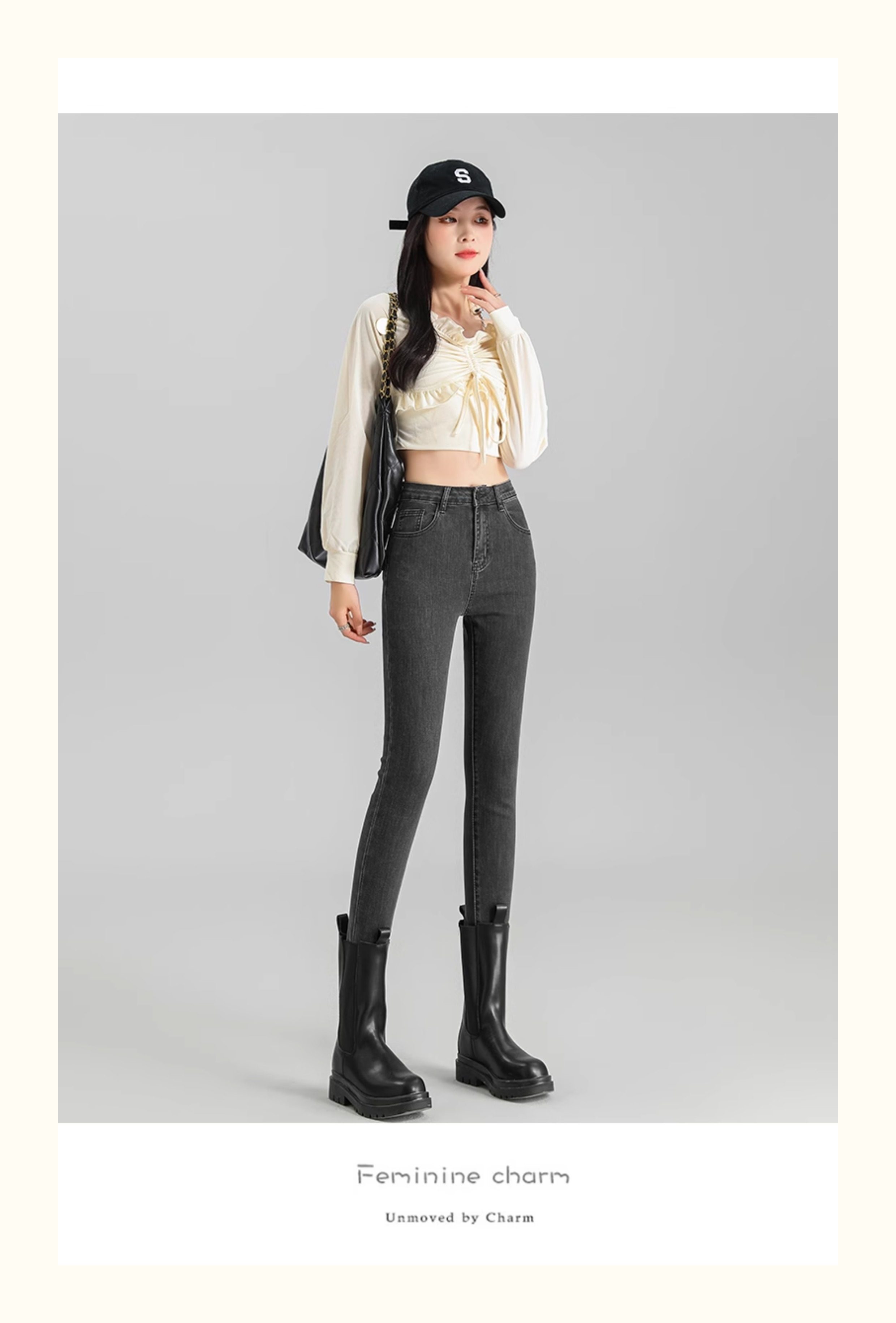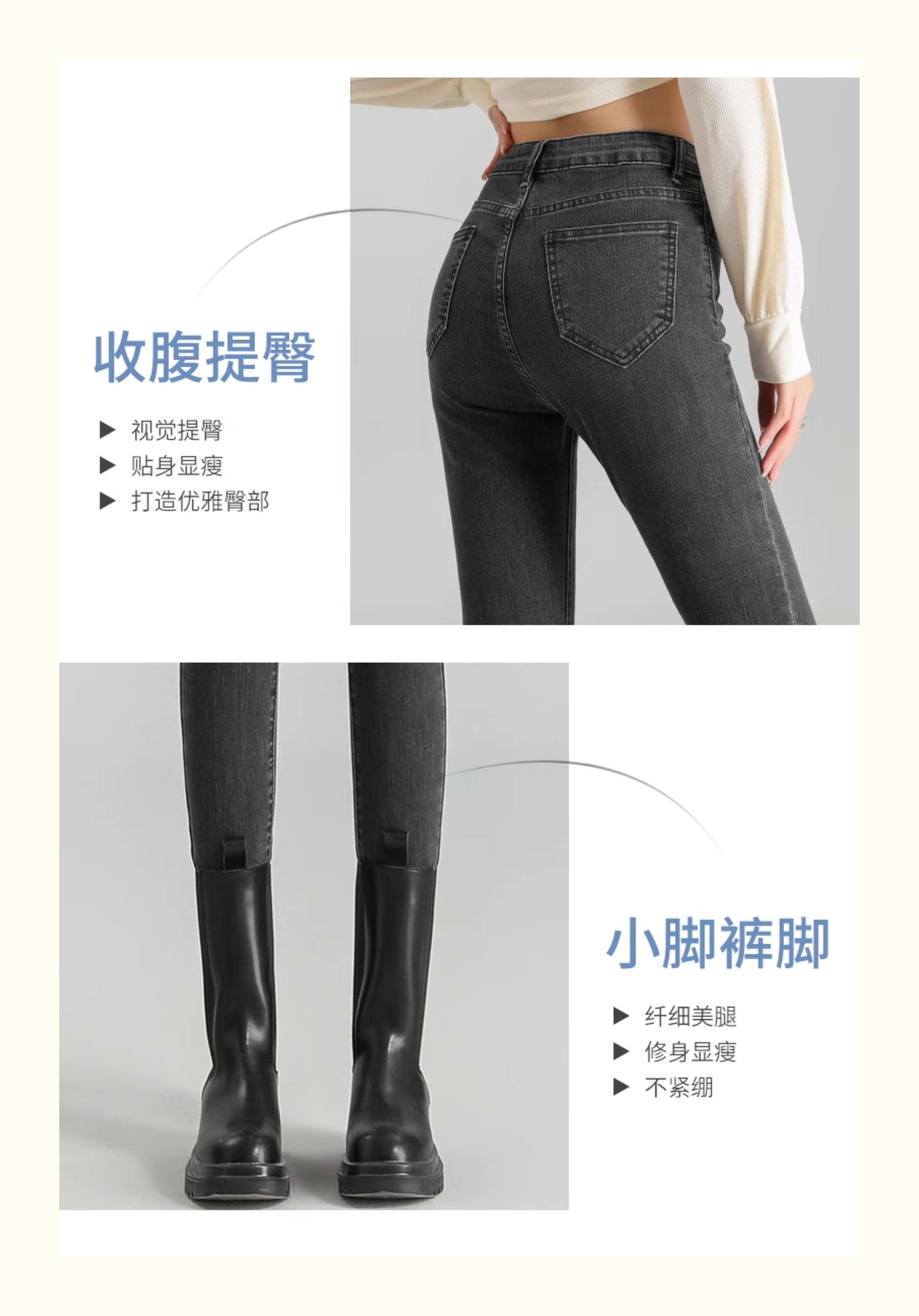 La Chapelle Black Skinny Jeans for Women, Autumn and Winter 2025 New High-Waisted Slim Fit Fleece-Lined Pencil Pants