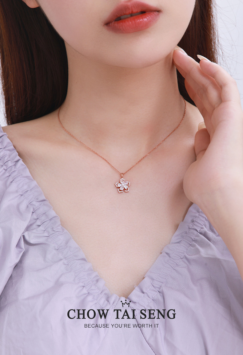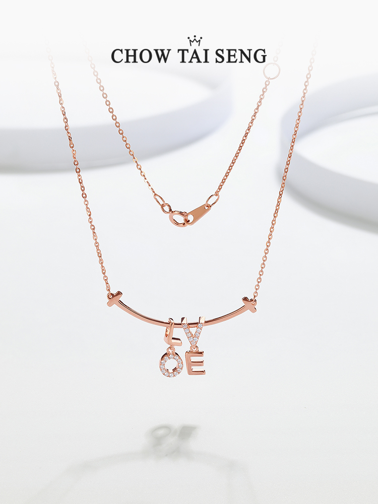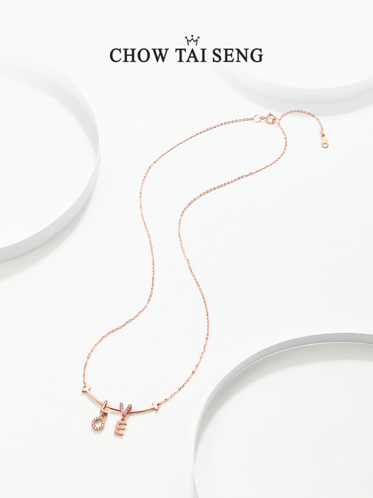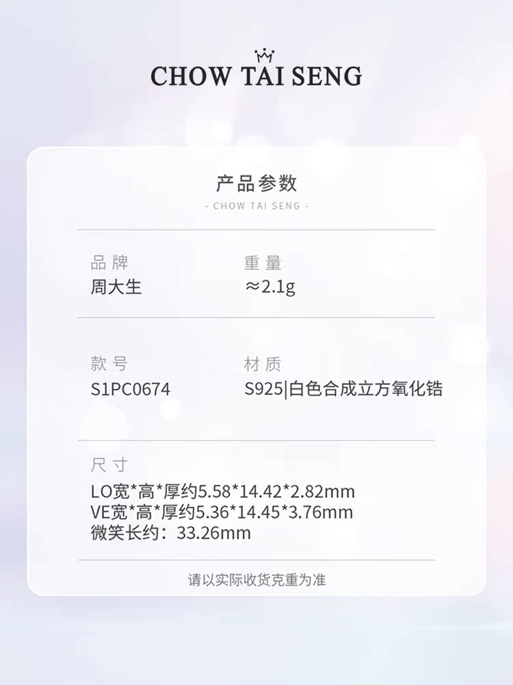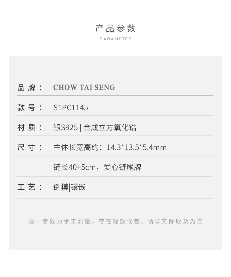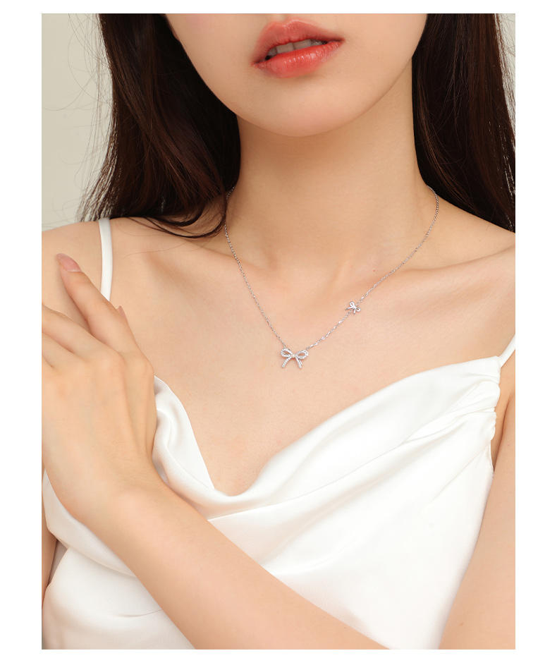 Chow Tai Sang S925 Silver Bowknot Pearl Necklace, Light Luxury and High-End Clavicle Chain, Birthday and Christmas Gift for Girlfriend