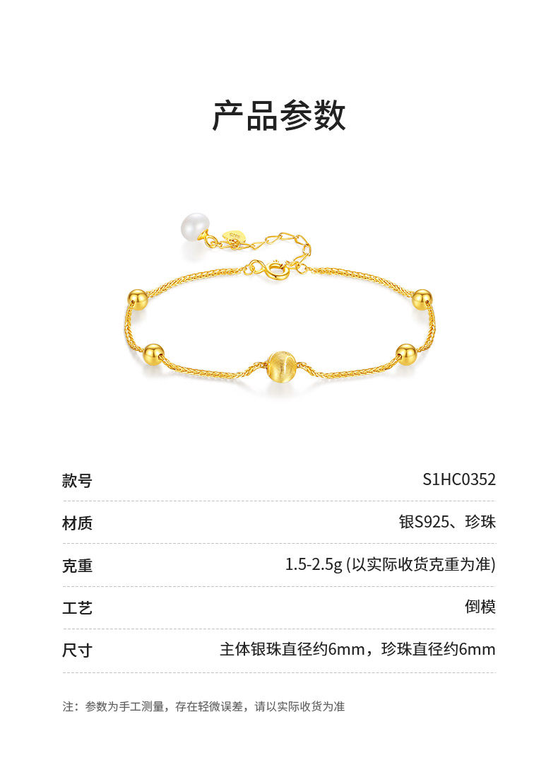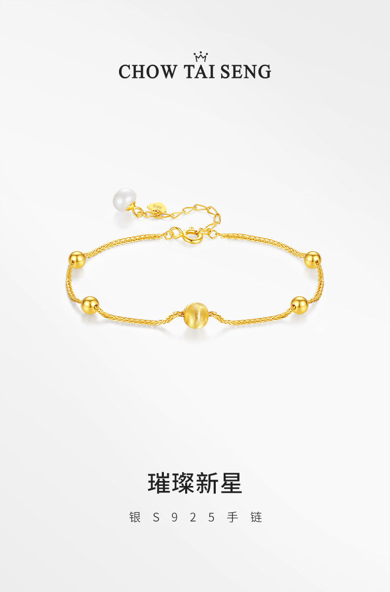 Chow Tai Sang S925 Silver Ice Cream Necklace, Dazzling Star Bracelet, High-End Clavicle Chain, New Year's Gift for Girlfriend