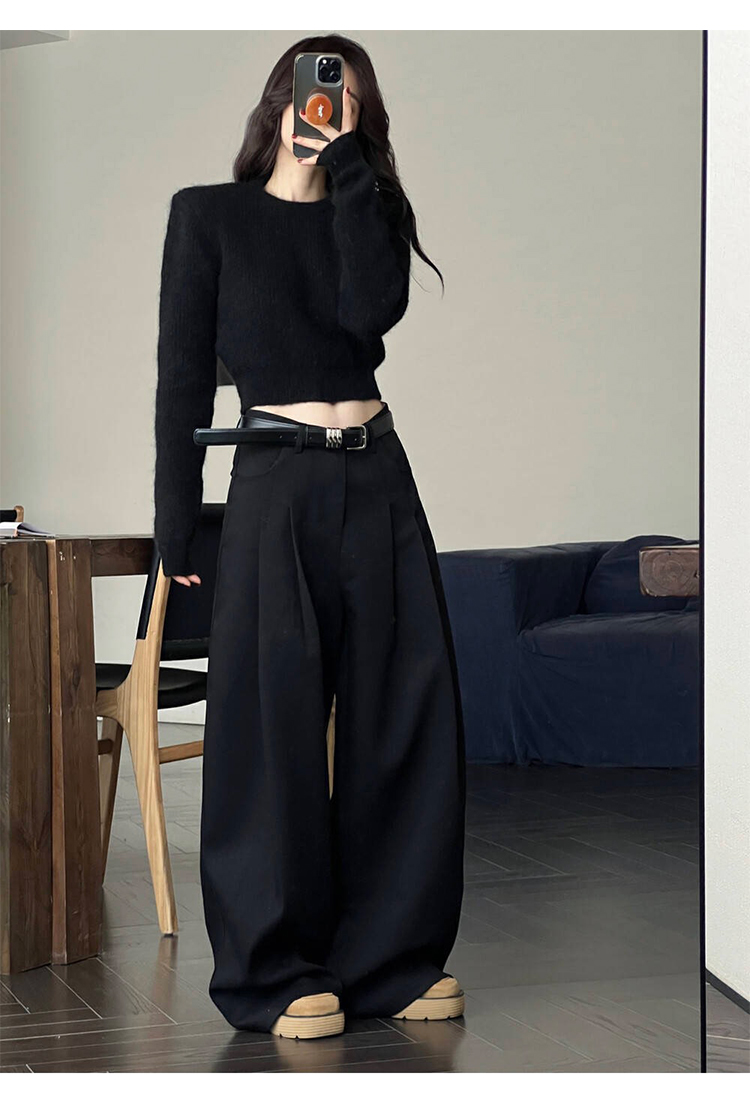 Wide-Leg Pants for Women 2025 New Autumn and Winter High-Waisted Loose Floor-Length Pants High-Quality Tencel Wool Thickened Suit Pants