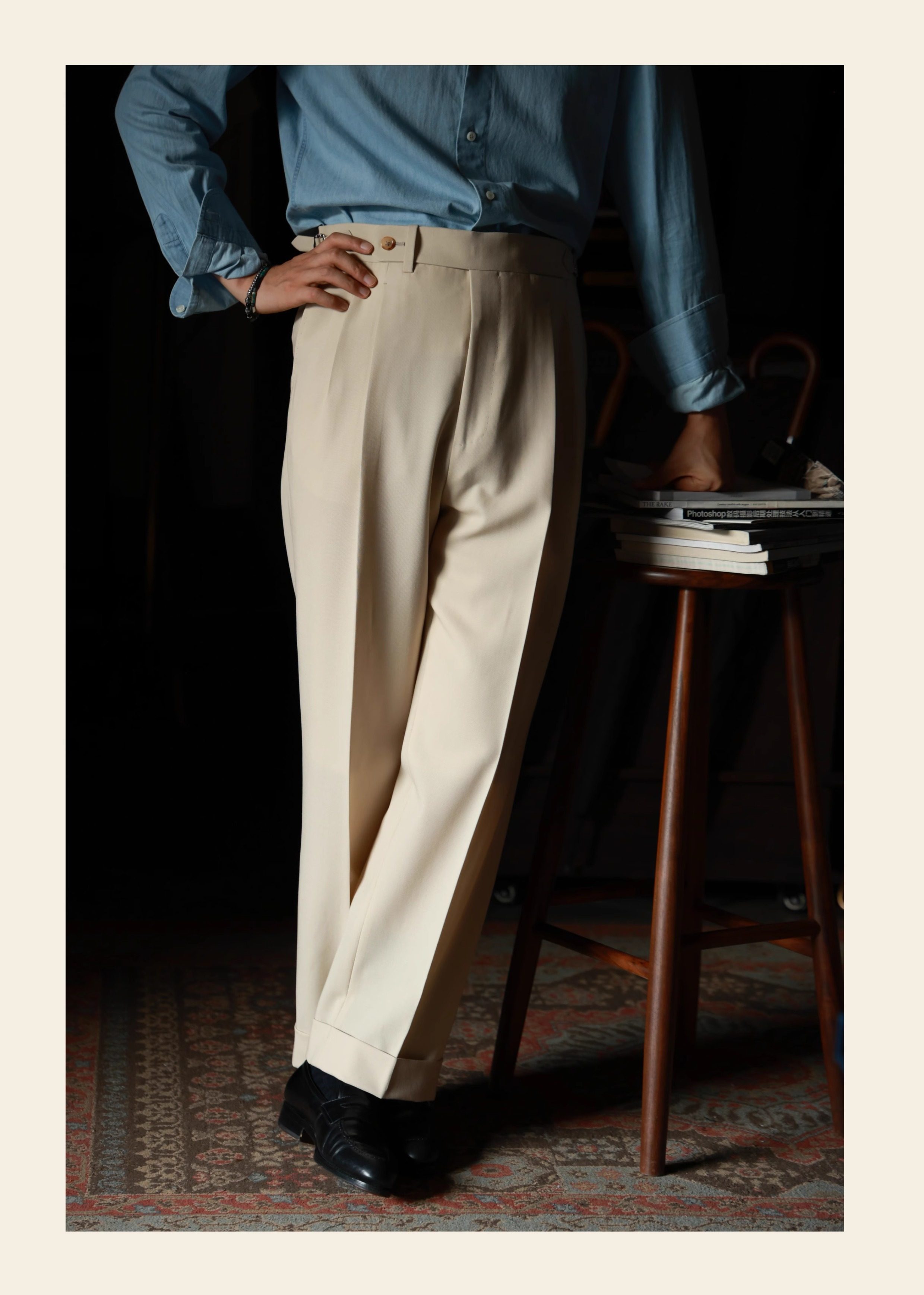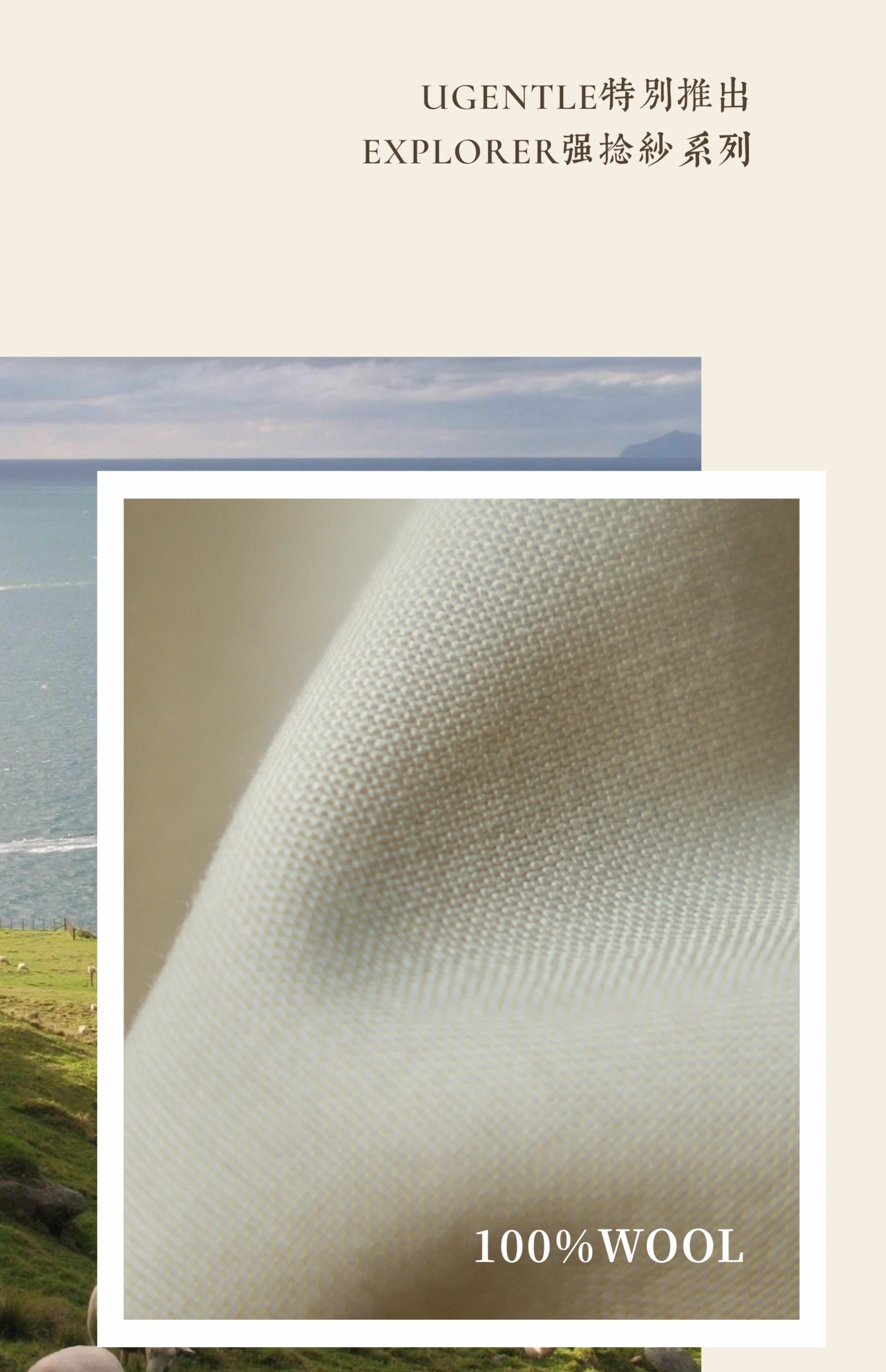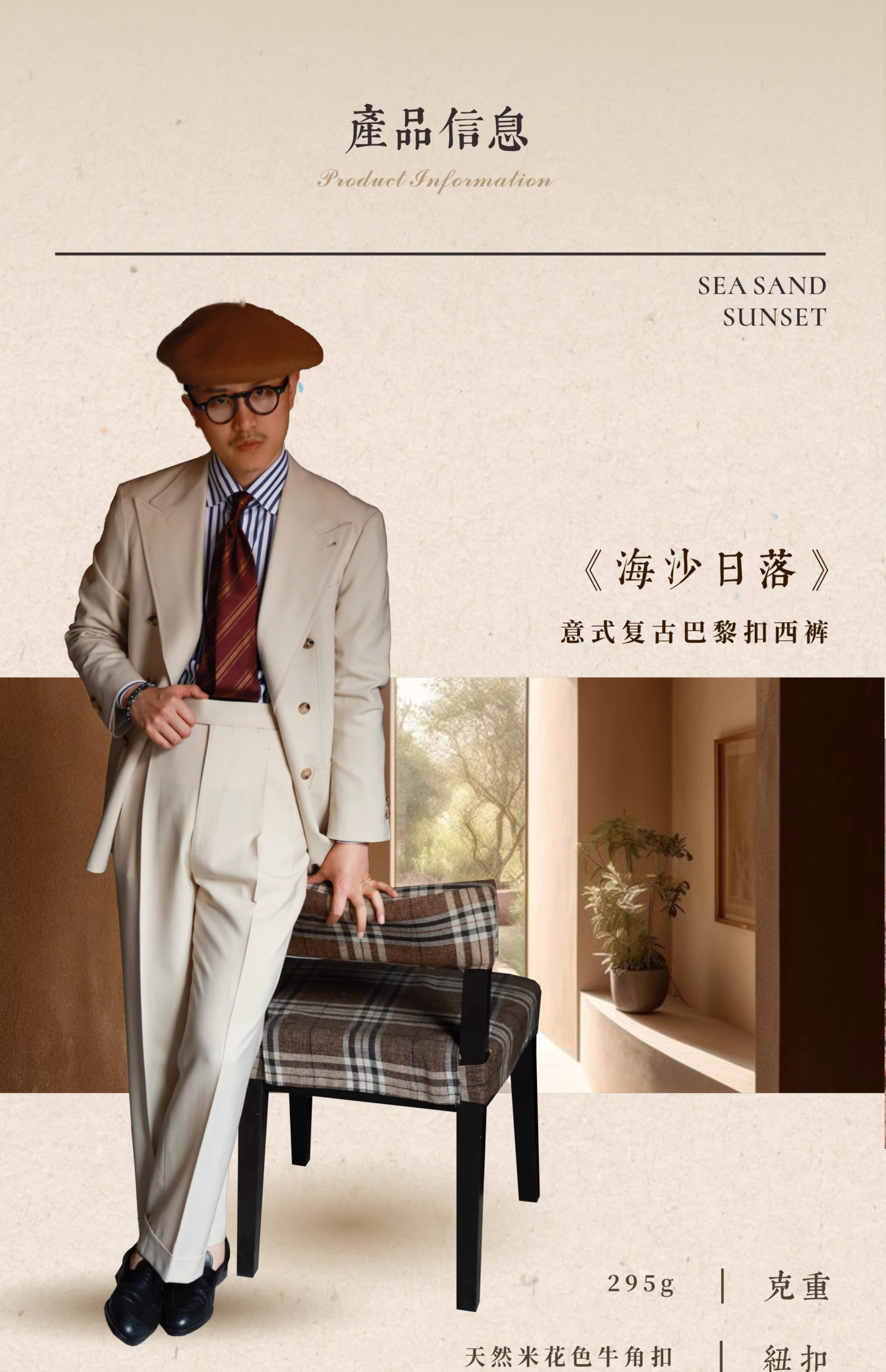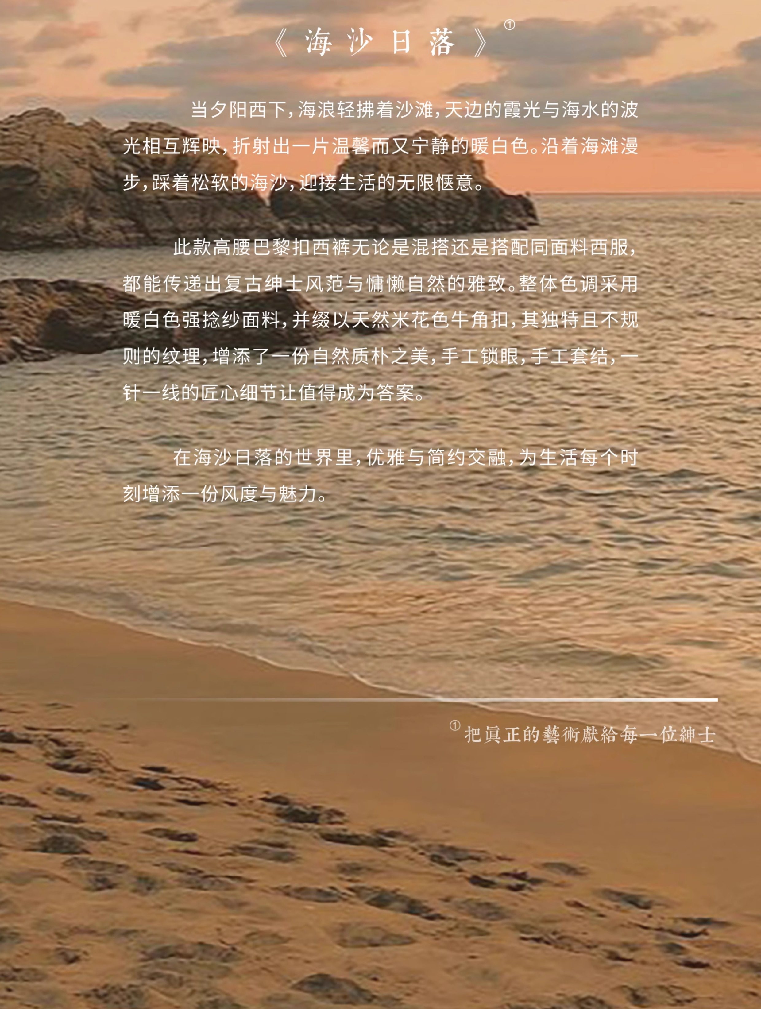 Ugentle Men's Clothing Explorer Series All Wool Italian Retro Style Handmade Trousers with a Sunset over the Sea Design