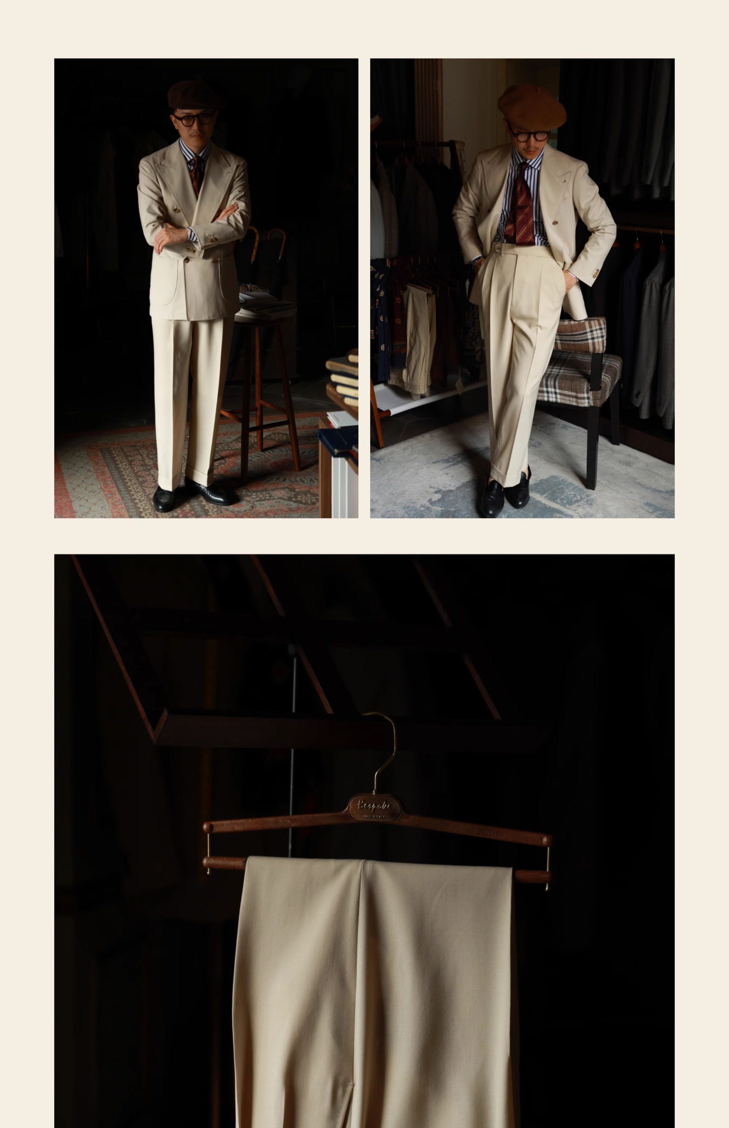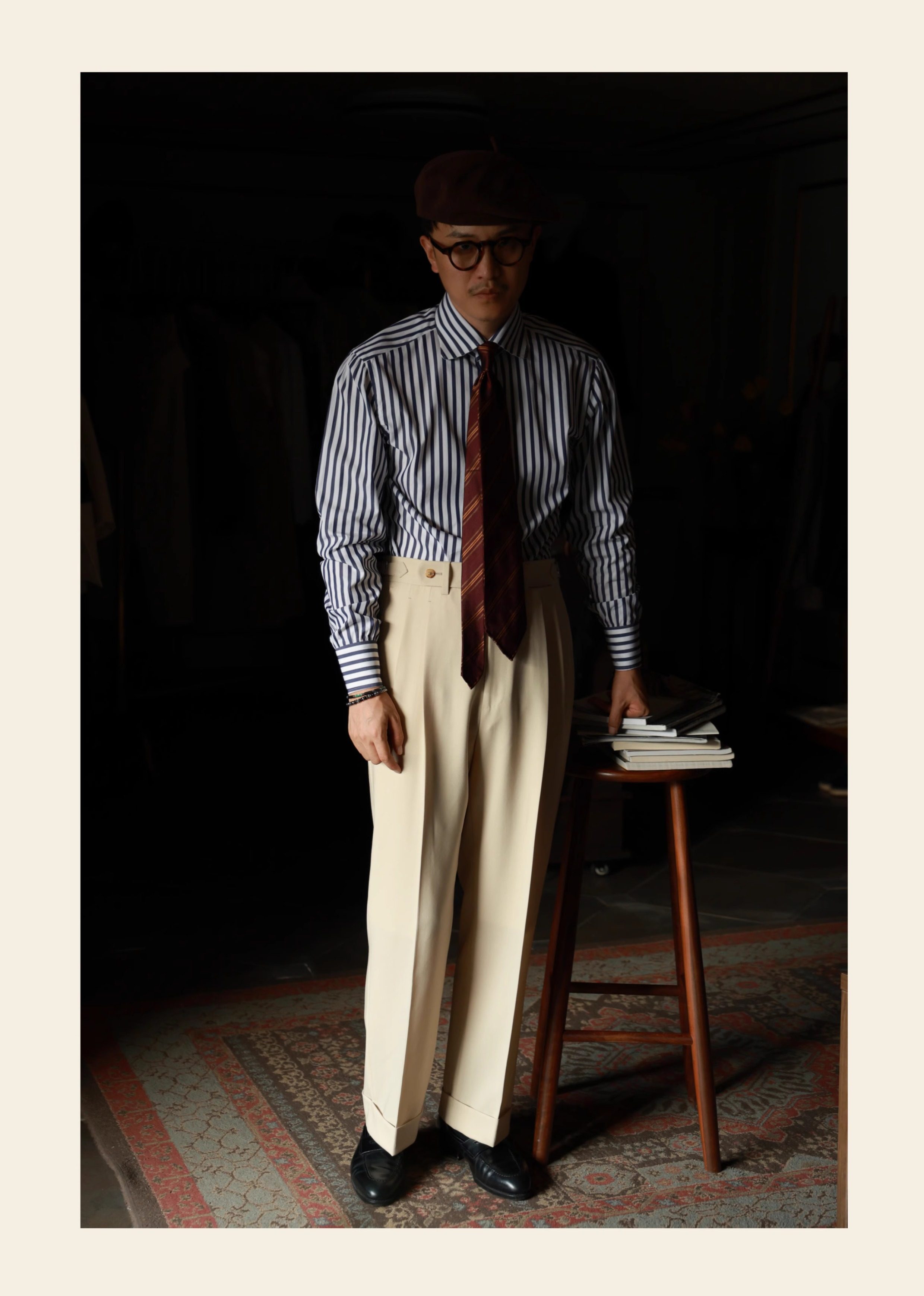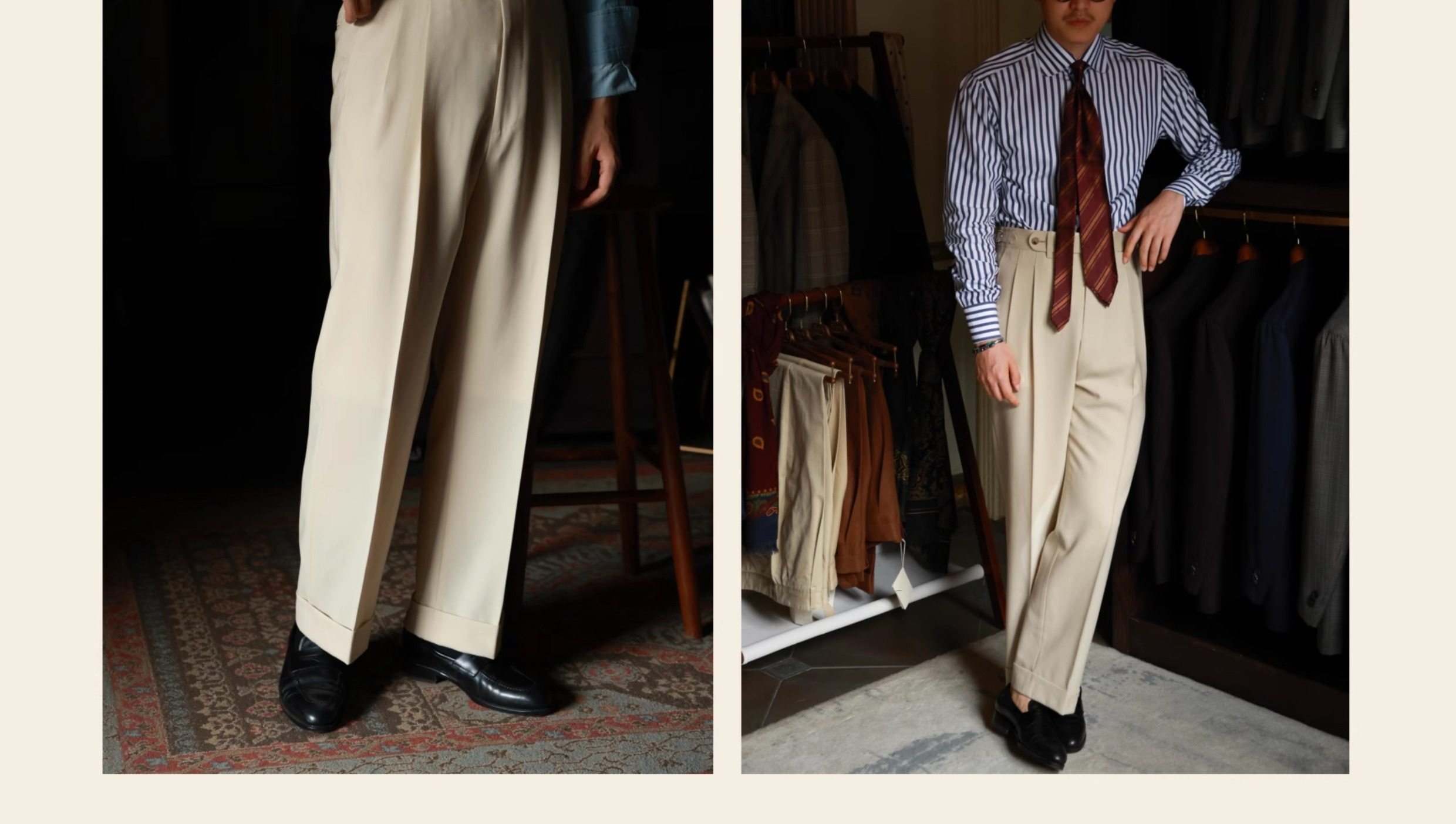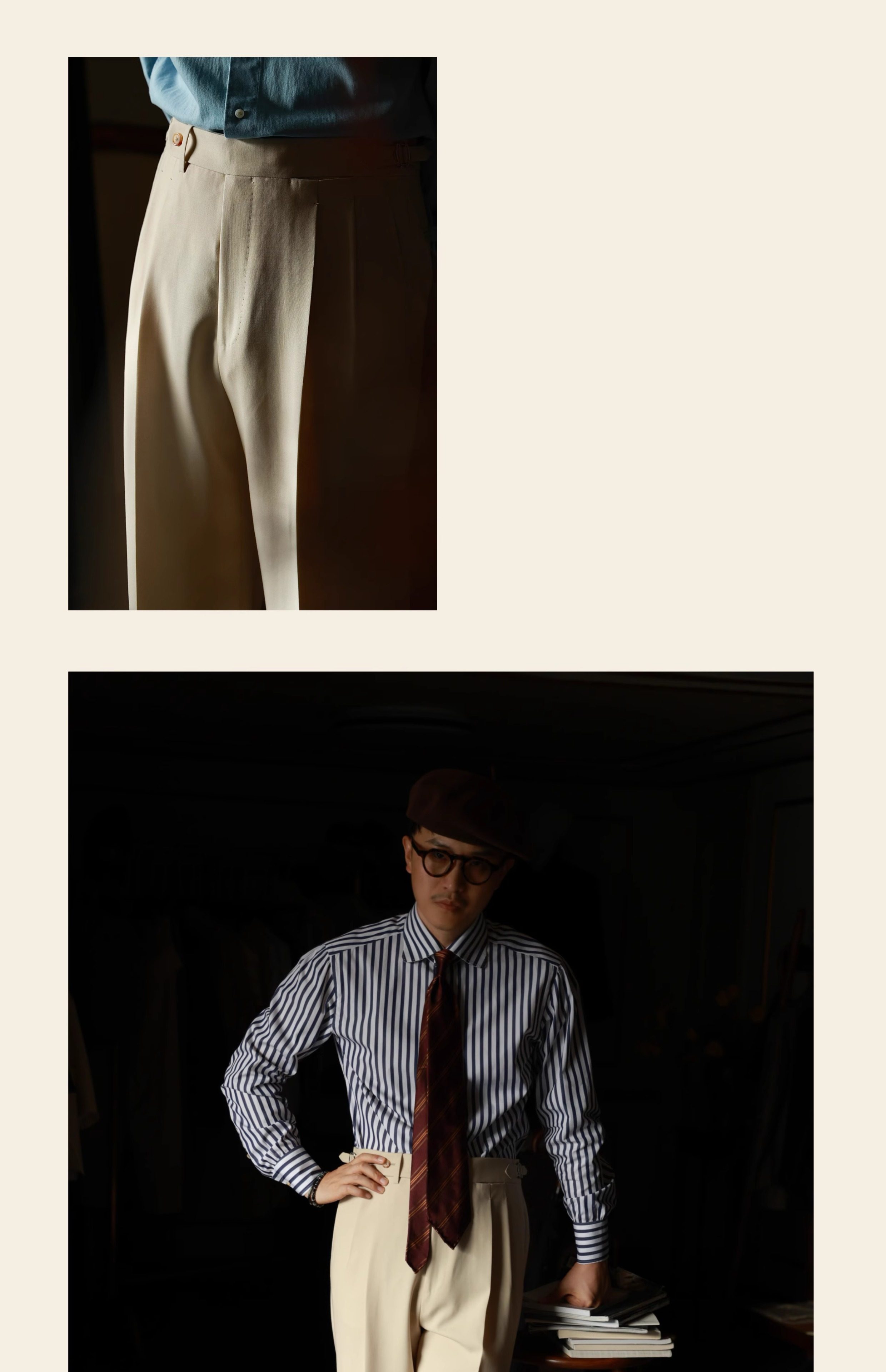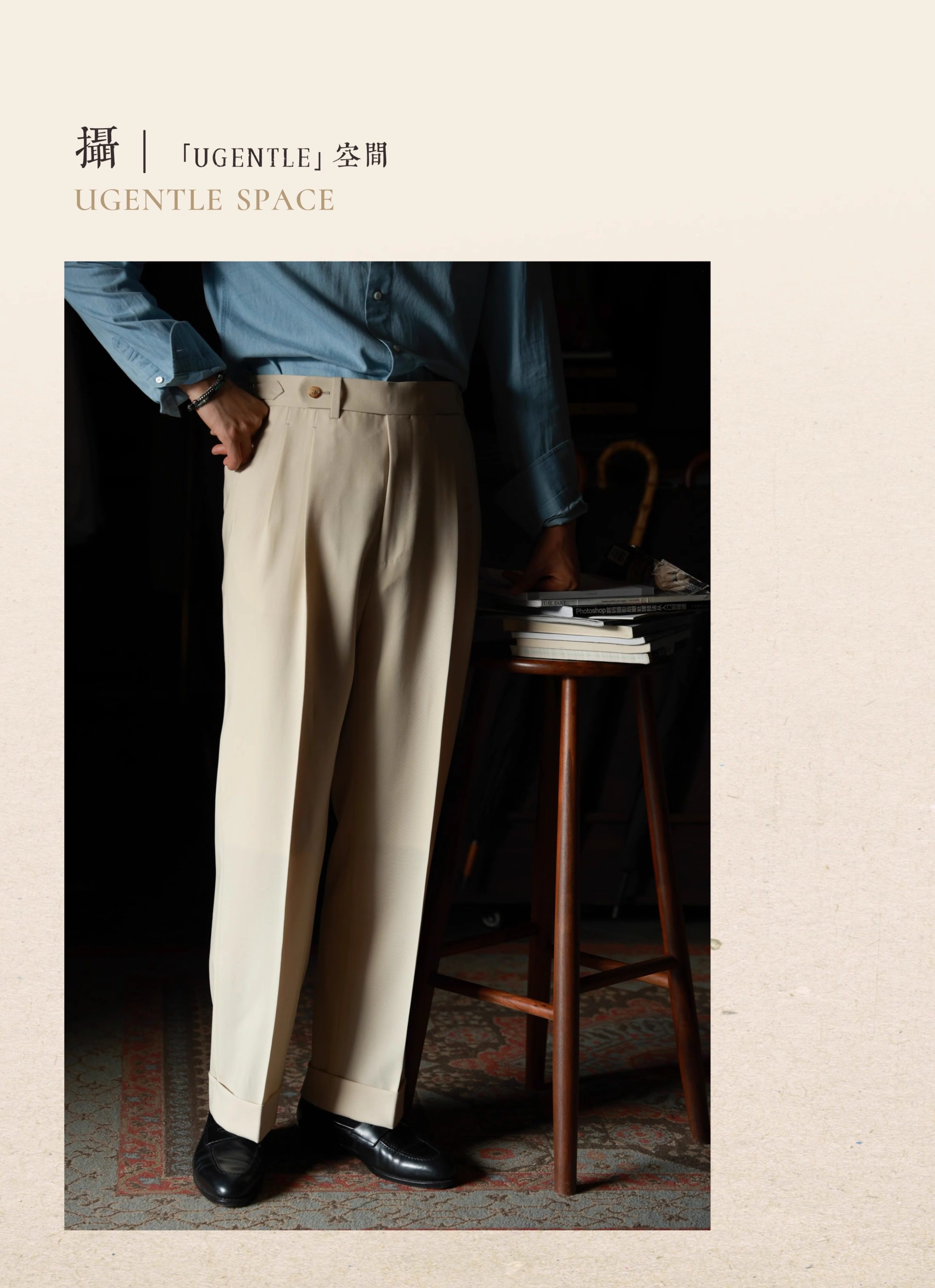 Ugentle Men's Clothing Explorer Series All Wool Italian Retro Style Handmade Trousers with a Sunset over the Sea Design