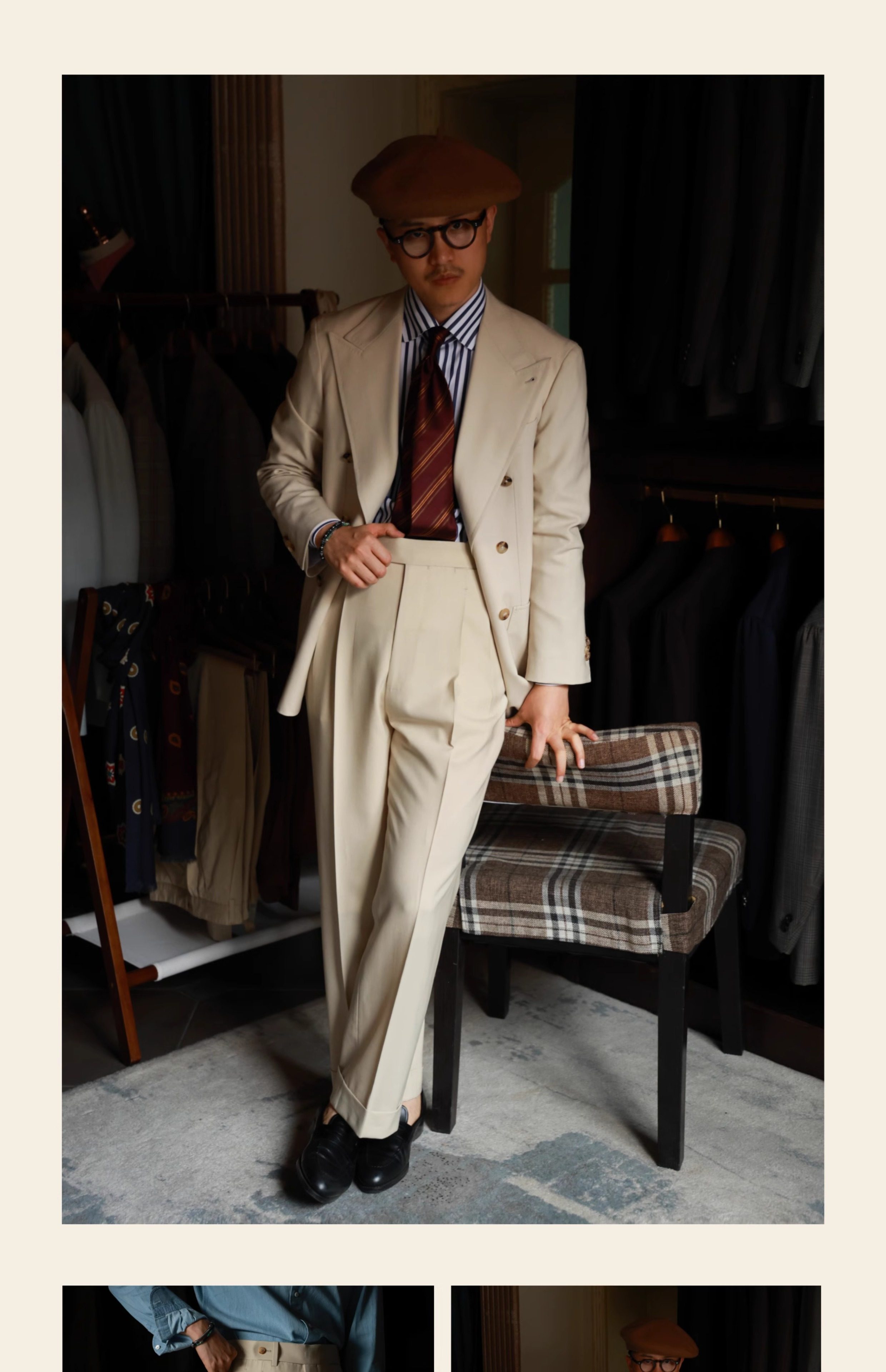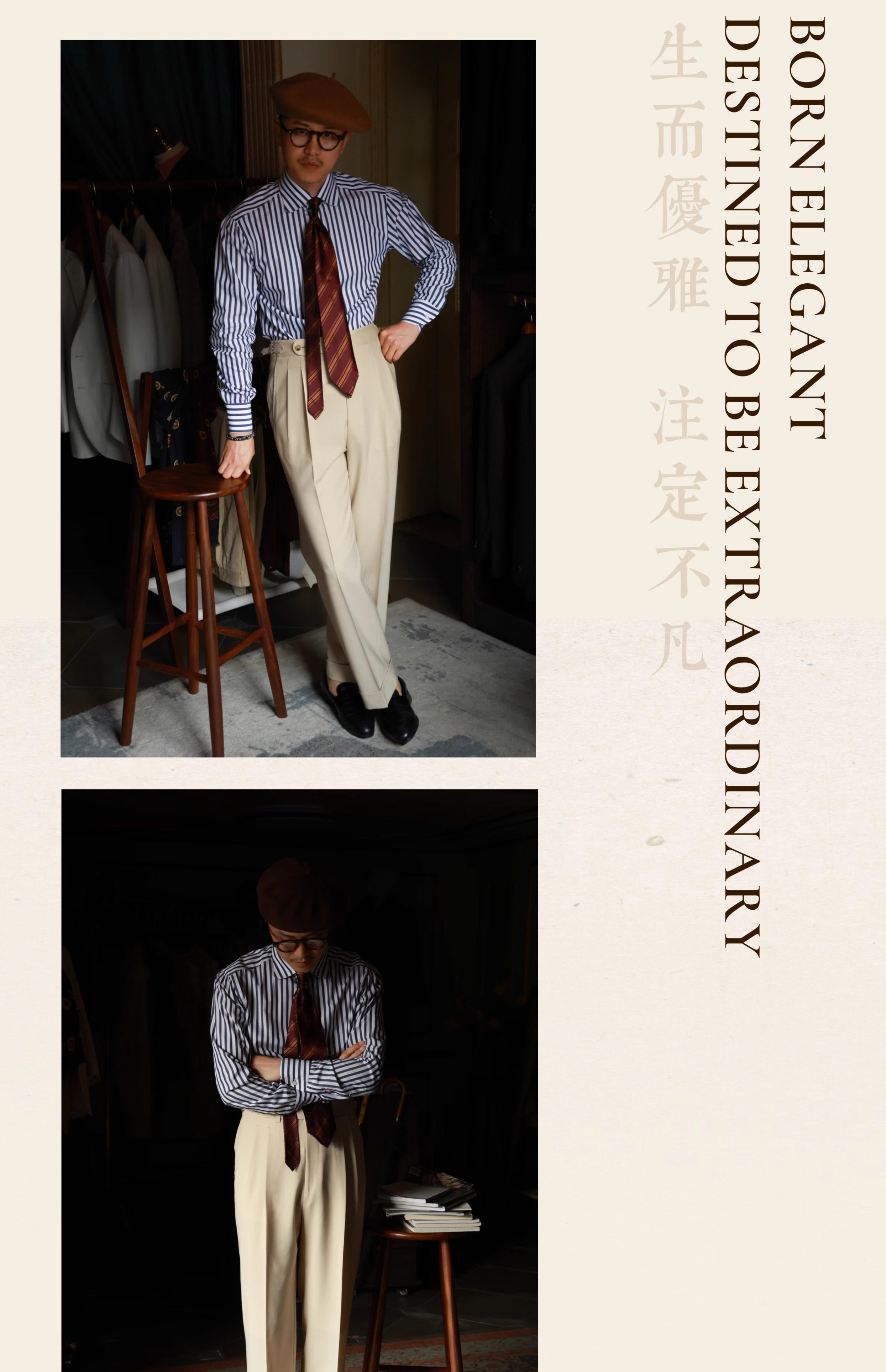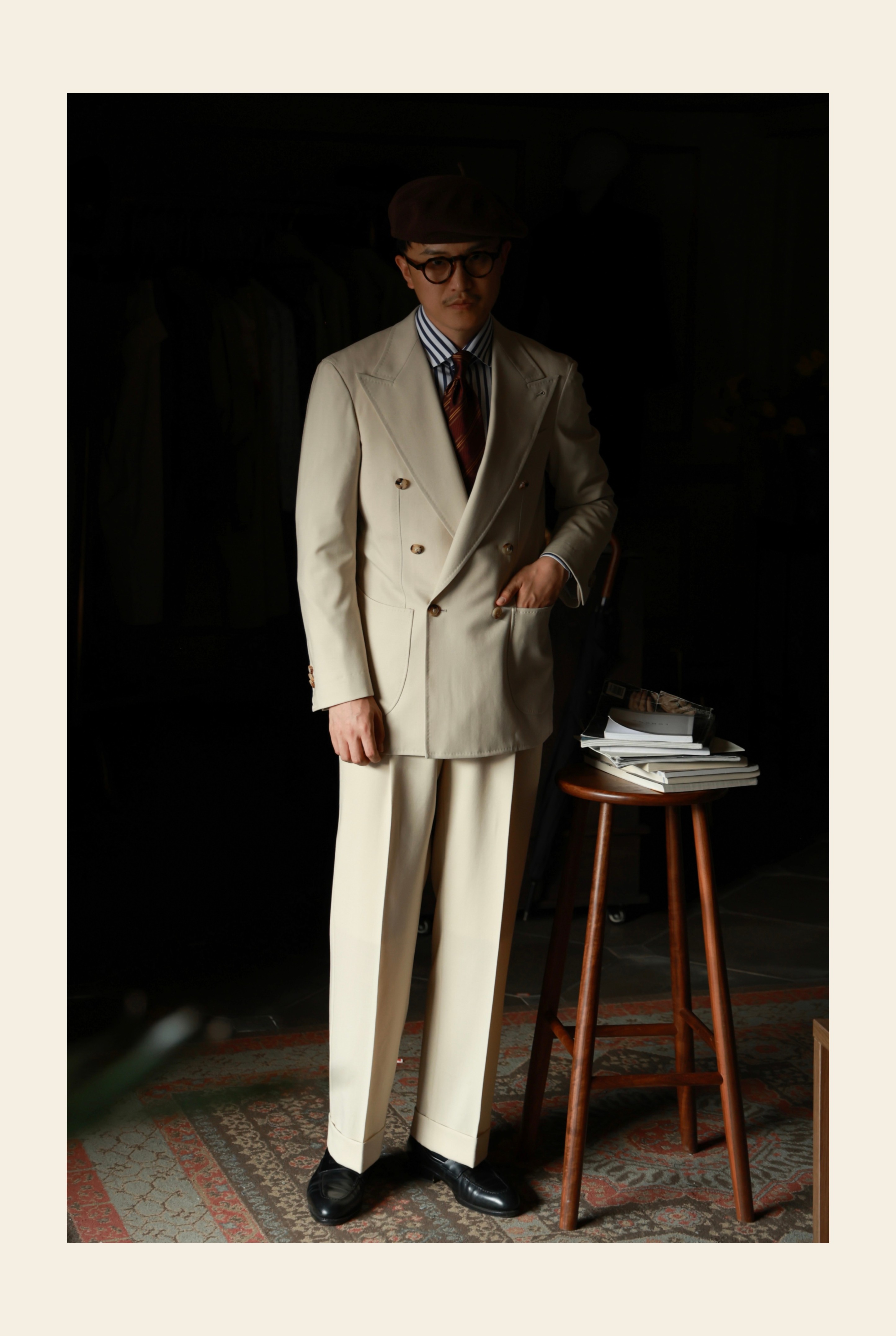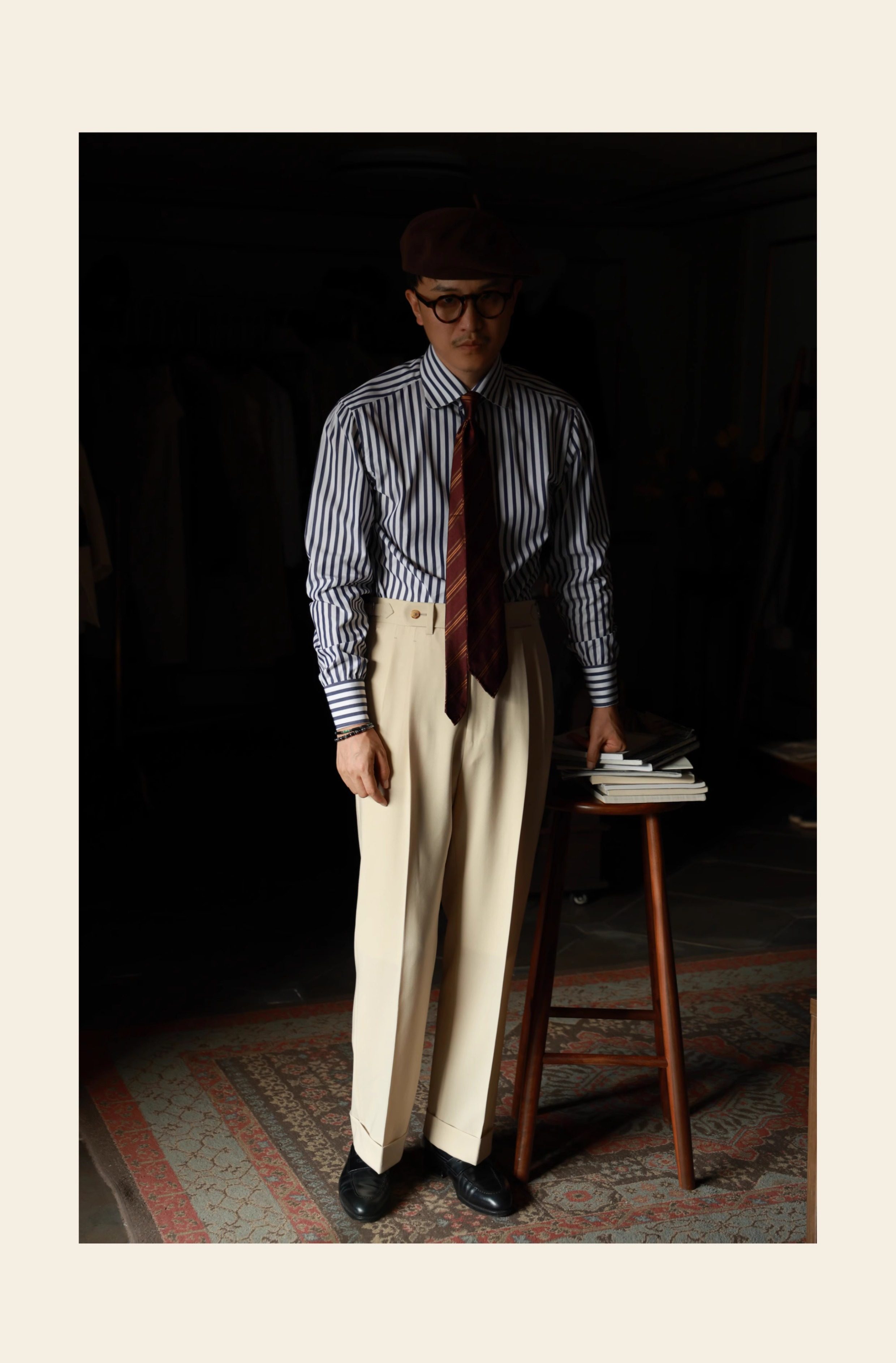 Ugentle Men's Clothing Explorer Series All Wool Italian Retro Style Handmade Trousers with a Sunset over the Sea Design