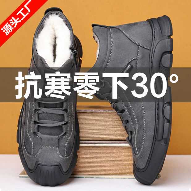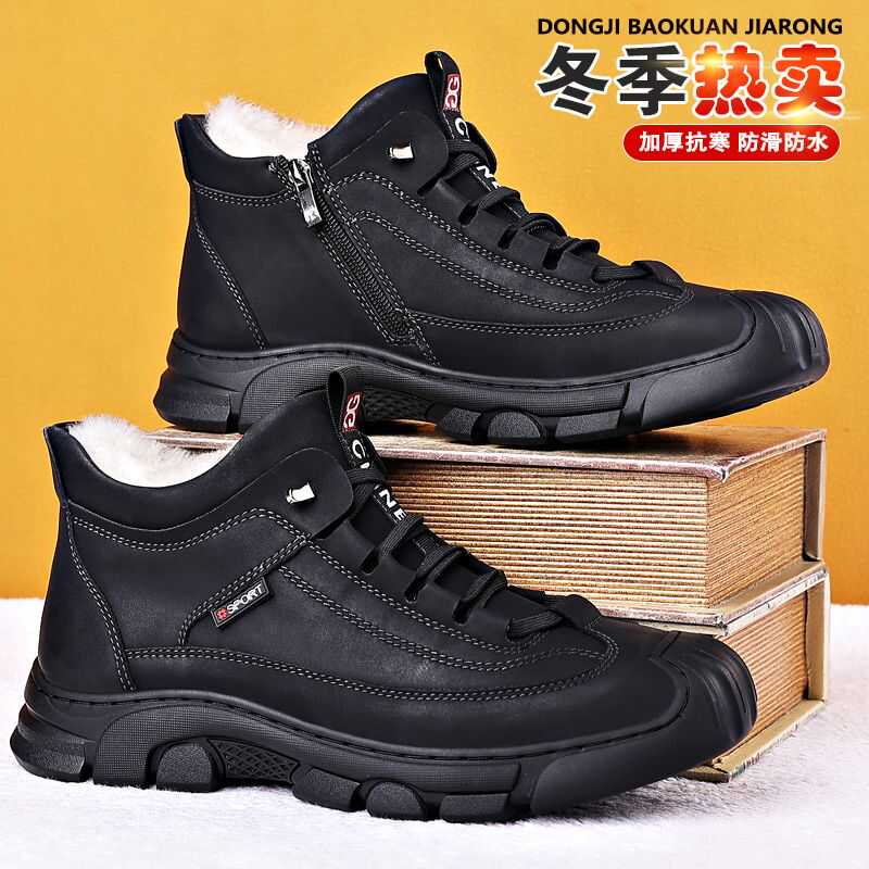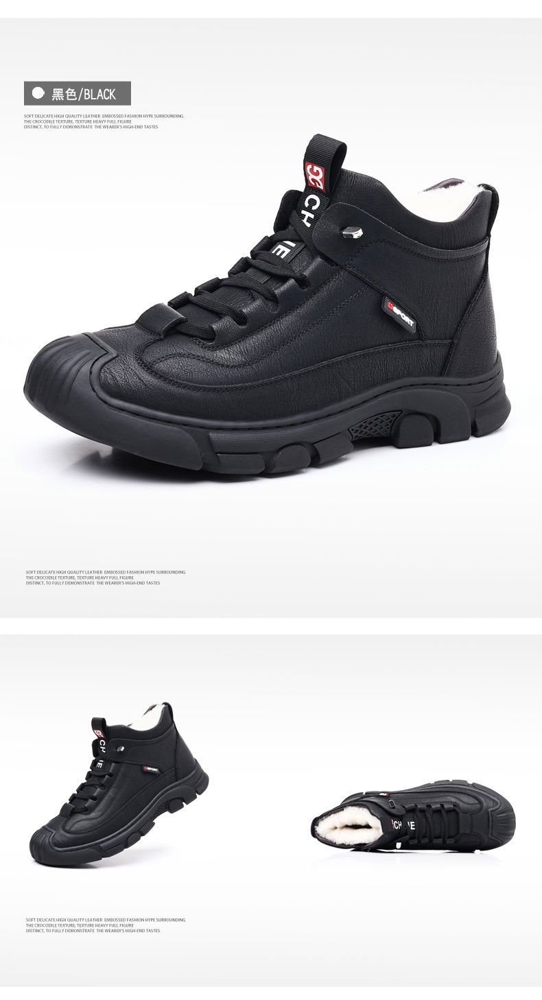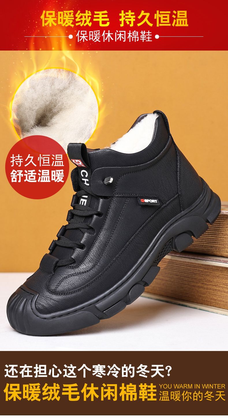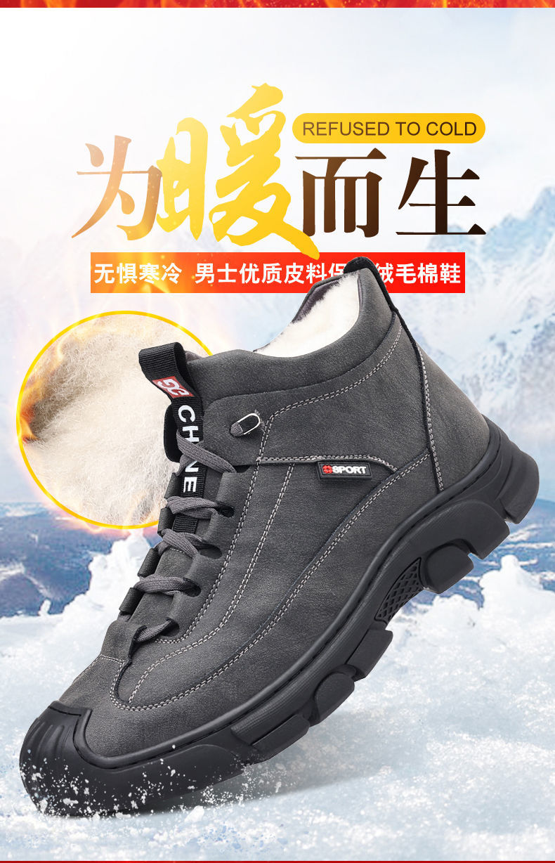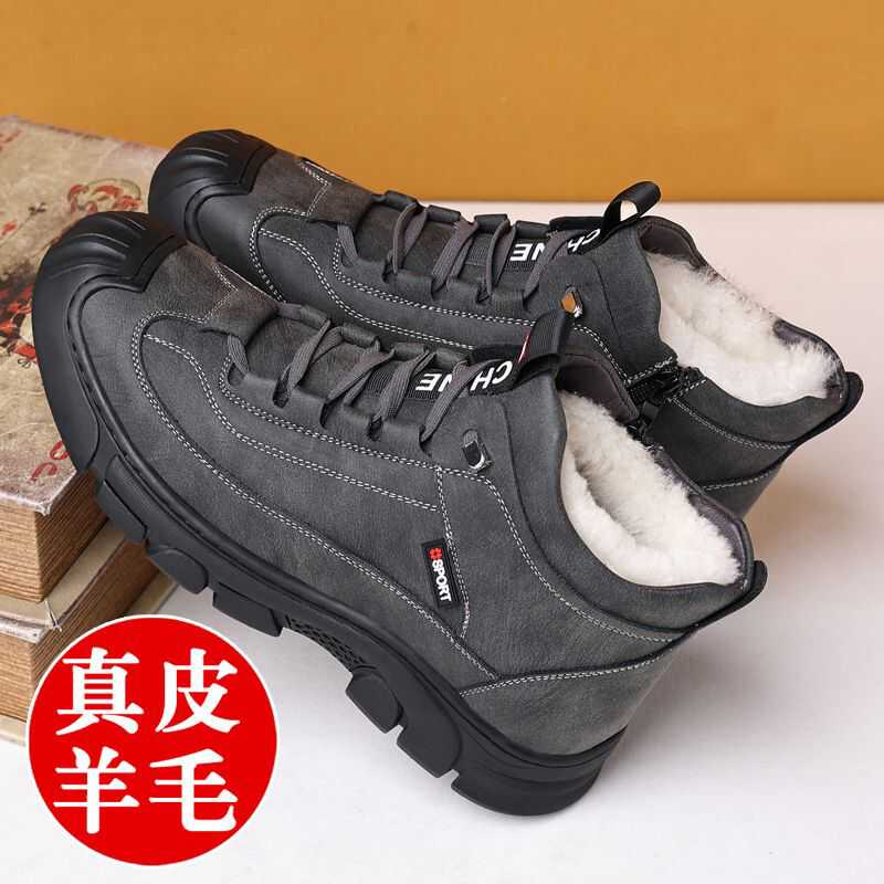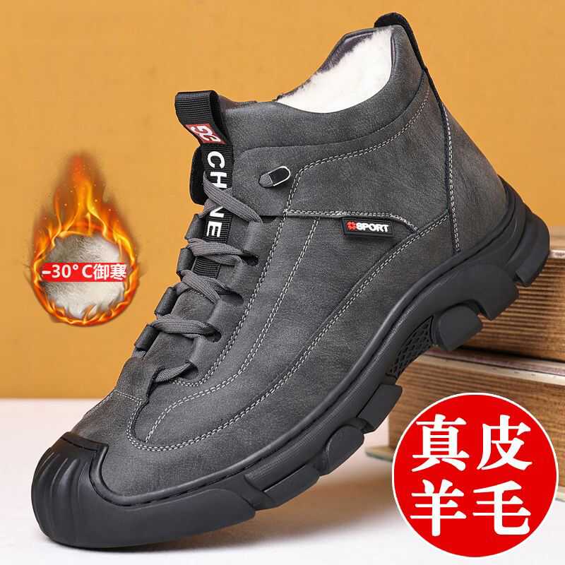 Cold-Resistant Cotton Shoes for Men, New Winter Style, Fleece-Lined, Warm, Casual High-Top Shoes, Genuine Leather, Wool, Non-Slip Snow Boots for Men
