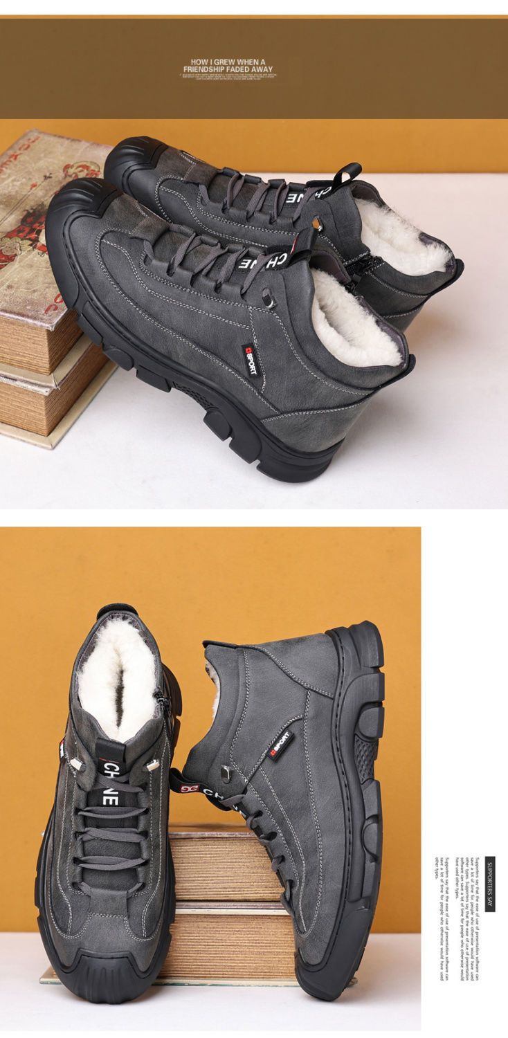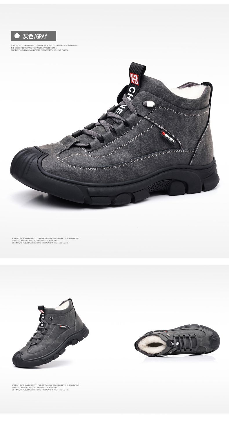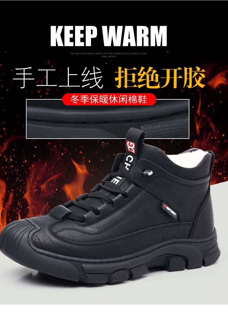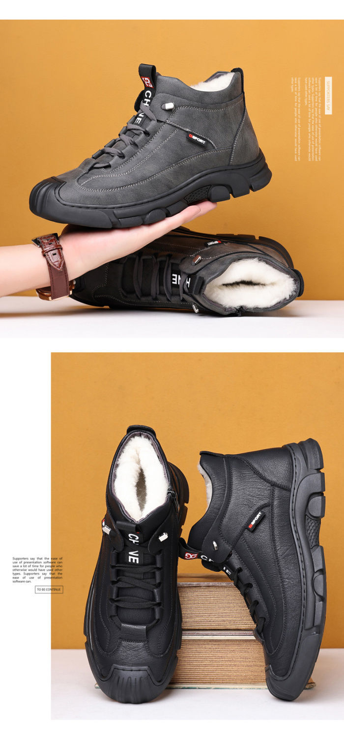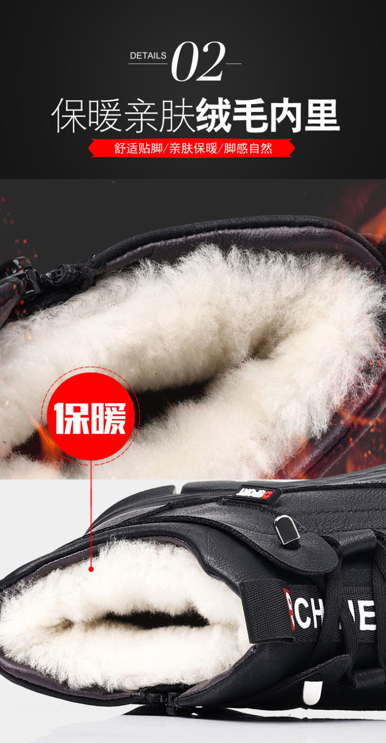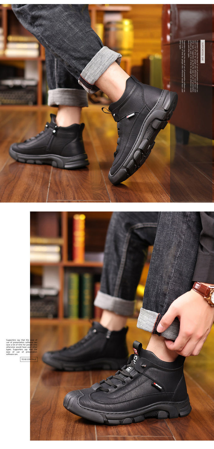Cold-Resistant Cotton Shoes for Men, New Winter Style, Fleece-Lined, Warm, Casual High-Top Shoes, Genuine Leather, Wool, Non-Slip Snow Boots for Men