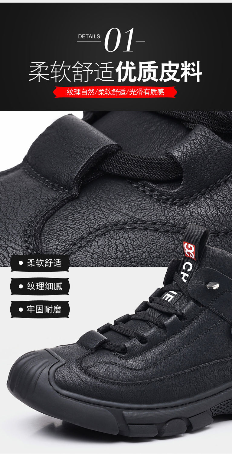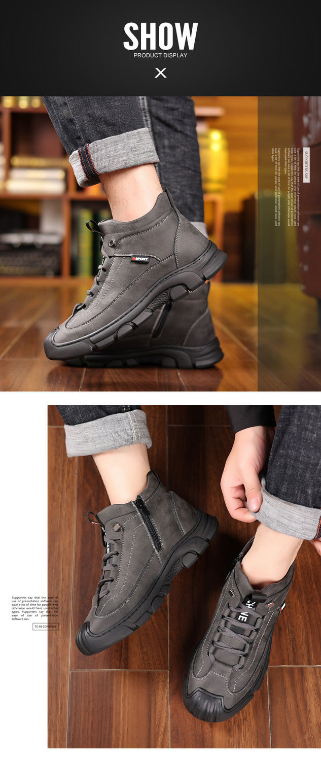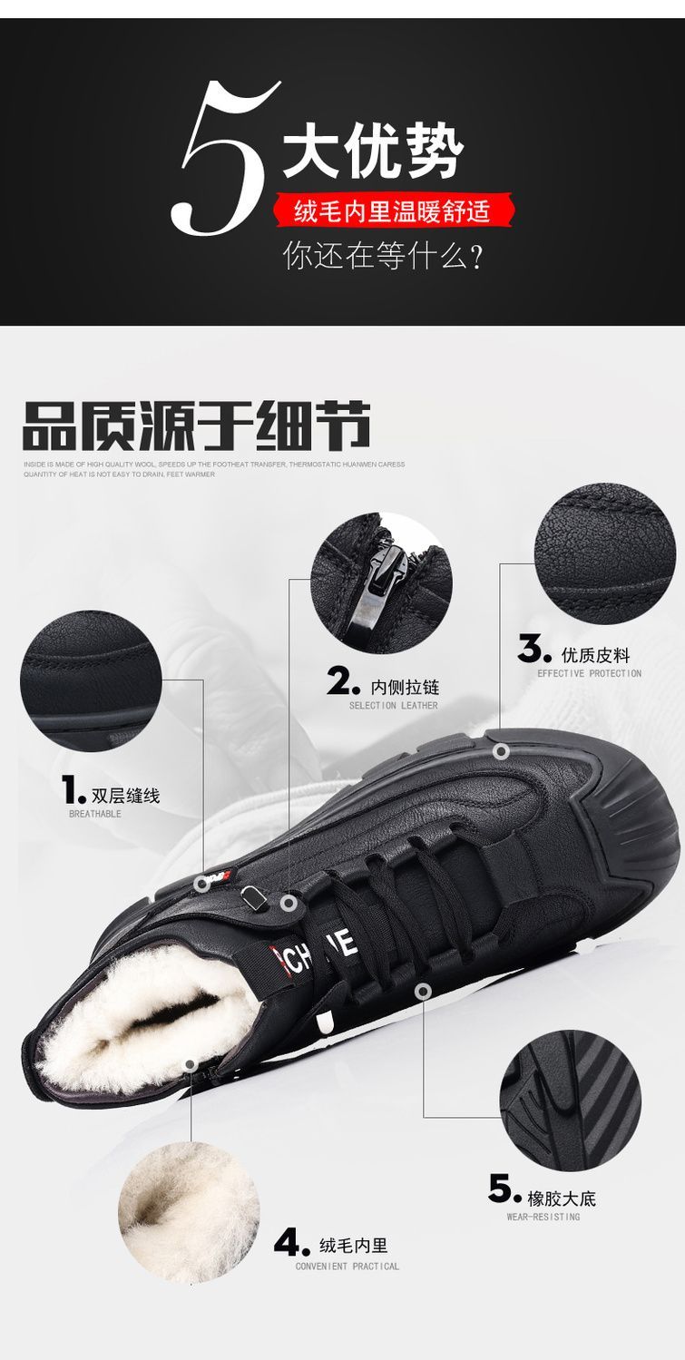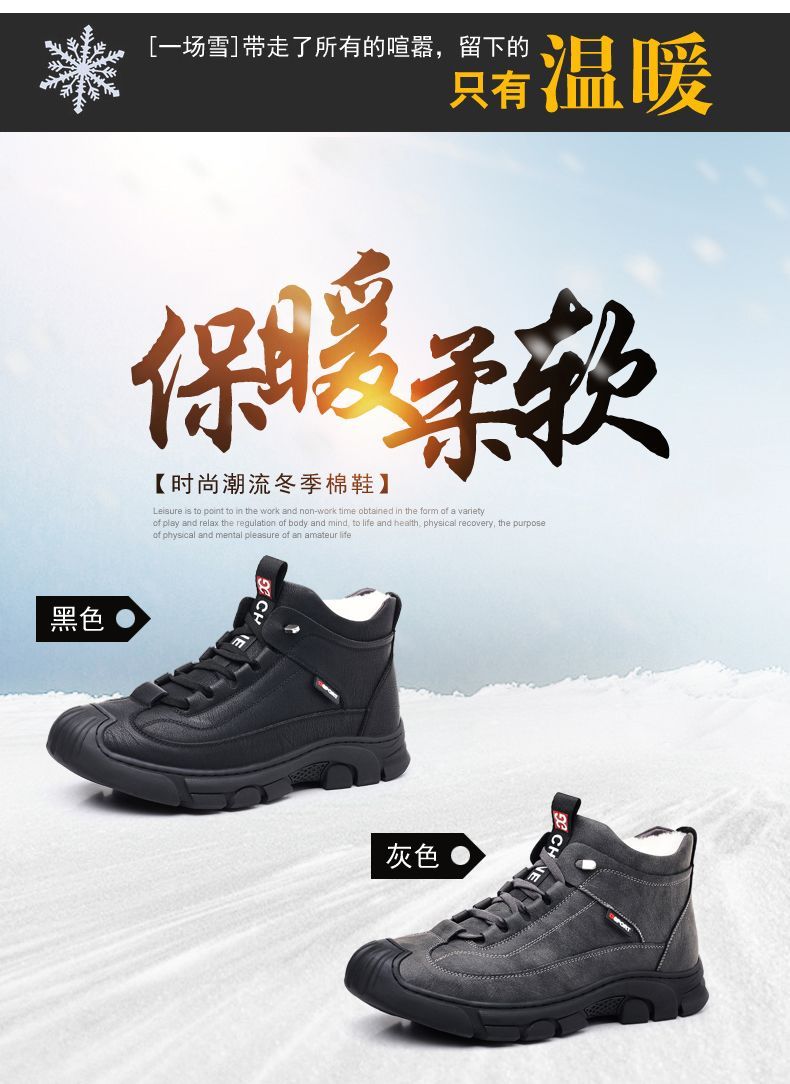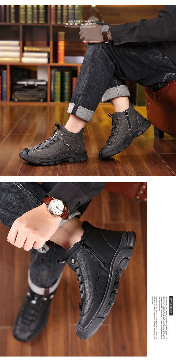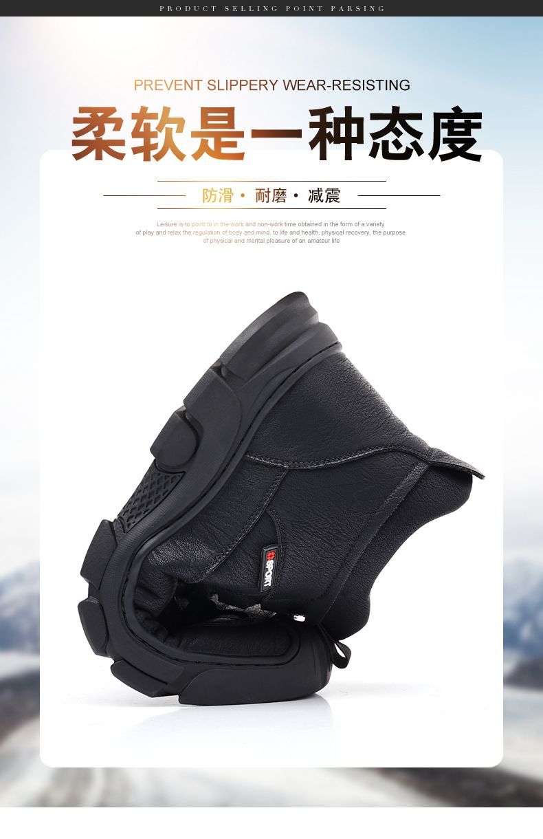Cold-Resistant Cotton Shoes for Men, New Winter Style, Fleece-Lined, Warm, Casual High-Top Shoes, Genuine Leather, Wool, Non-Slip Snow Boots for Men