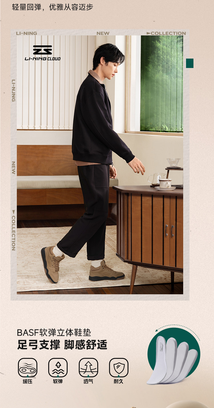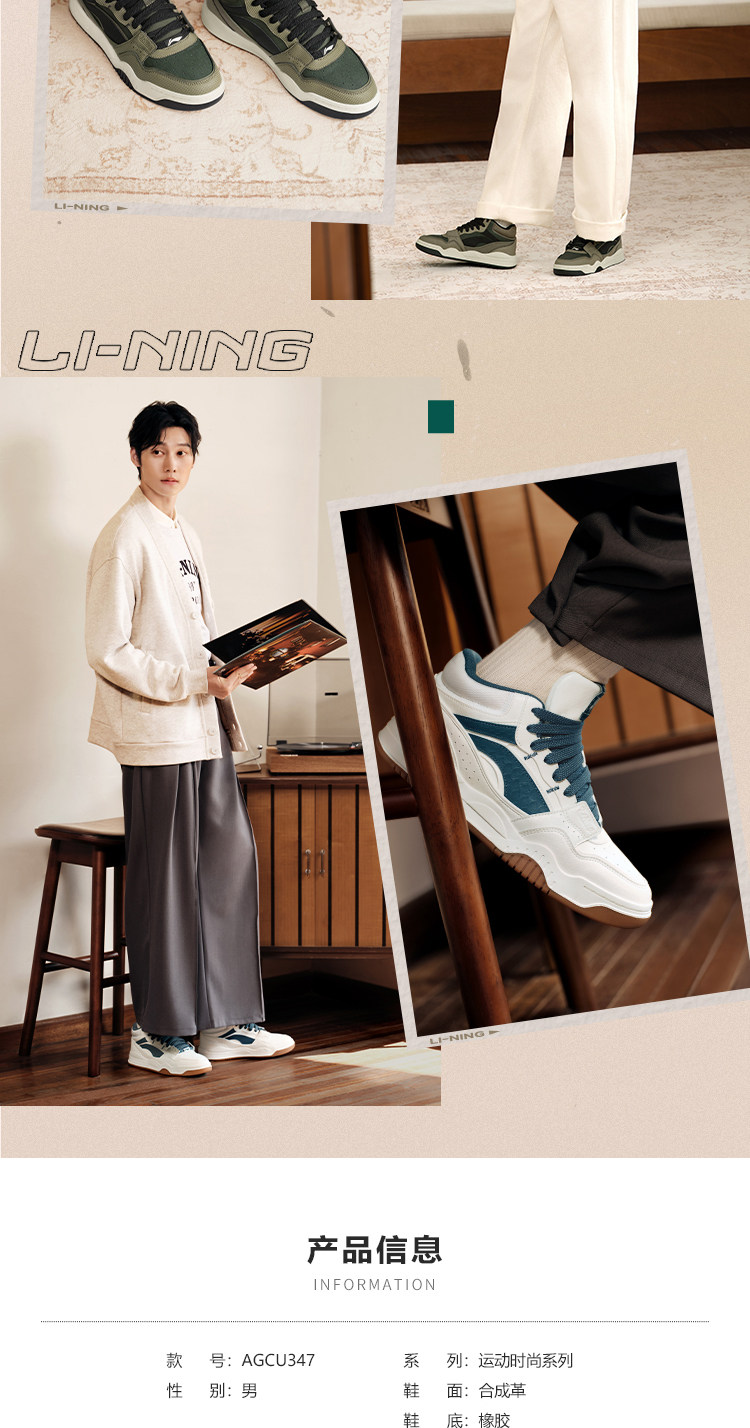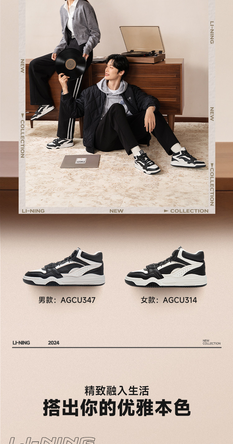 Li Ning Yuebai Hi丨 Casual Shoes Men's Winter New Retro Versatile Mid-Top Sneakers Classic Sports Shoes Men's Style