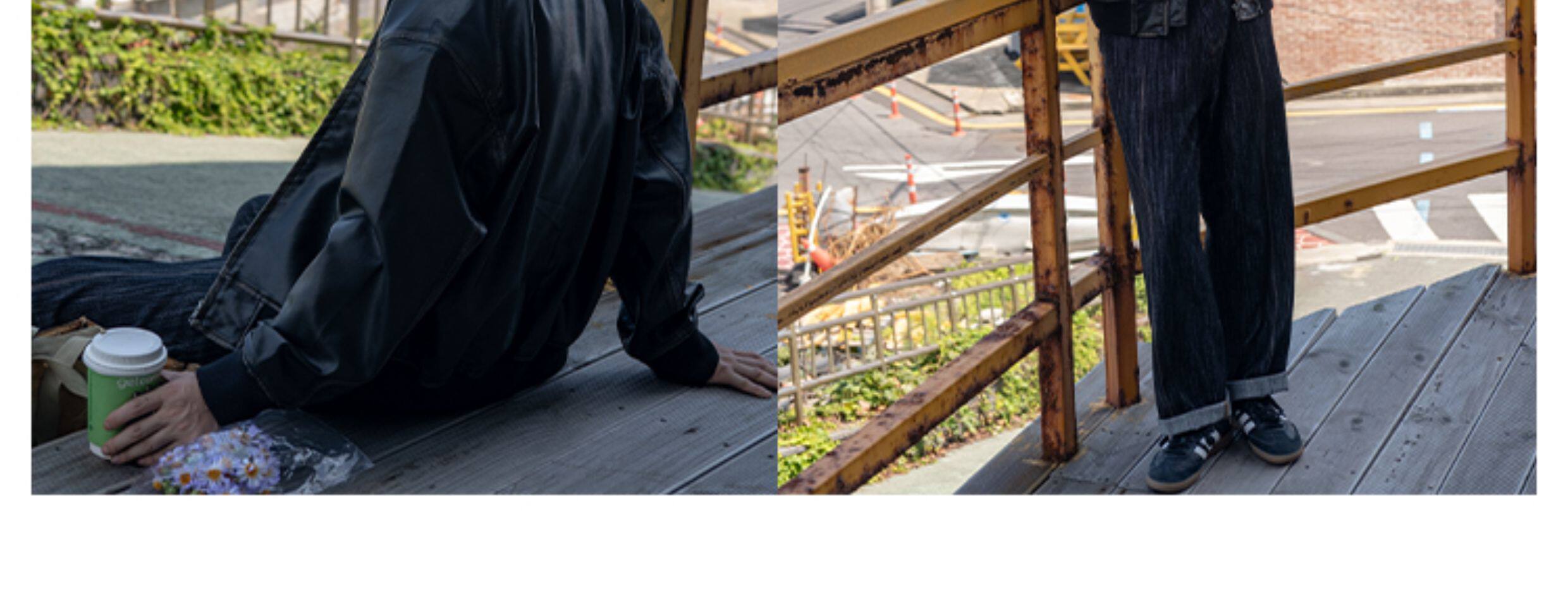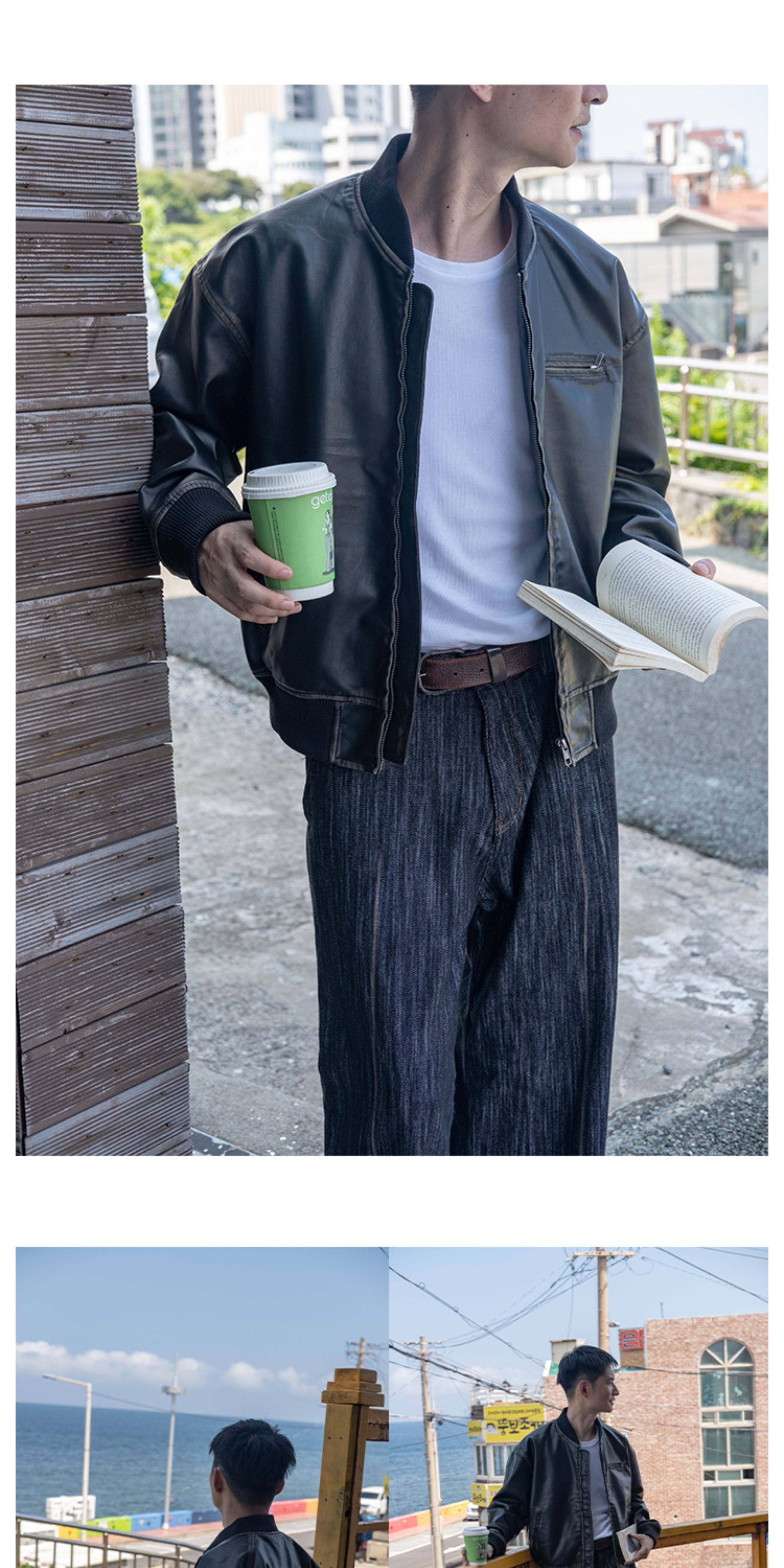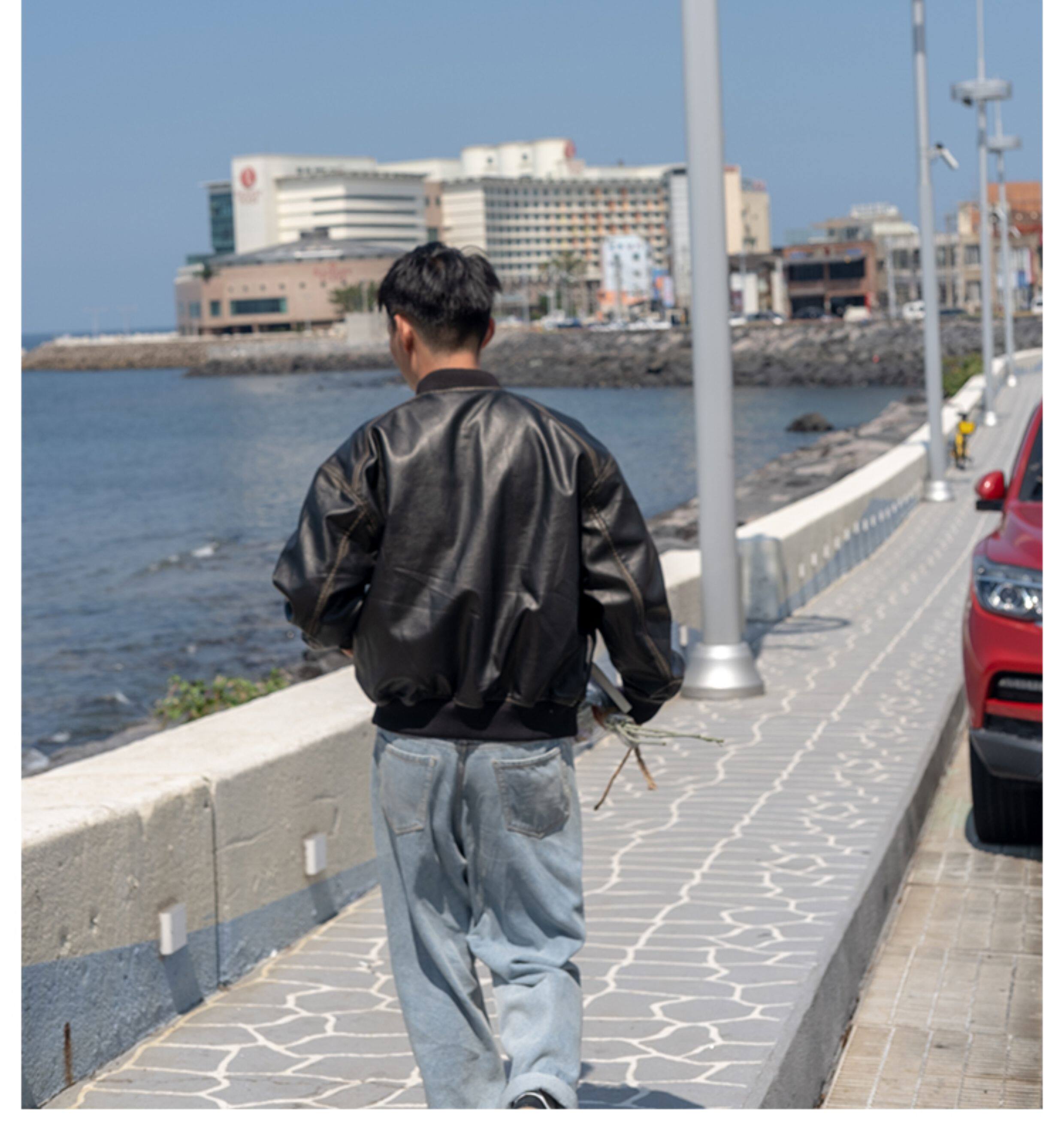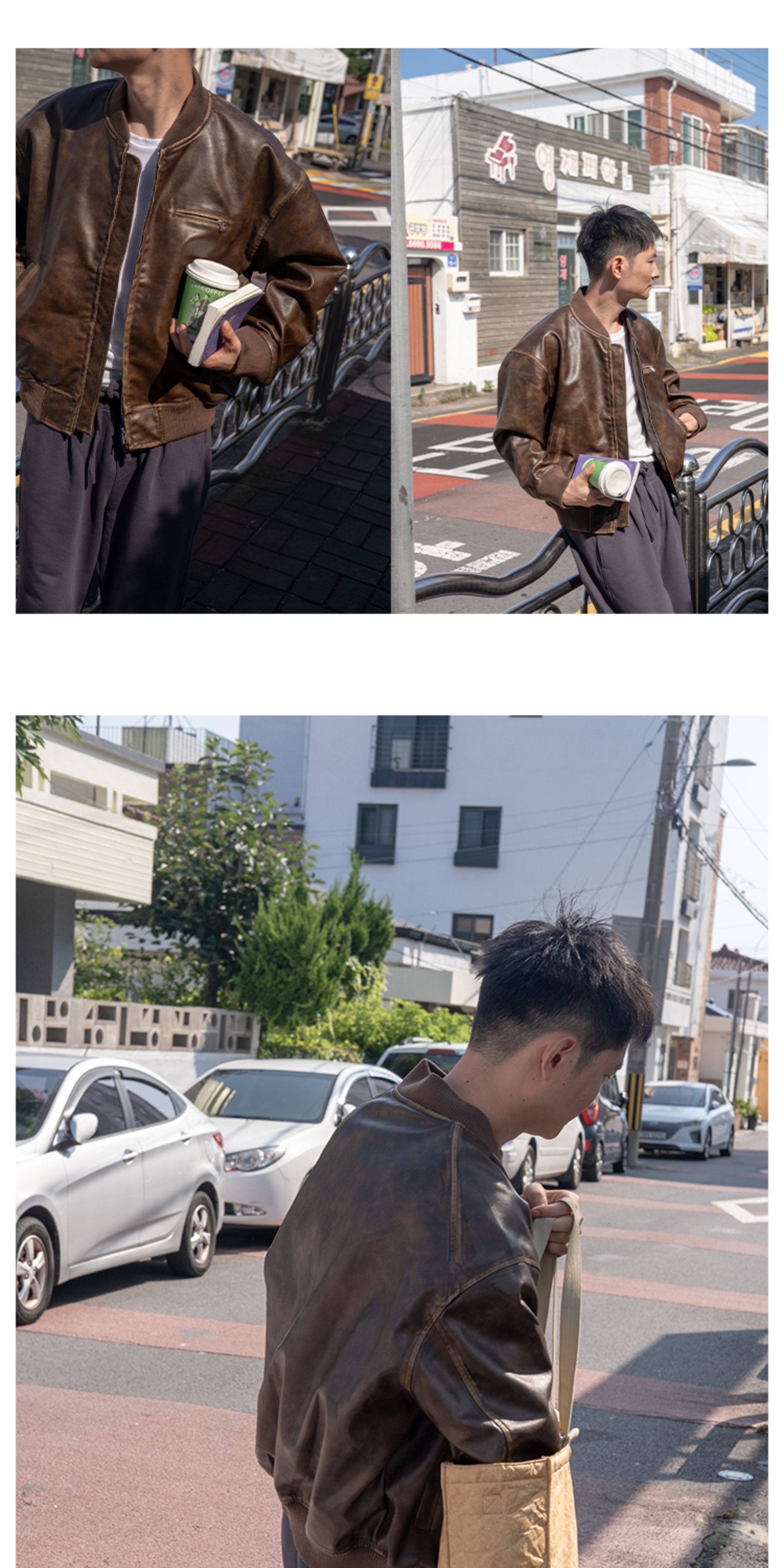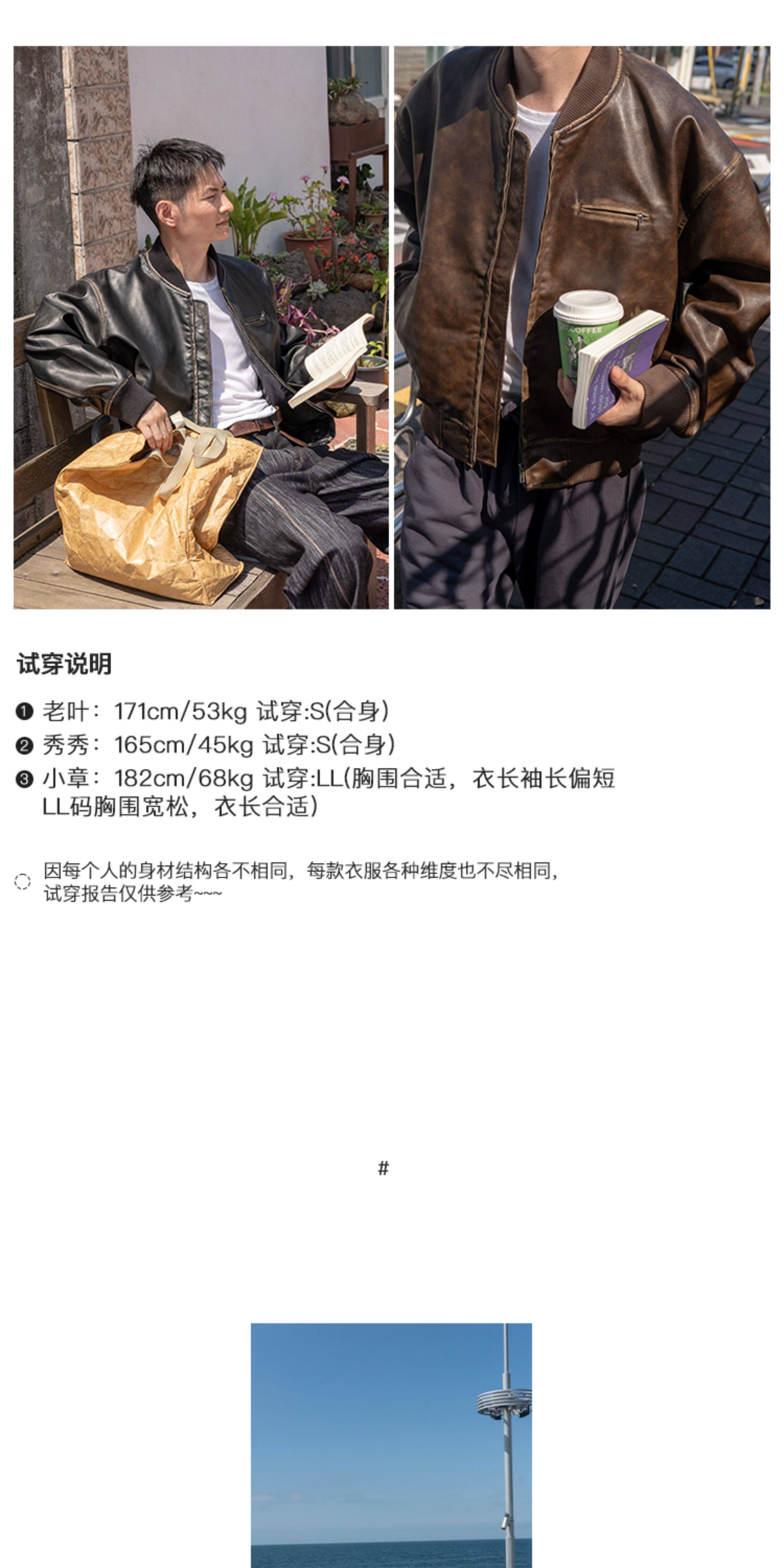 【Use Time to Feel】Jili Two-Tone Color-Washed Vintage Baseball Collar Pu Leather Jacket