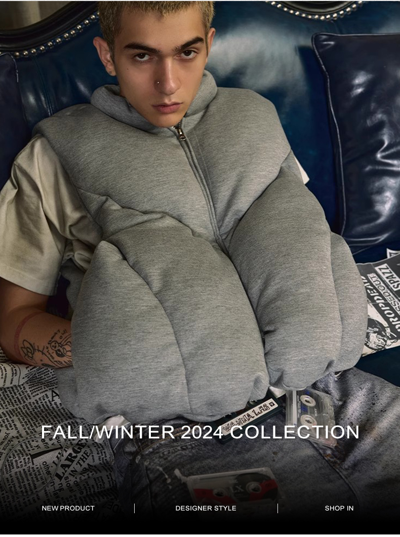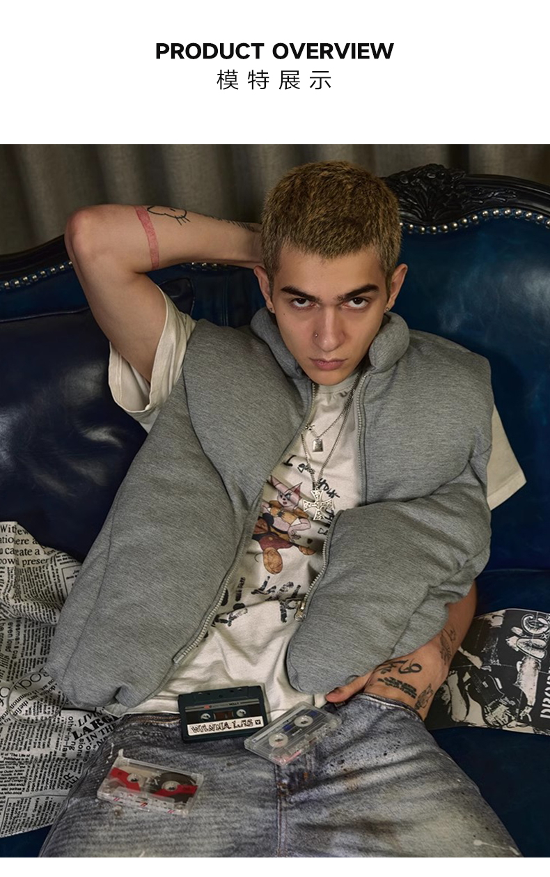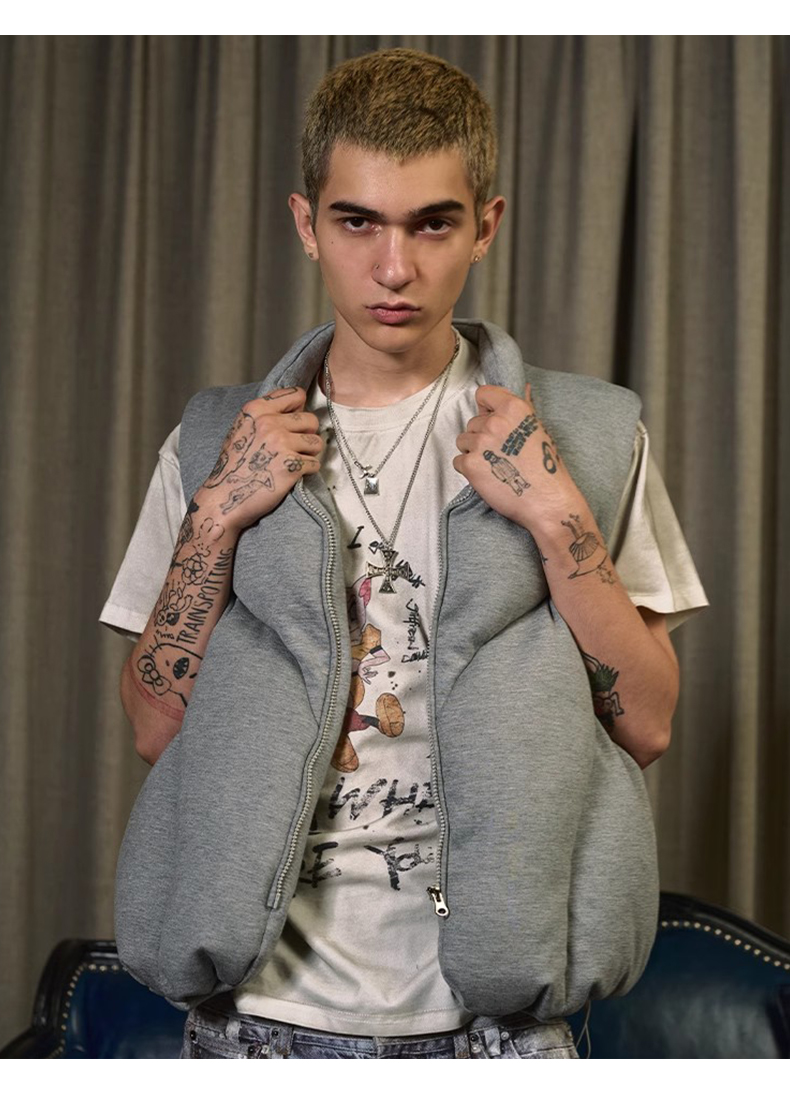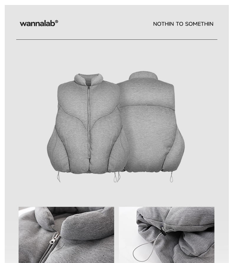 Wanna Lab Gray Air Layer down Cotton Vest Vibe Deconstructed Silhouette with Adjustable Hem
