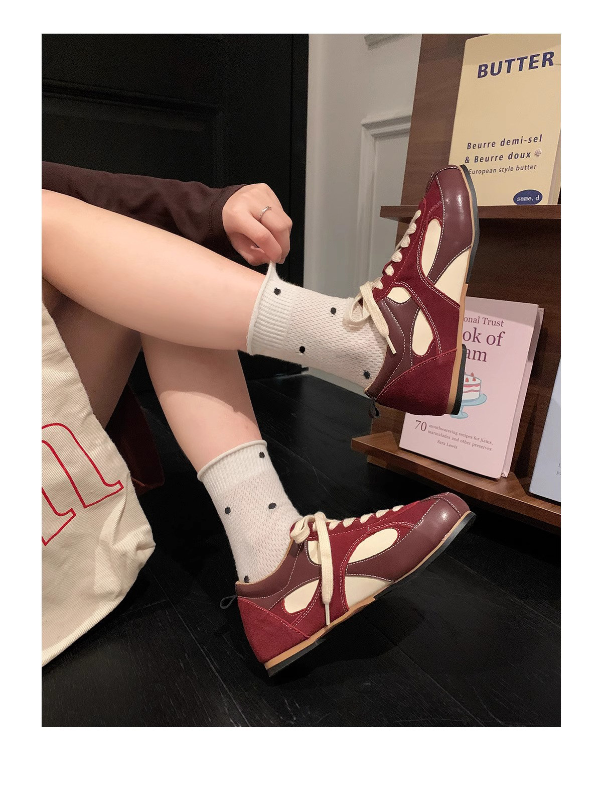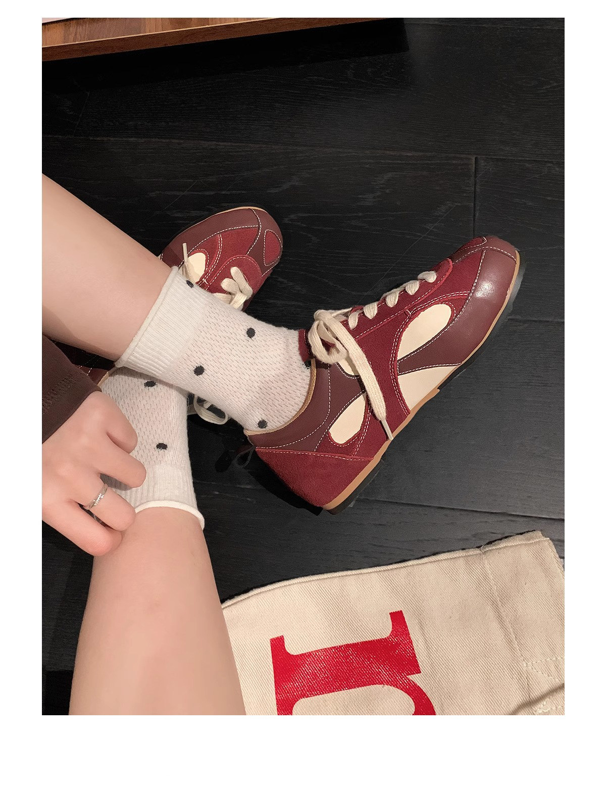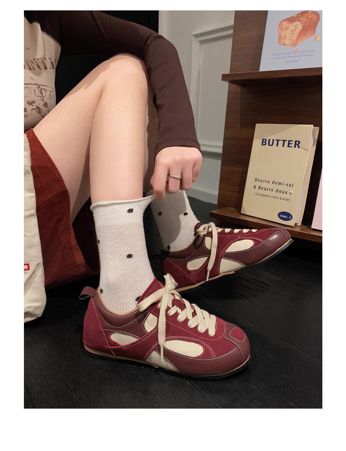Hong Kong Ankora Red Casual Shoes for Women 2026 Spring and Autumn New Color-Blocking Sneakers Versatile Lace-Up Ballet Training Shoes
