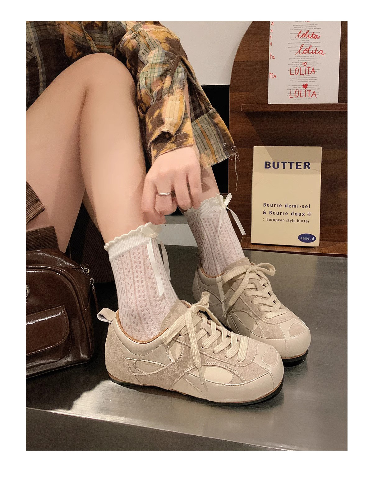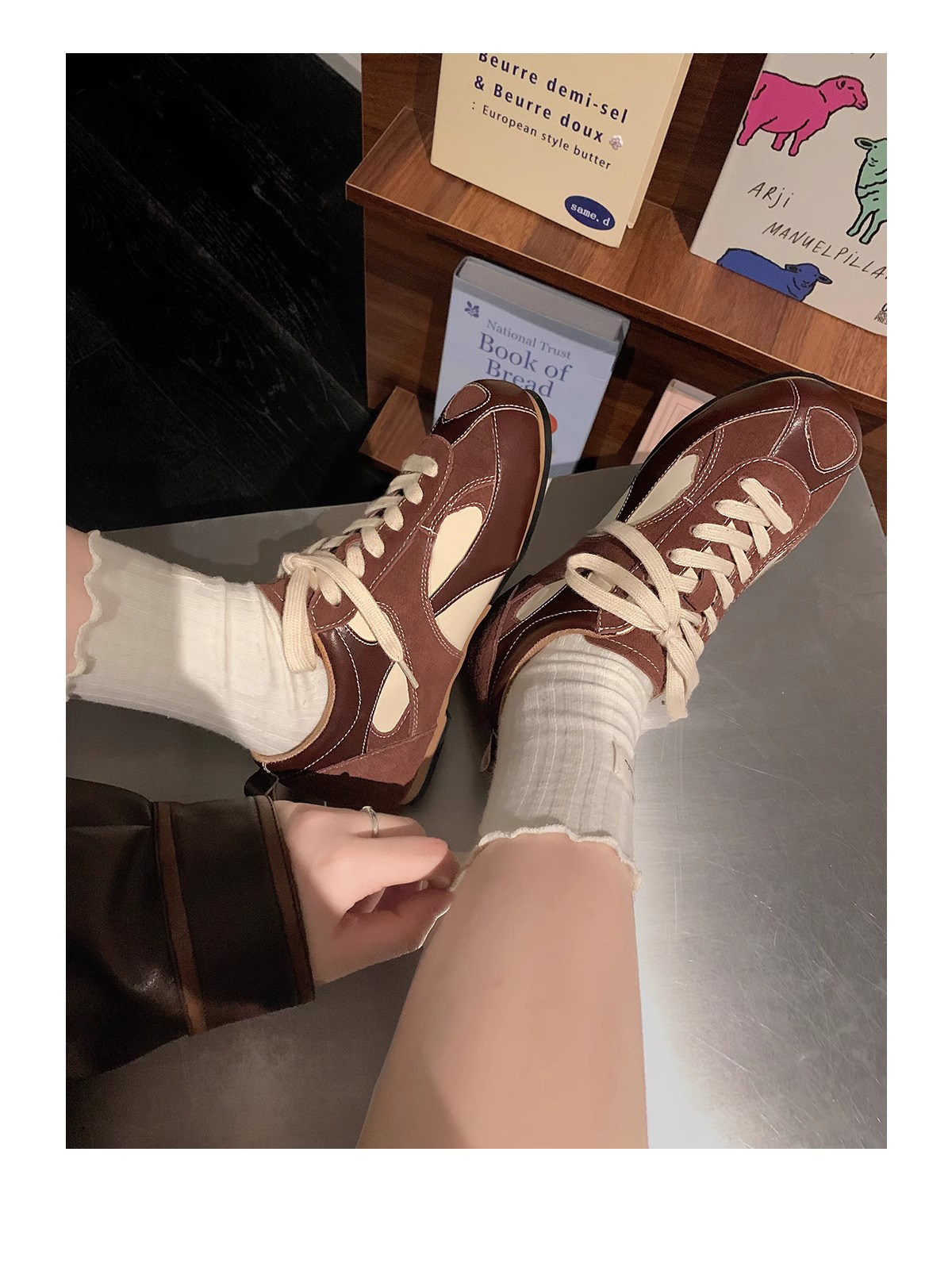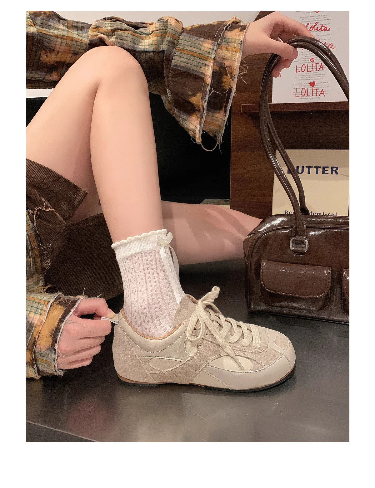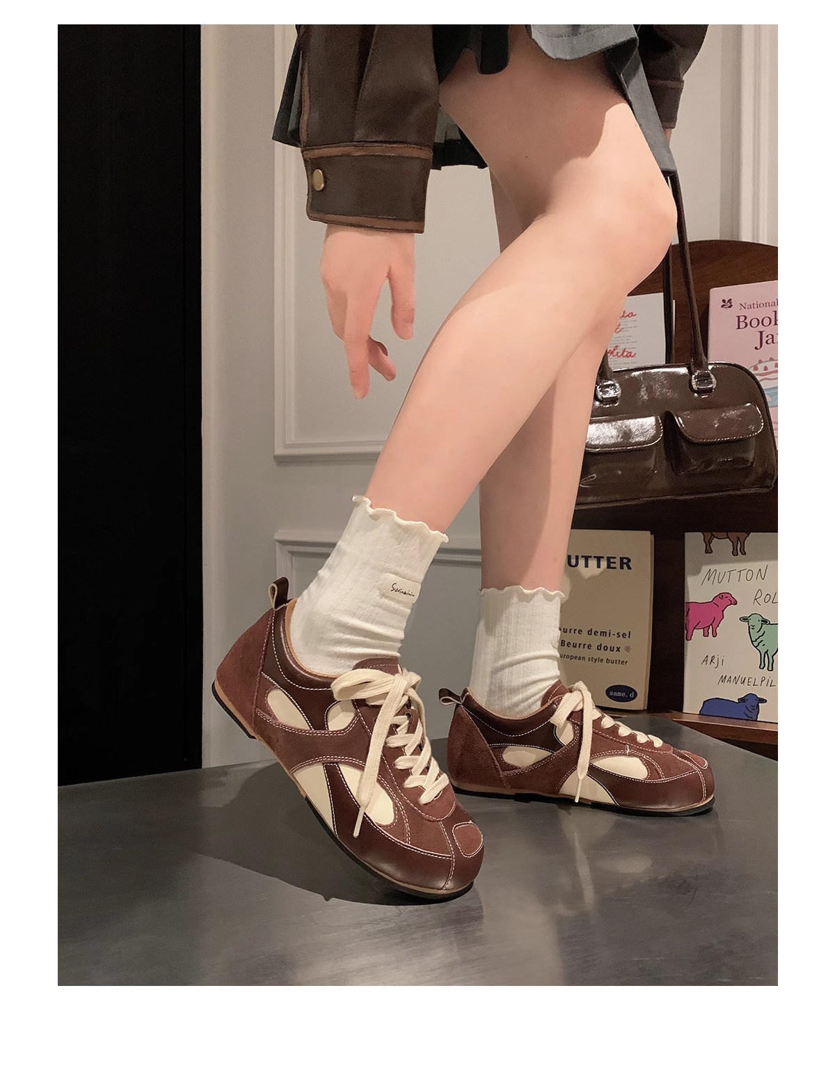 Hong Kong Ankora Red Casual Shoes for Women 2026 Spring and Autumn New Color-Blocking Sneakers Versatile Lace-Up Ballet Training Shoes
