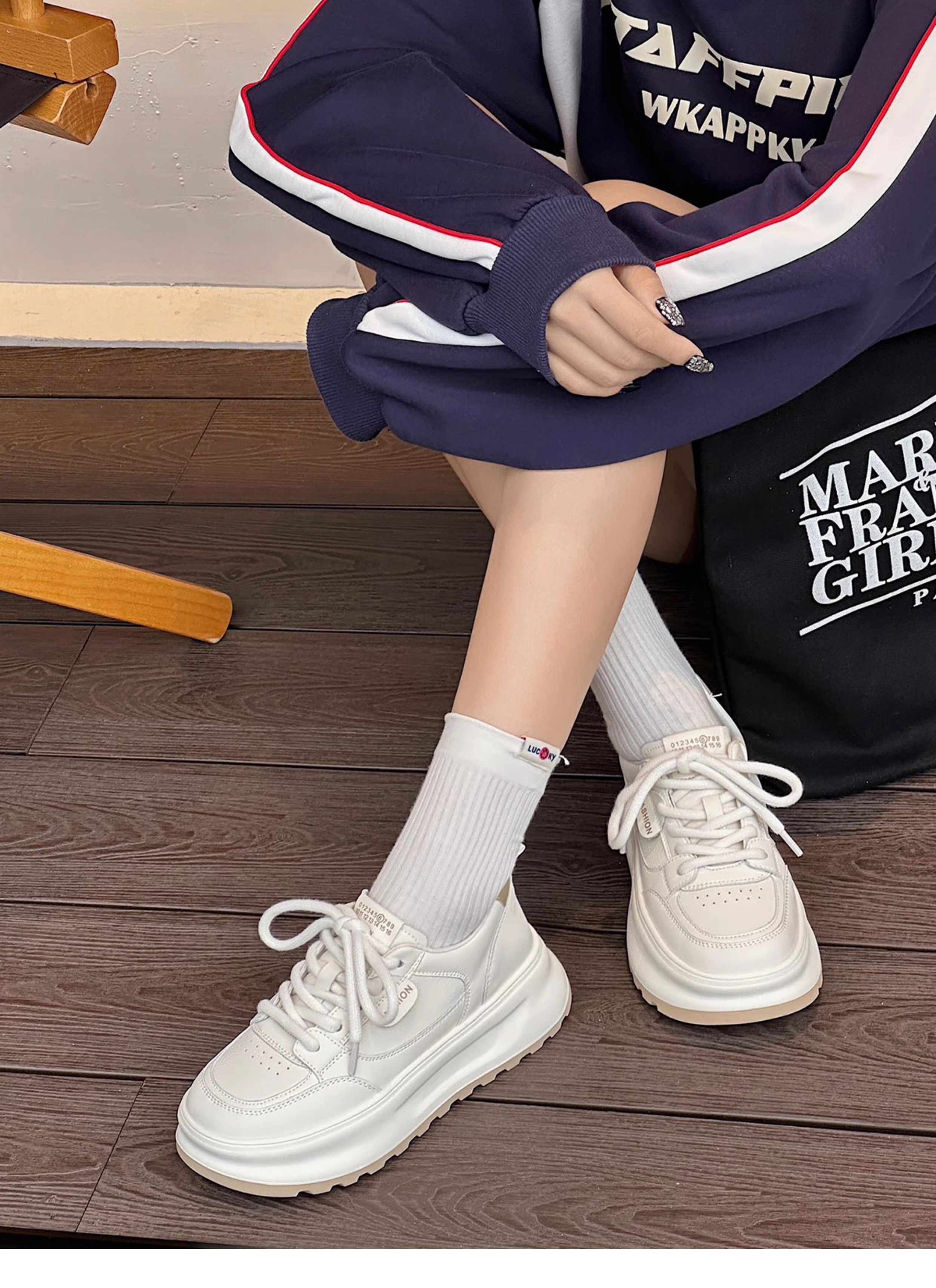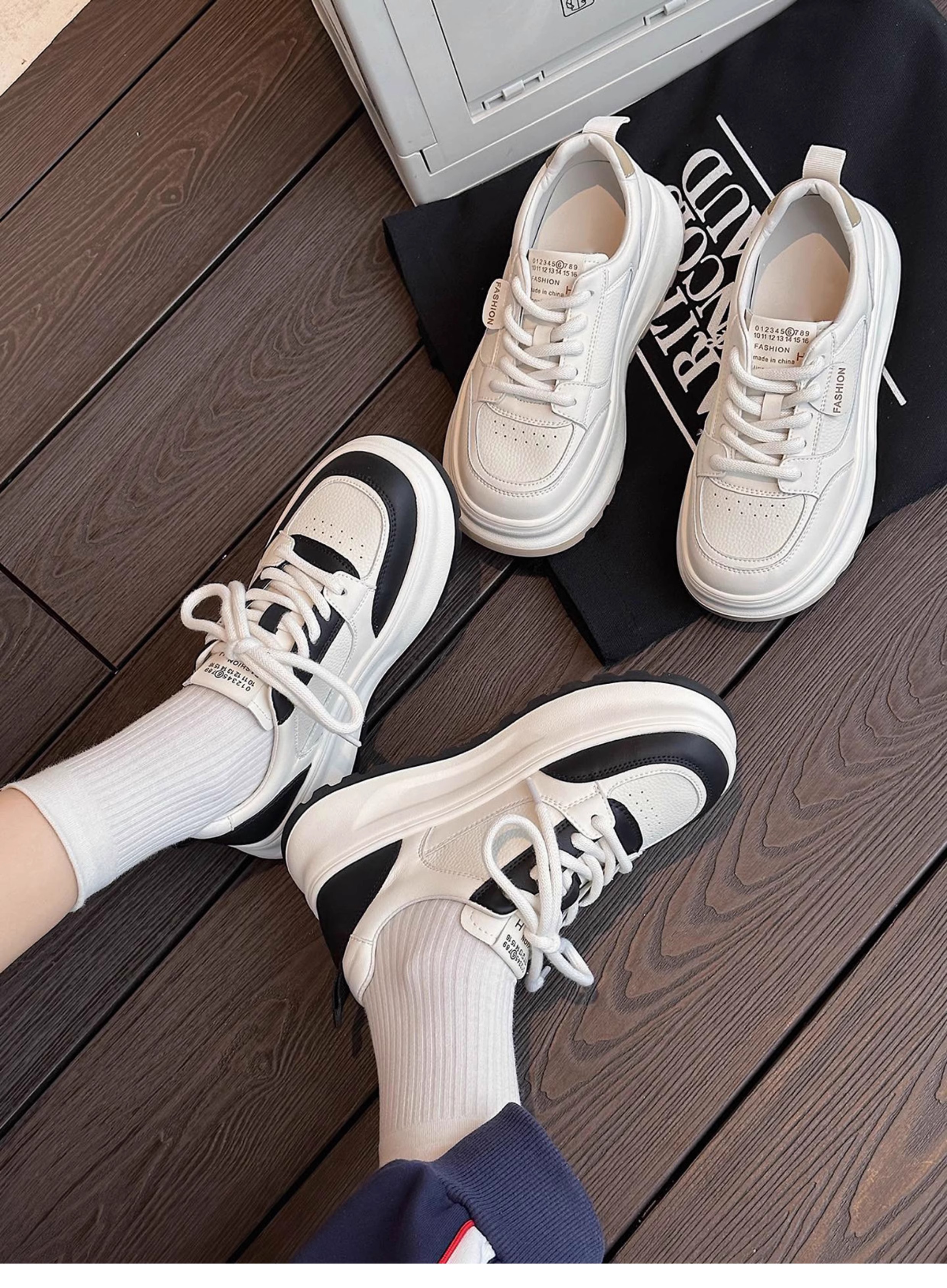 Hong Kong Ultra-Light Thick-Soled Casual Sneakers White Shoes for Women 2025 Spring and Autumn Genuine Leather Versatile Height-Increasing Fashionable Sports Shoes
