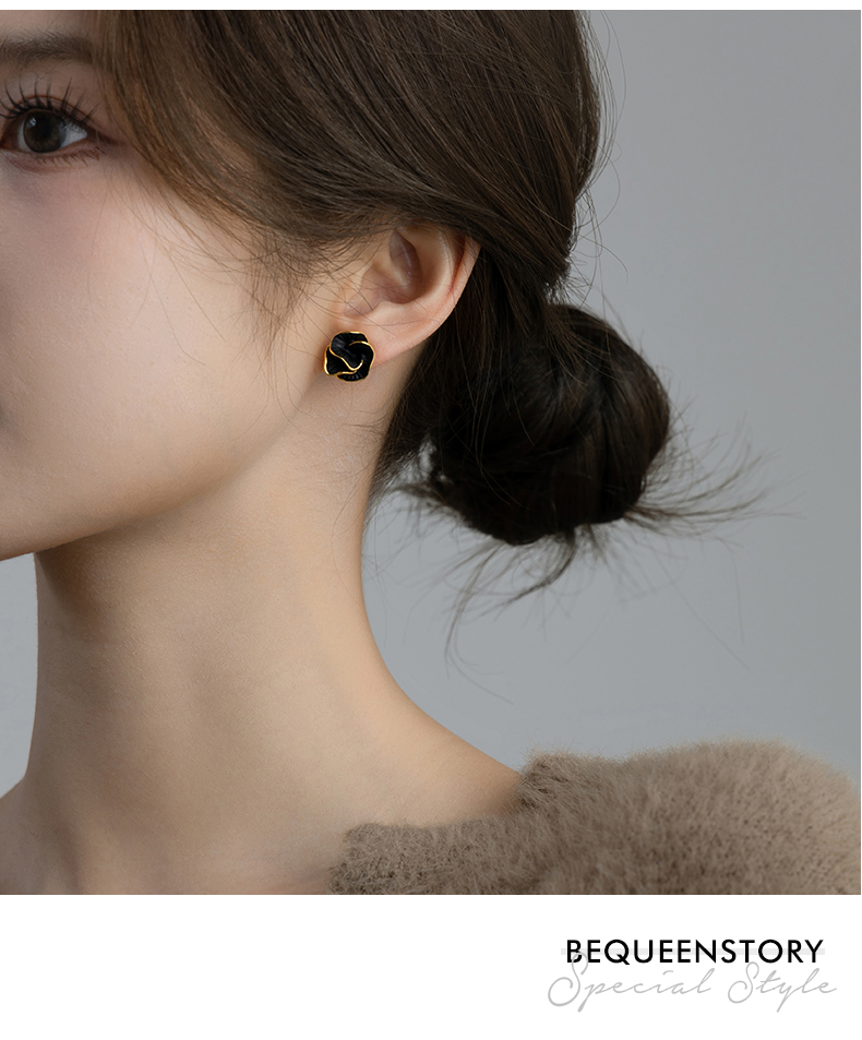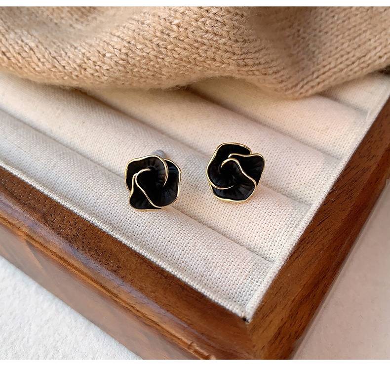 Black Camellia Earrings, Small Fragrant Earrings, Feminine Niche Design, Unique Autumn and Winter Earrings, High-End and Accessible Luxury
