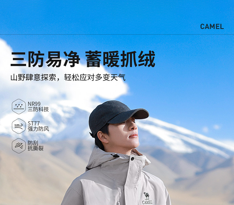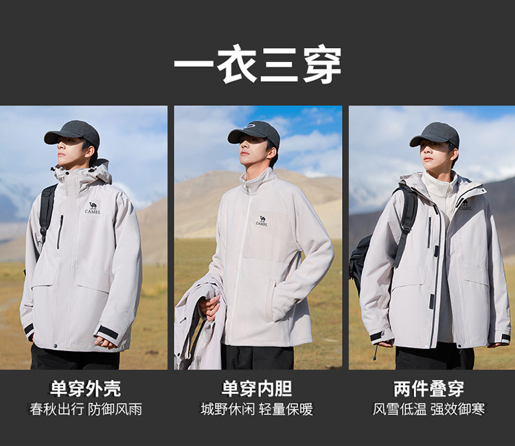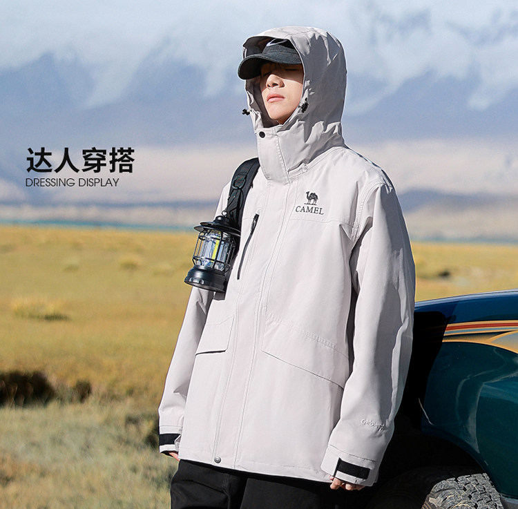 Camel Outdoor 3-in-1 Rock-Climbing Jacket for Men and Women, Windproof and Waterproof Coat for Tibet Travel, Hiking, and Mountaineering