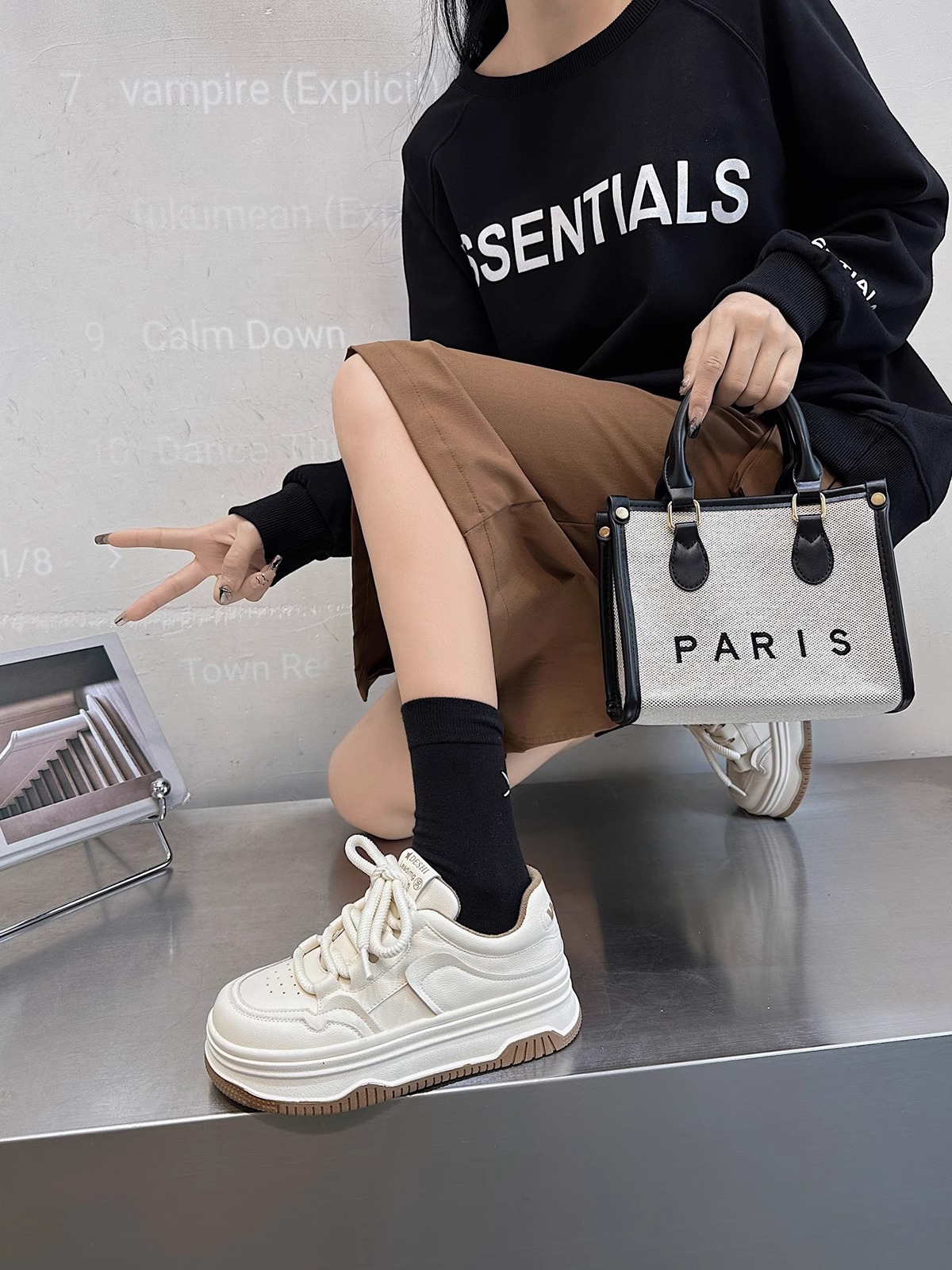 Hong Kong Genuine Leather Casual Sneakers for Women 2025 Spring and Autumn Versatile White Shoes Height-Increasing Sports Thick-Soled Fashion Color-Blocking Soft-Soled