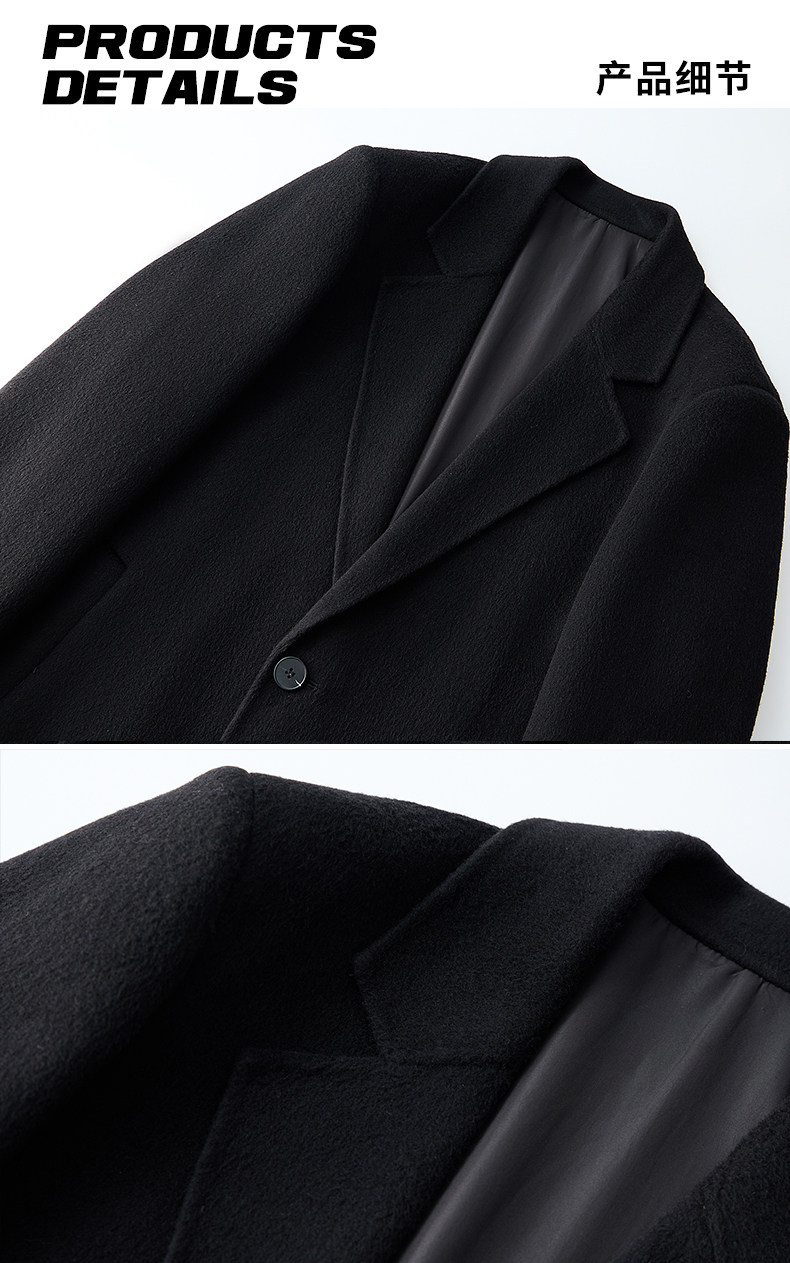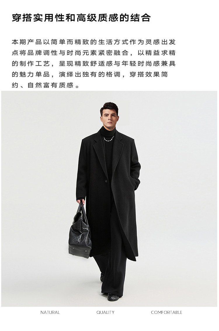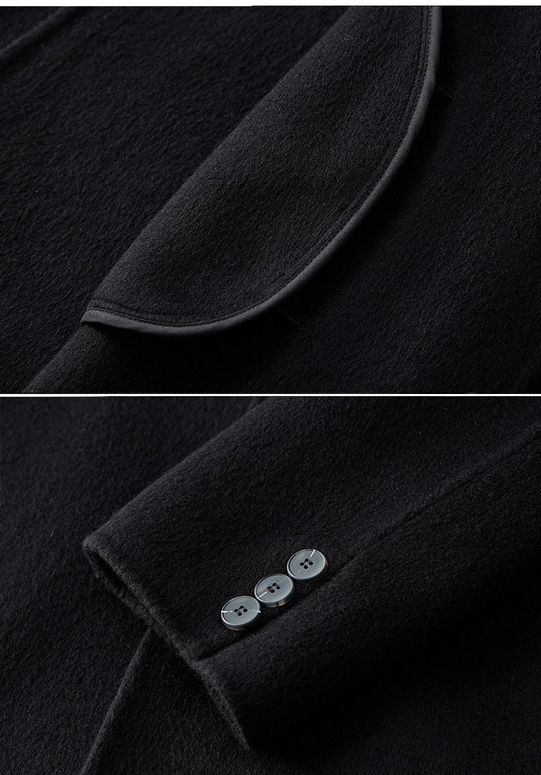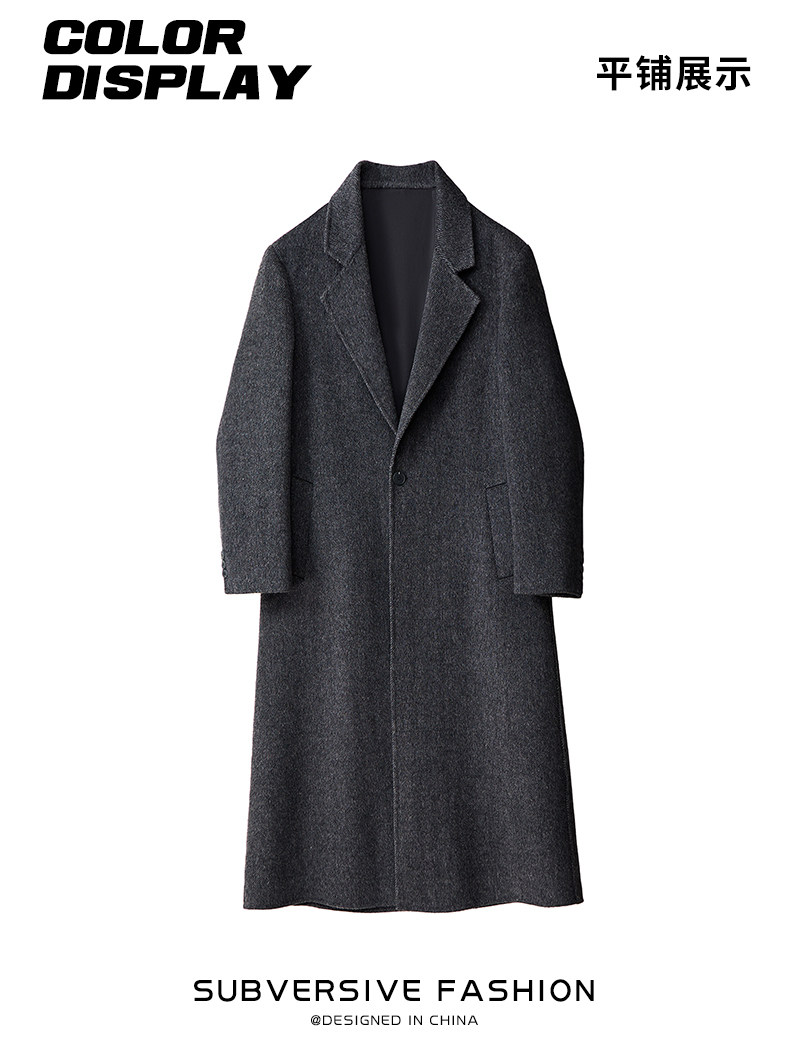 Autumn and Winter Wool Double-Sided Coat for Men with Shoulder Pads, Extra-Long Over-The-Knee Suit Collar Korean-Style Woolen Trench Coat