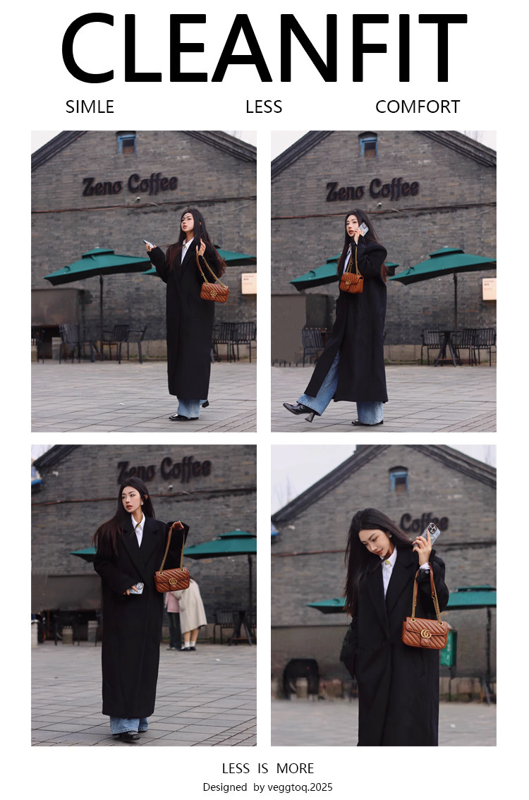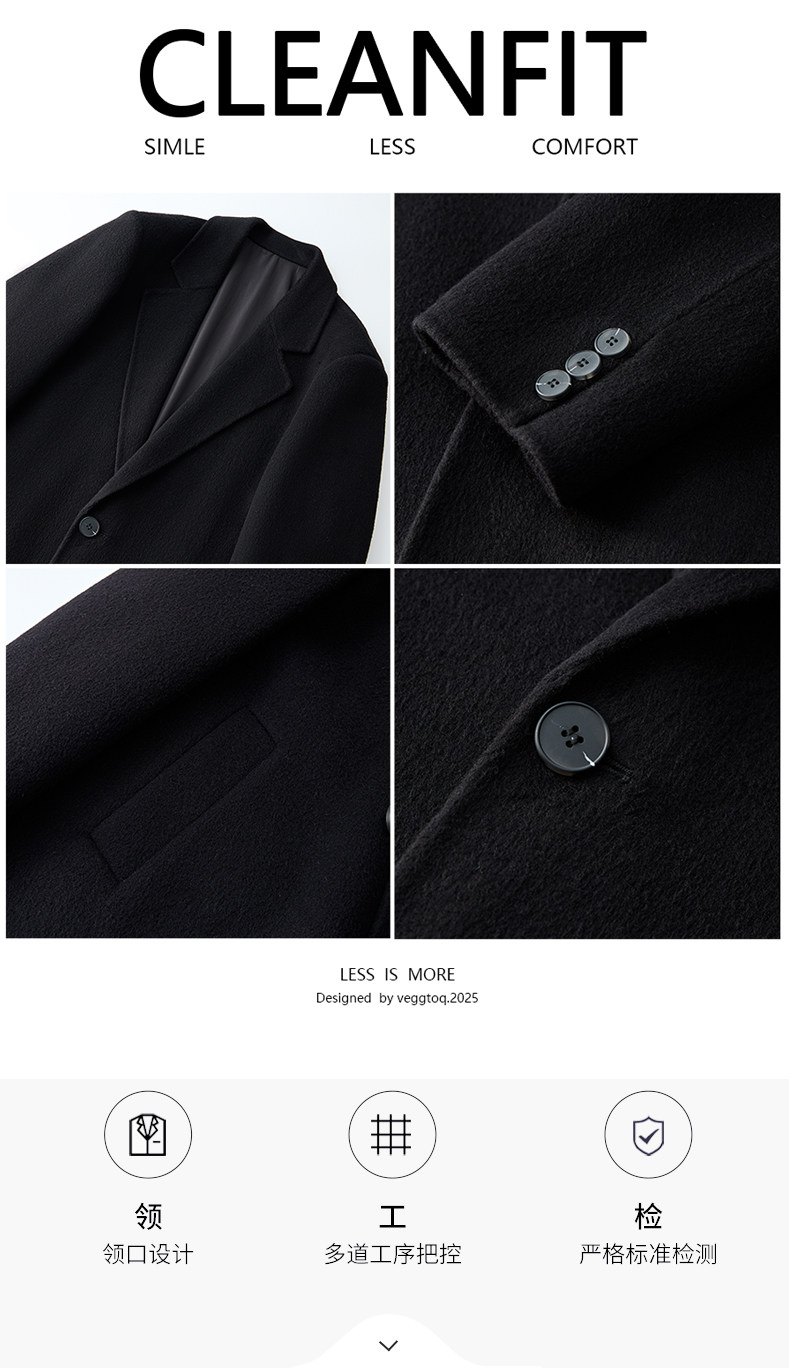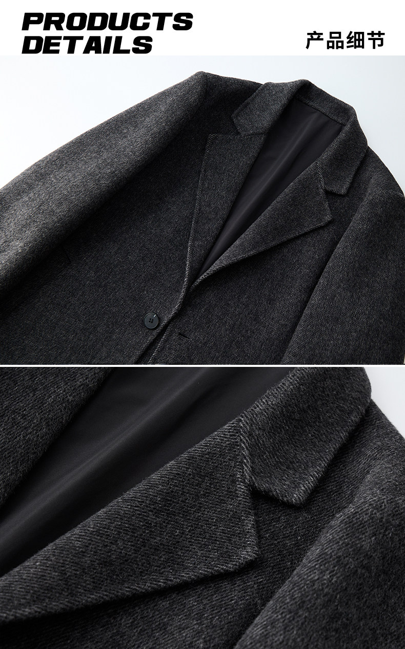 Autumn and Winter Wool Double-Sided Coat for Men with Shoulder Pads, Extra-Long Over-The-Knee Suit Collar Korean-Style Woolen Trench Coat