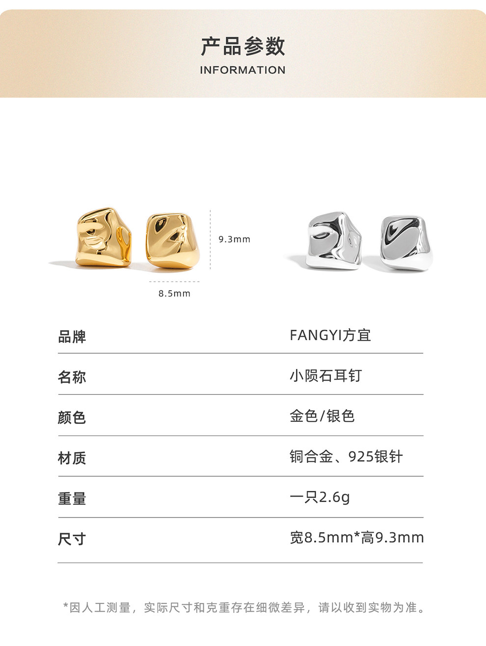 Fang Yi Small Meteorite Irregular Ab Style Versatile Commuter Earrings Fashion Jewelry Fy007