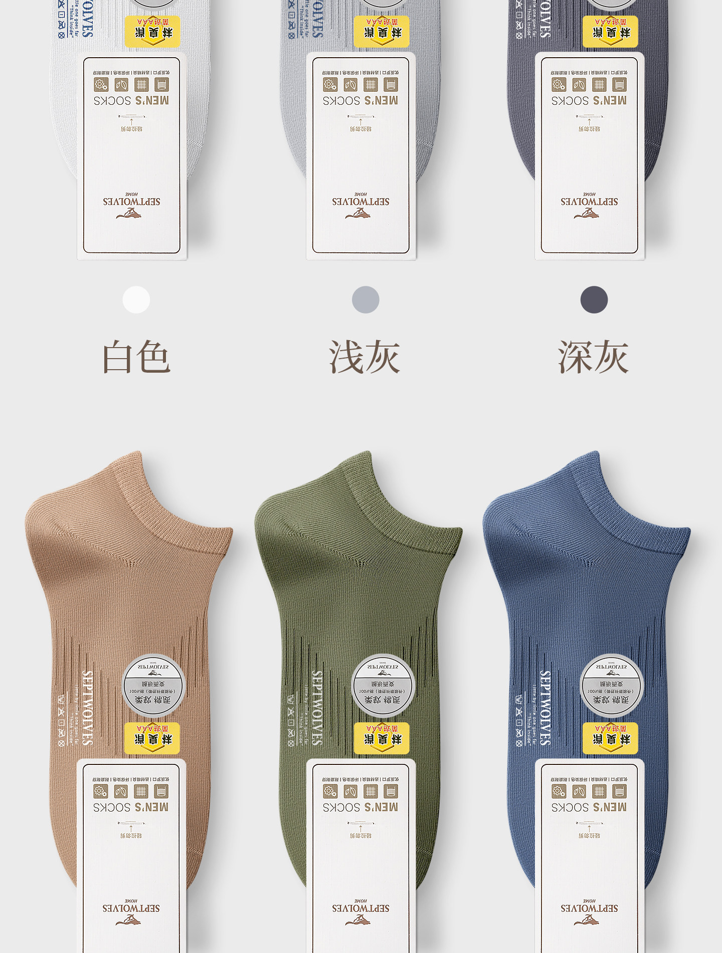 Septwolves Men's Pure Cotton Boat Socks, Odor-Resistant, Sweat-Absorbent, Antibacterial, for Boys and Teenagers, Spring and Summer Sports Men's Short Socks