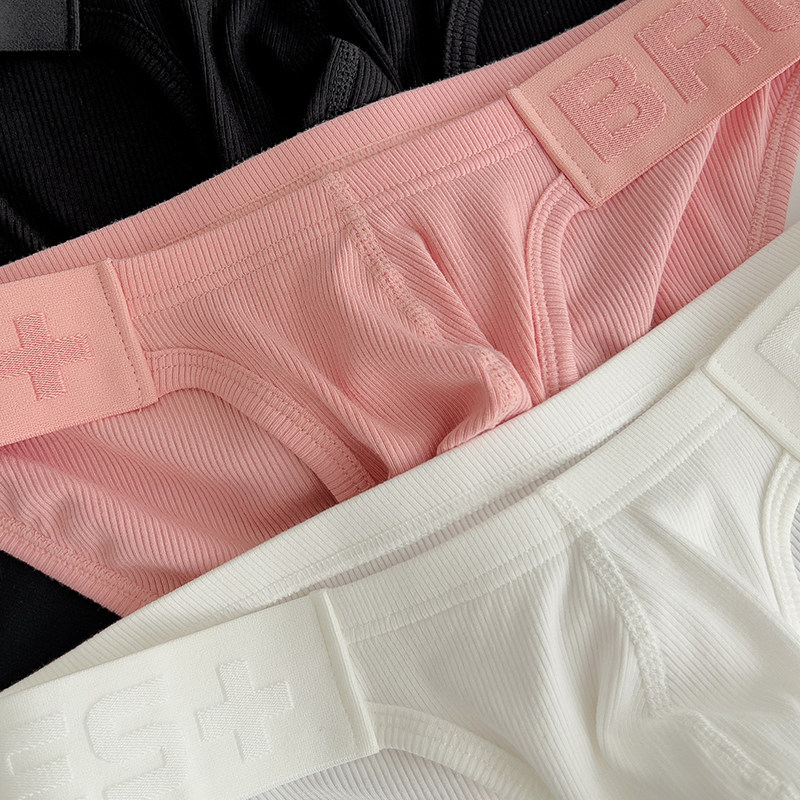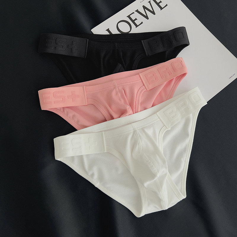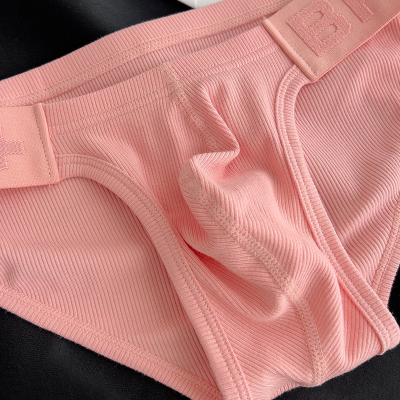 Men's Underwear Waistband Solid Color Low-Rise Ribbed Three-Dimensional Embossed Comfortable Sexy Large Pouch U-Convex Triangle Briefs