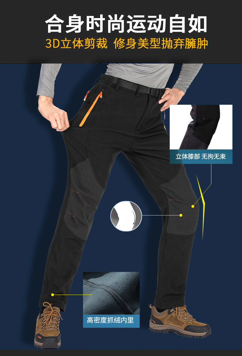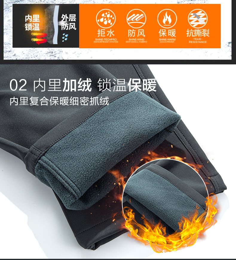 Men's Plus-Size Winter Softshell Pants with Fleece Lining, Windproof, Waterproof, Cold-Resistant, Suitable for Hiking, Mountaineering, and Skiing