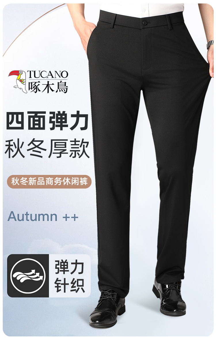 Woodpecker New Winter Men's Casual Pants, Loose Straight-Leg Men's Trousers, Fleece-Lined and Thickened Business Dress Pants, Dad Pants