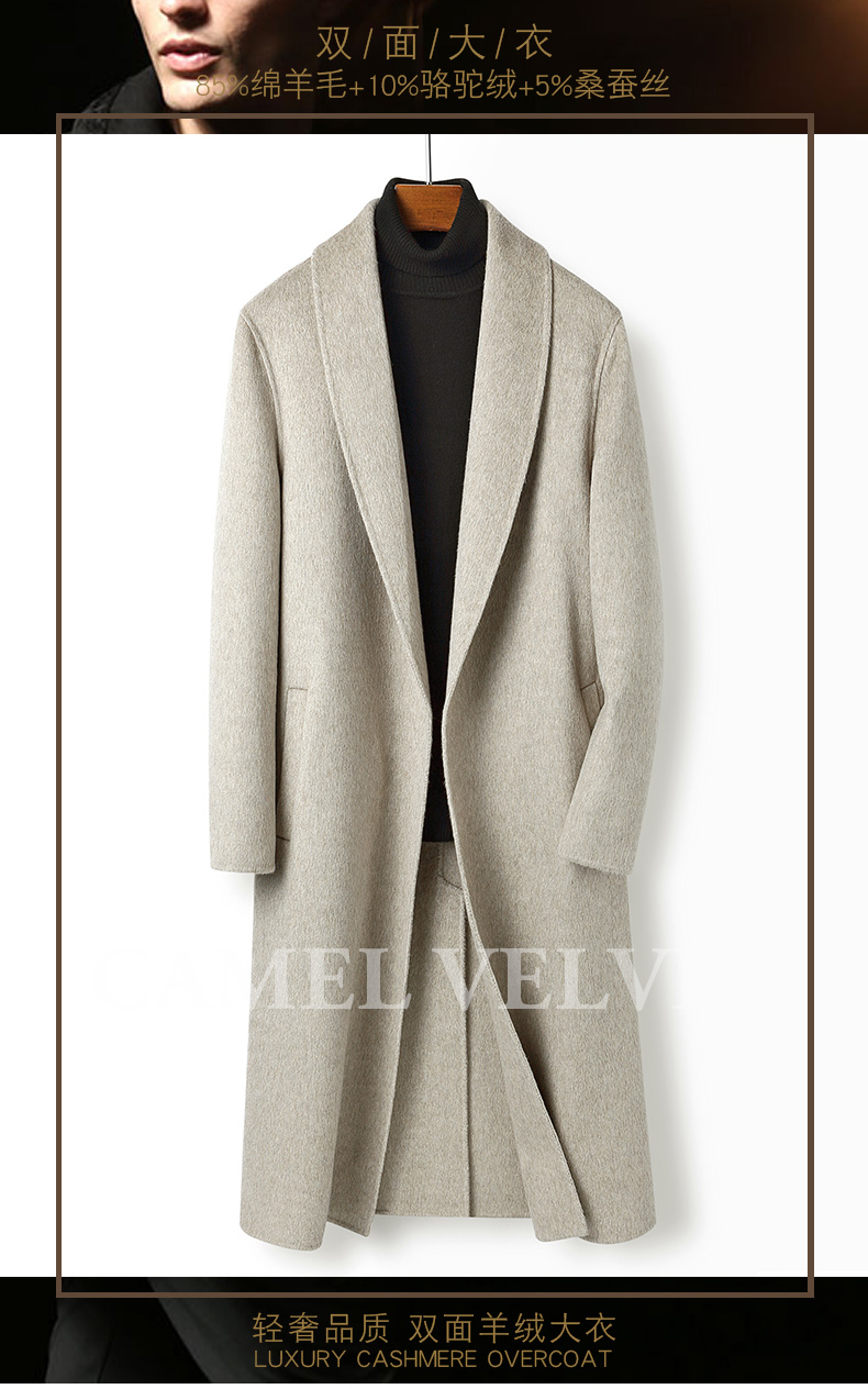Fancy Camel Long Knee-over Non-Buckle Shoelace thickened Double-sided Wool Coat Men's Wool Woolen Windbreaker Fashionable Outwear